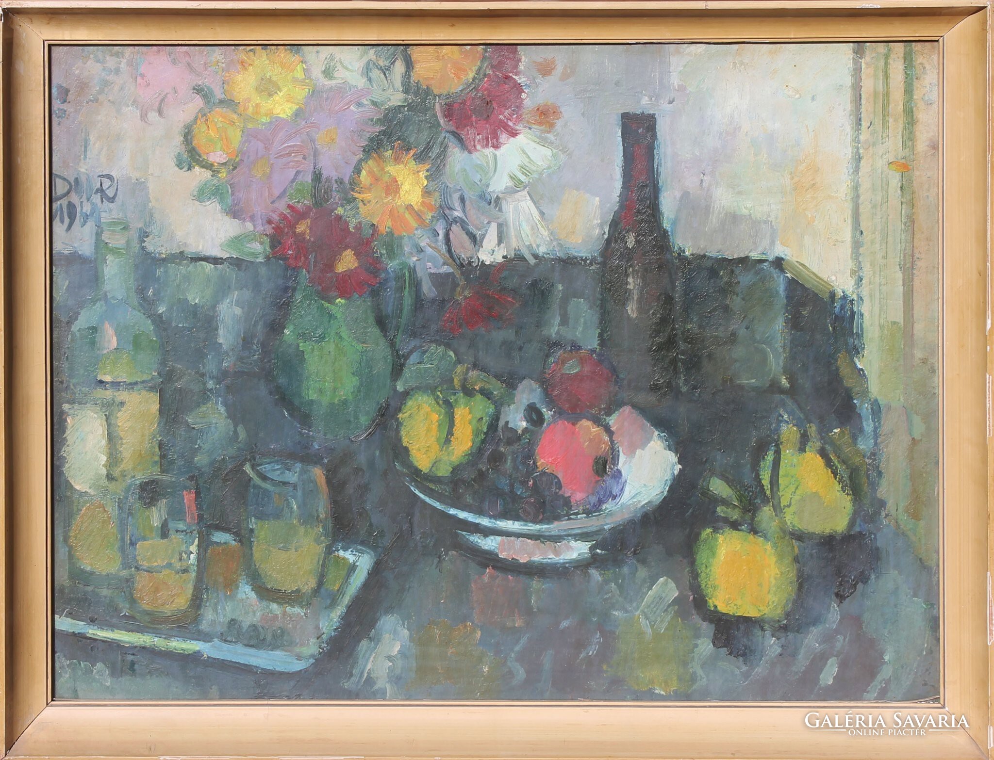 Doór Ferenc: Csendélet - 80 x 60 cm olajfestmény - art deco / retro hangulatban - keret nélkül - hibátlan állapotban