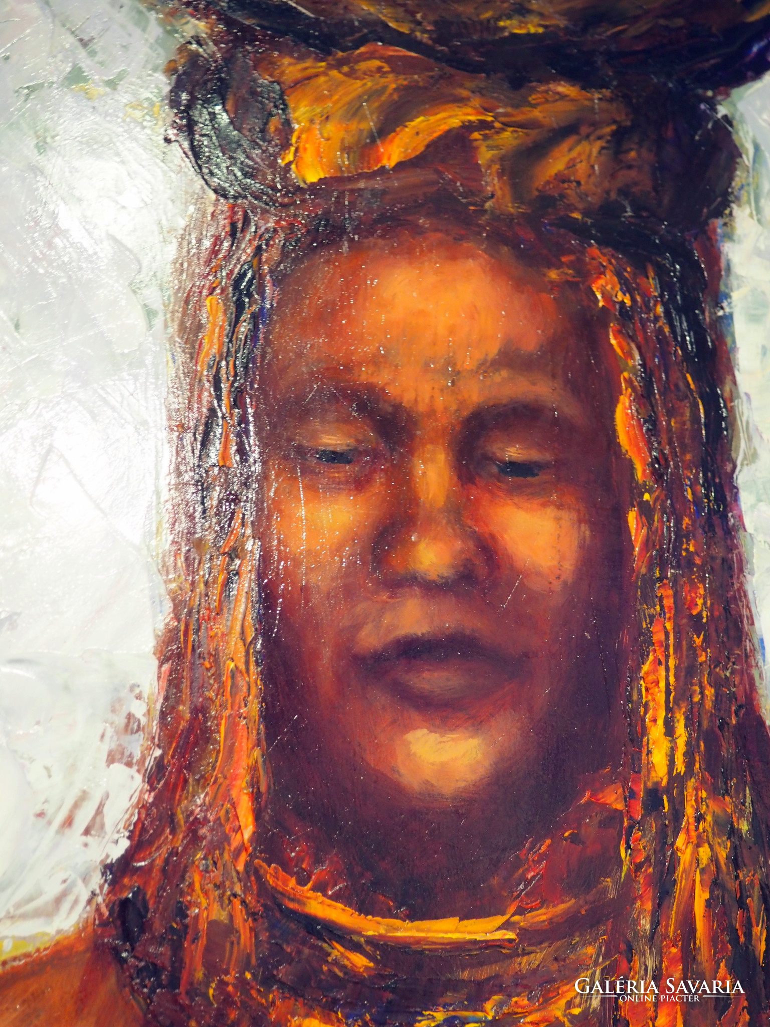 Geiszler József (1925-2011) hatalmas, impresszív festménye hatásos kiegészítője lehet egy modern otthonnak. Színei, témája, festésmódja mind a különleges hatás szolgálatában állnak. de nemcsak hatásos, hiteles is egyben ez a festmény!