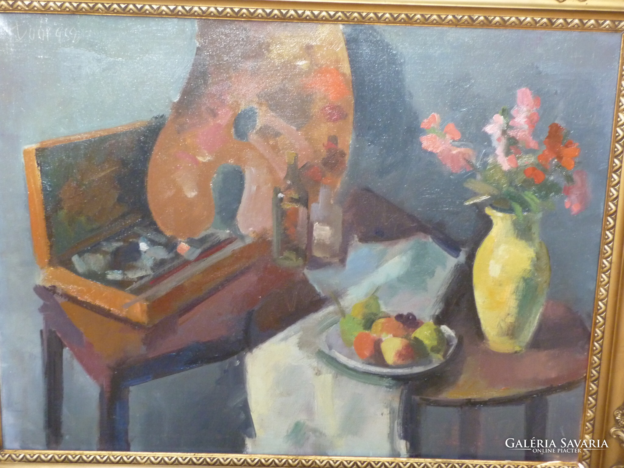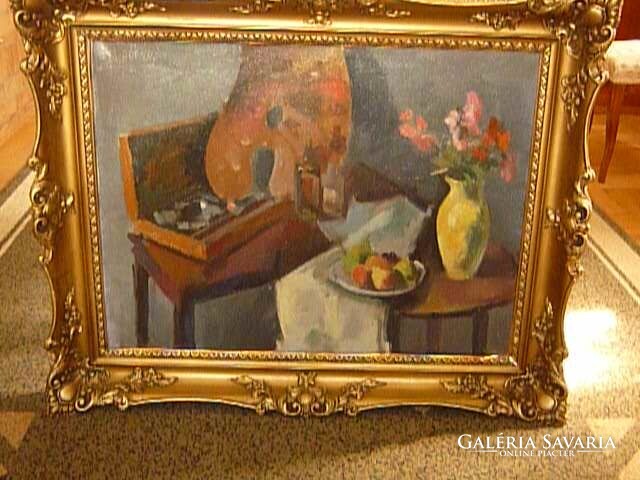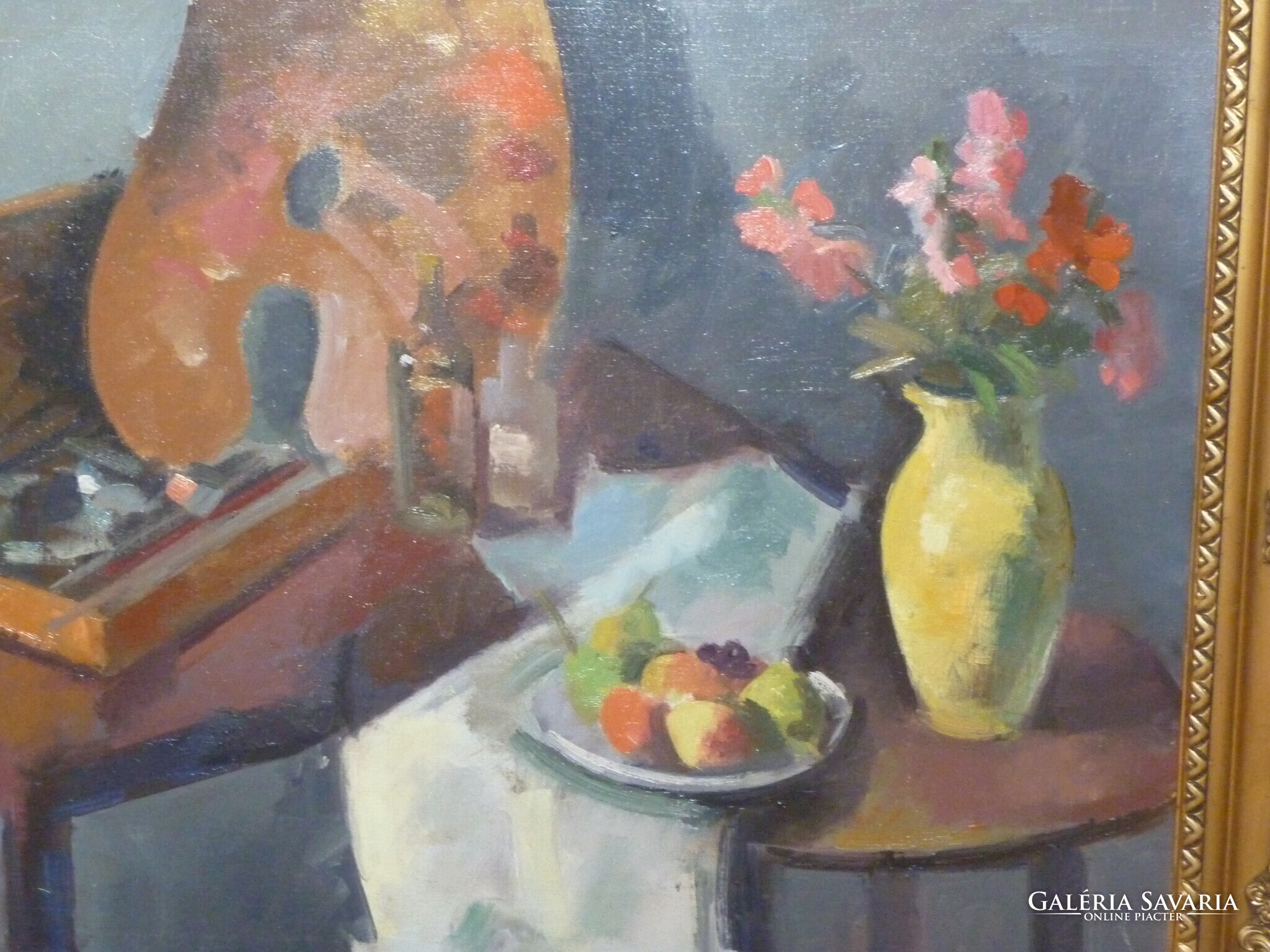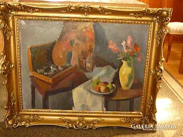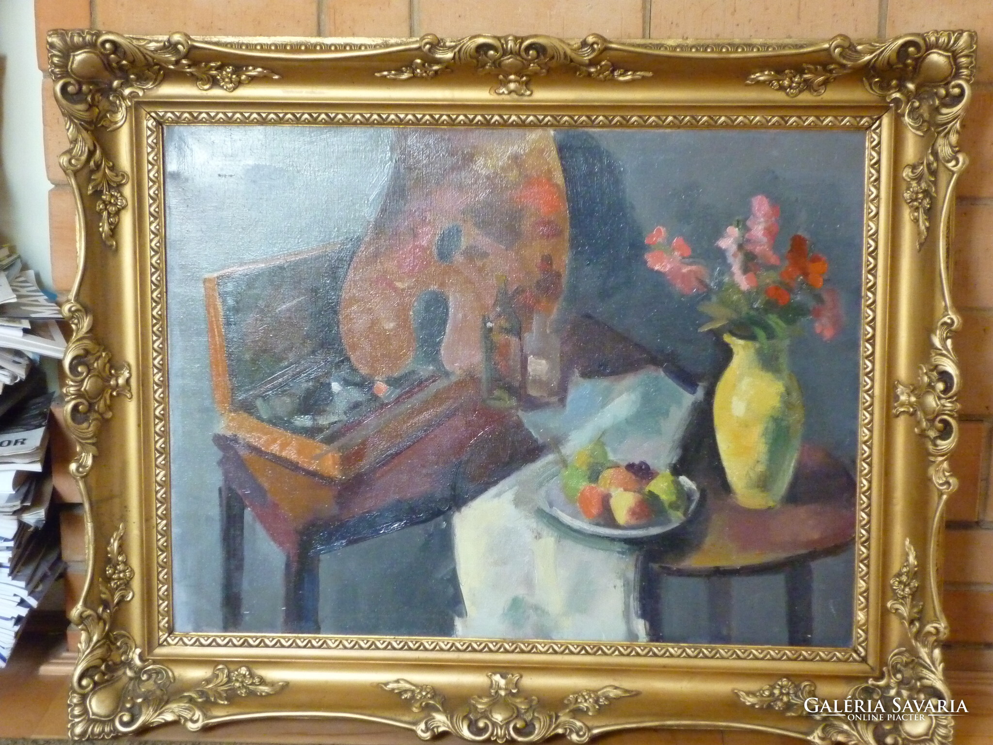 Eladó Doór Ferenc / Virágcsendélet című olajvászon festménye. Mérete 80*60 cm, szignózott jelzés: balra fent. Hátoldalán Képcsarnokos vignettával. 1959-ben készült. Azonnal falra akasztható, szobai állapotú darab. A fotón a blondel keret csak illusztráció, nem része az eladásnak.