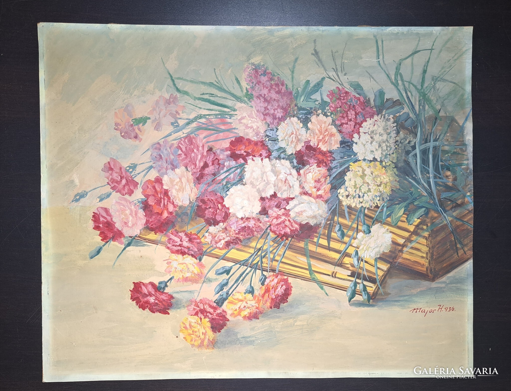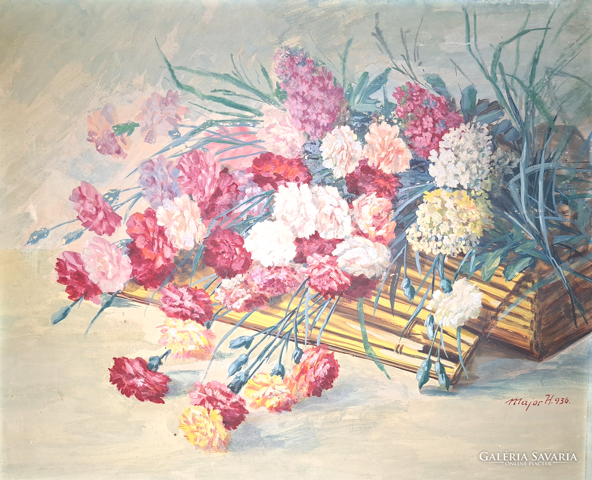 Színpompás virágcsendélet 1936-ból, Major Henrik alkotása (60 x 48 cm)