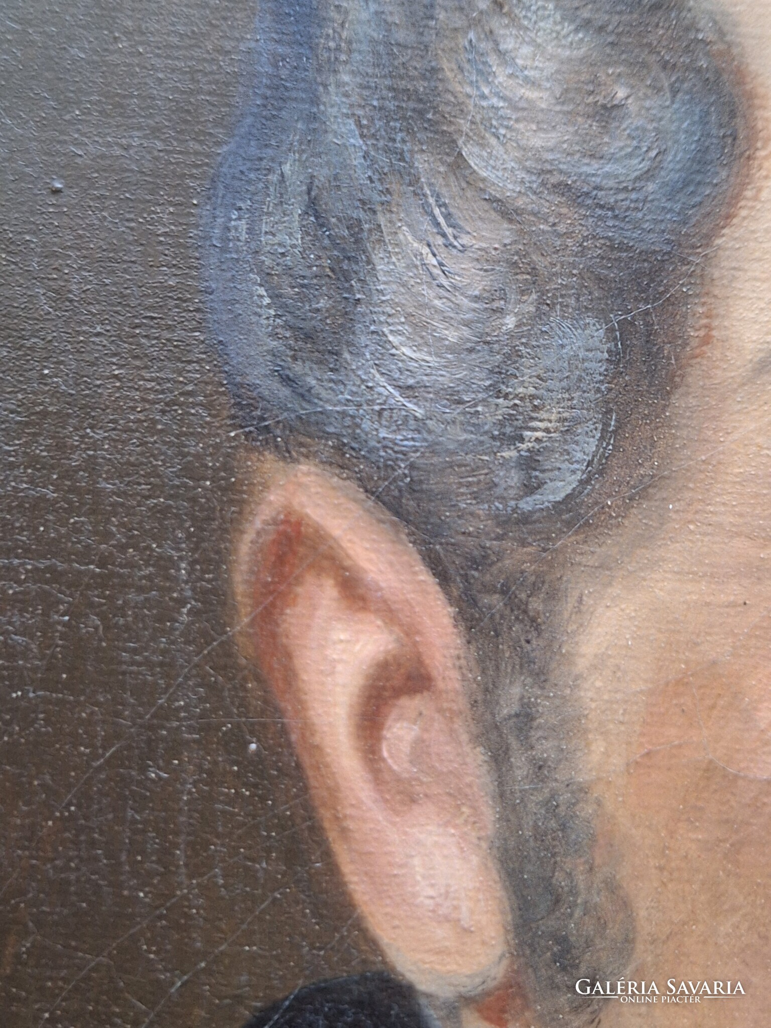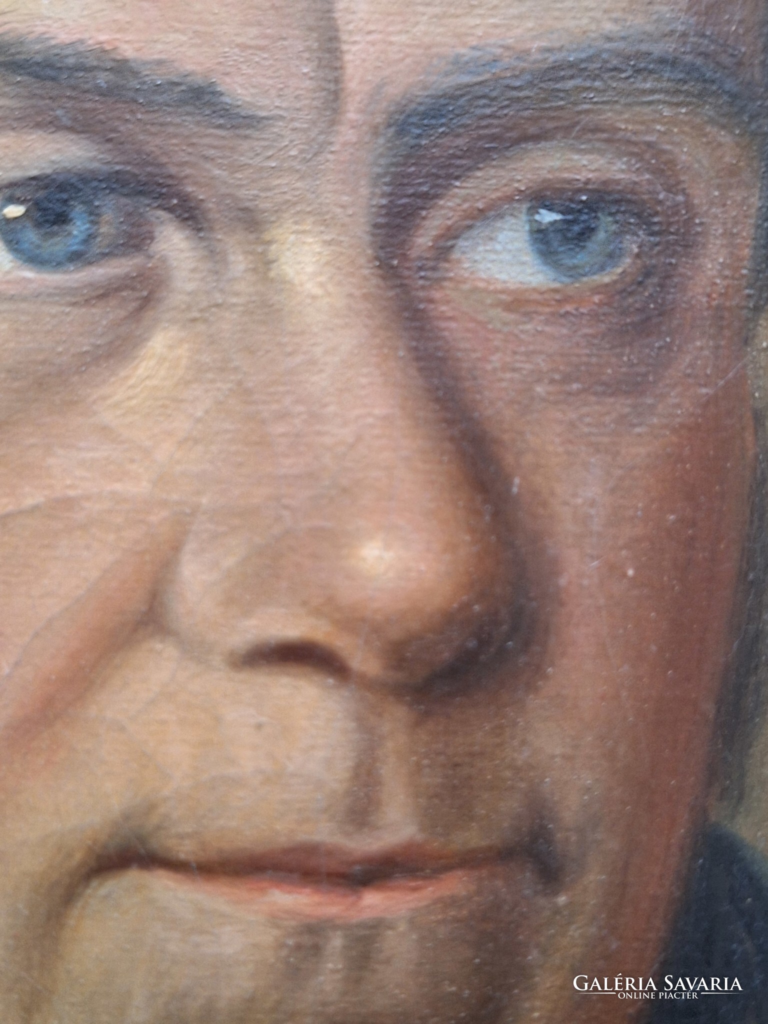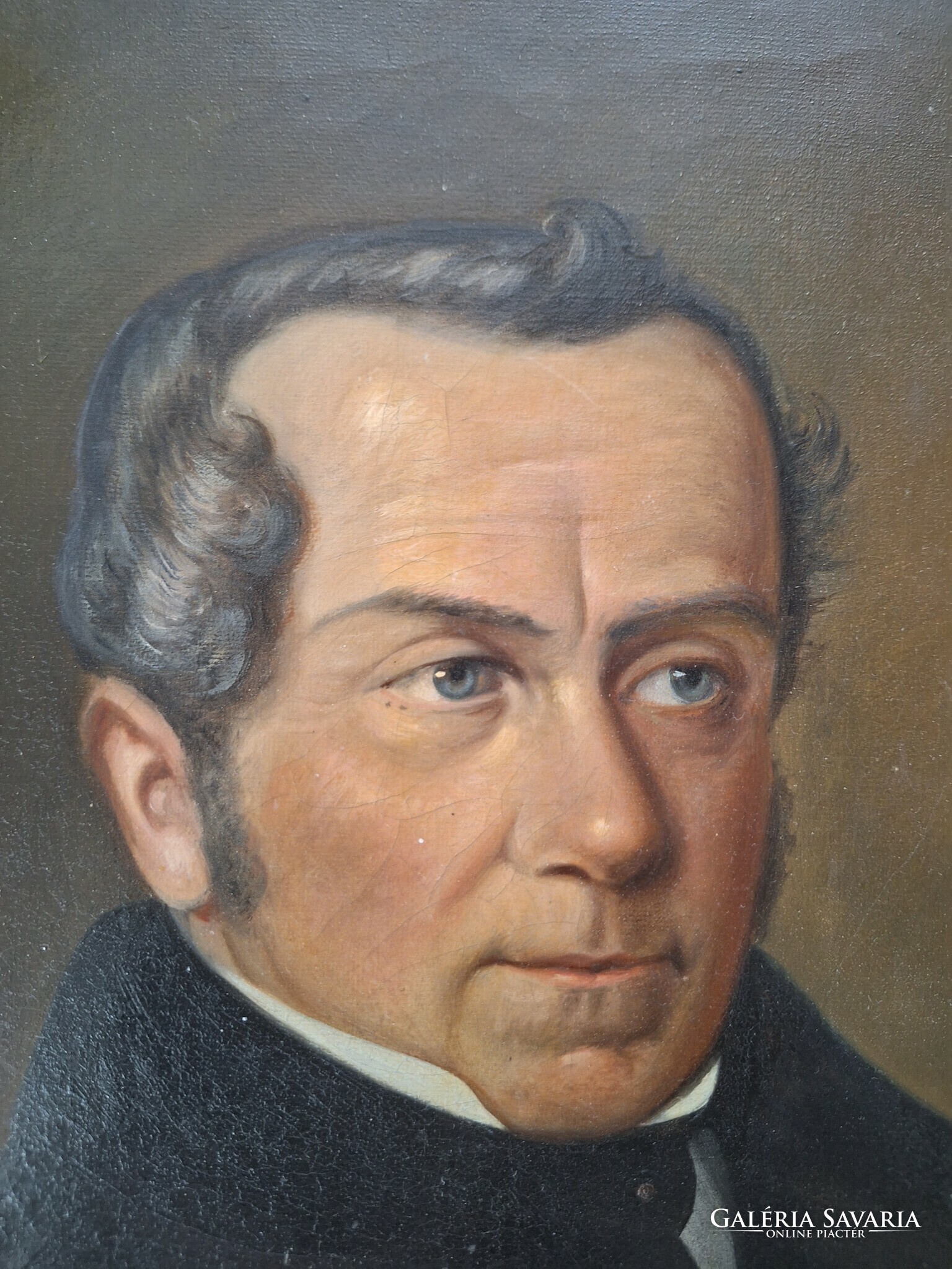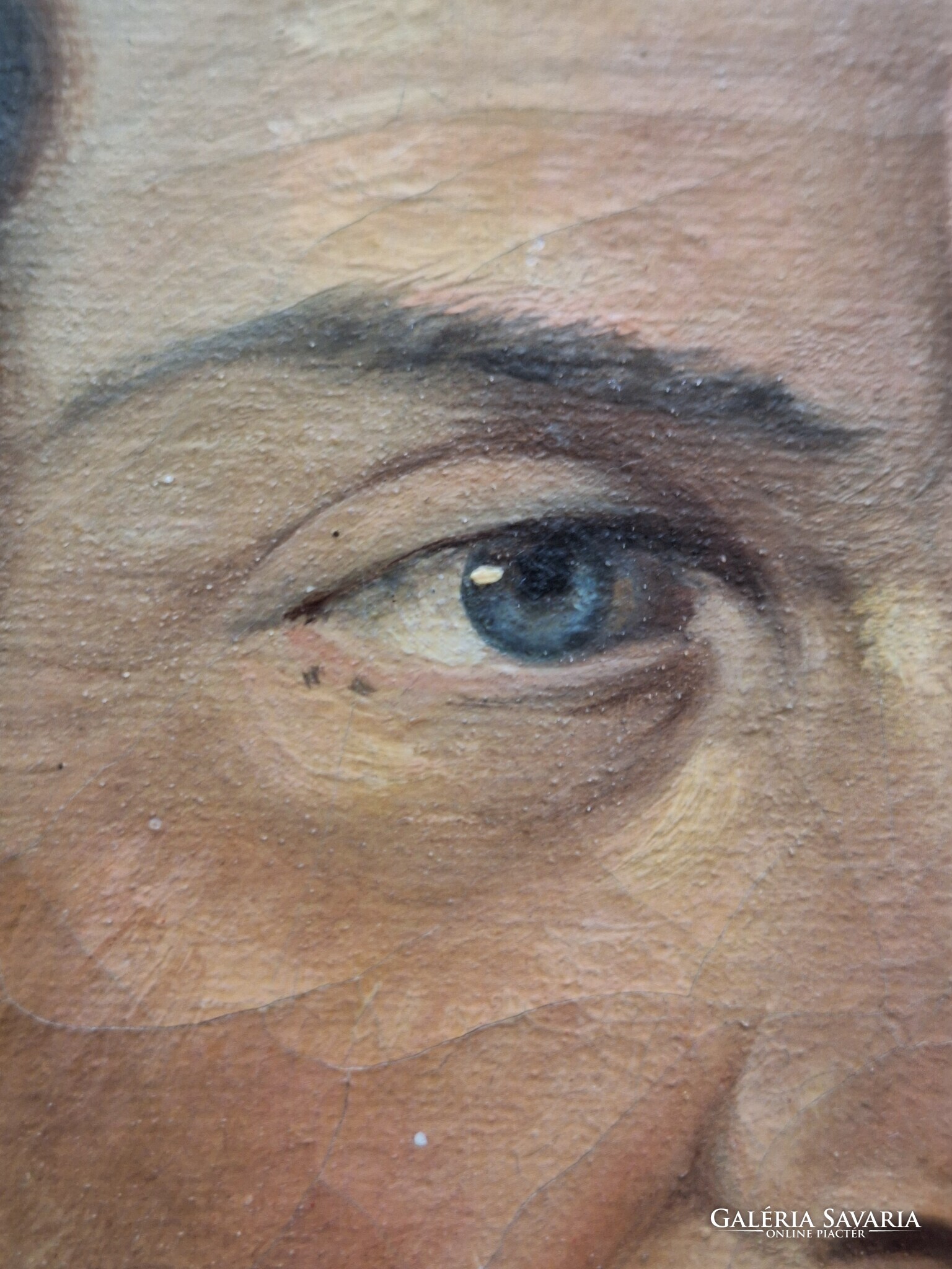Antik bieder festmény. Férfi portré , aranyozott ovális belső keretben.