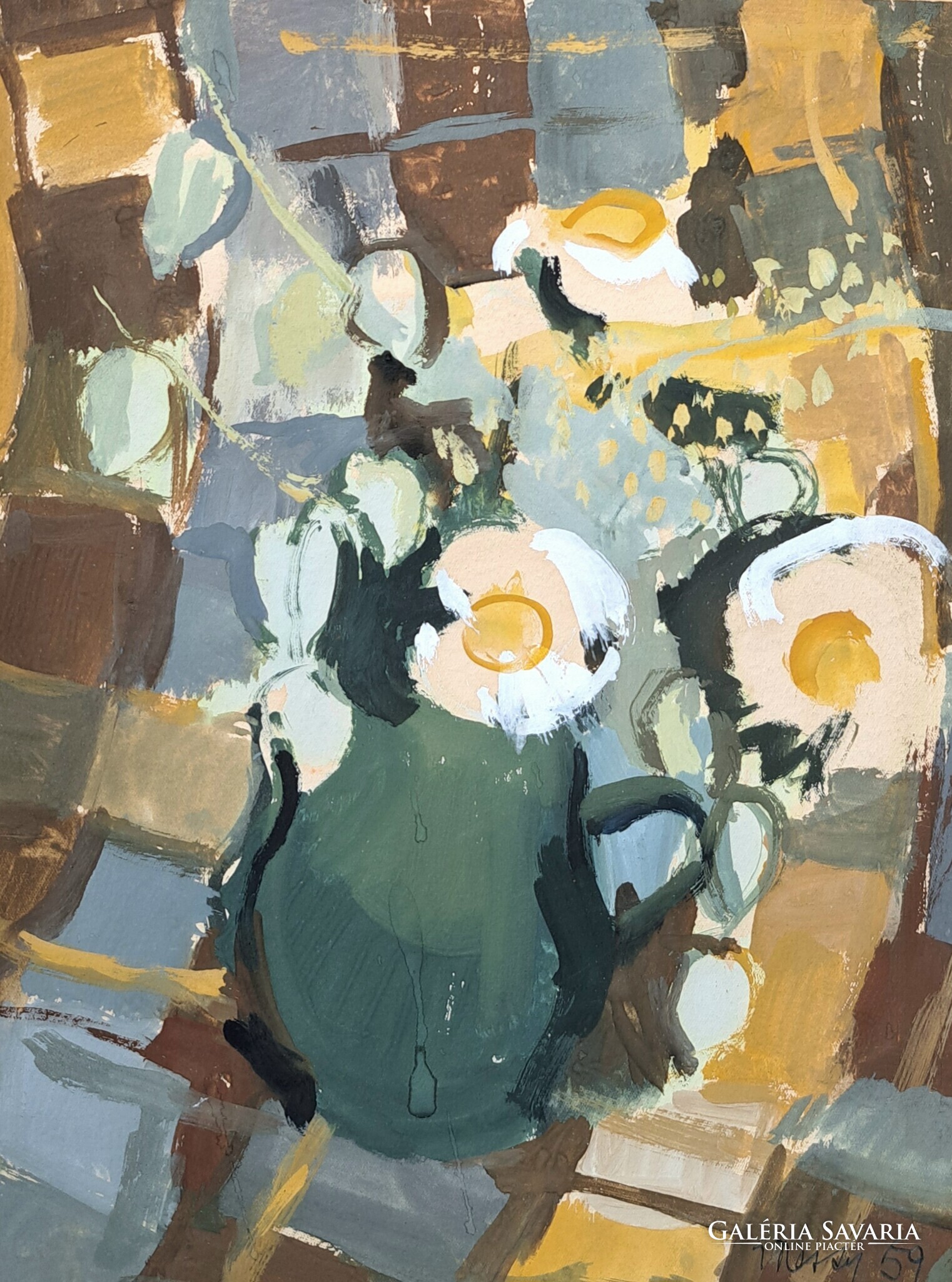 Tassy Klára: Virágcsendélet, 1959 - ritkaság! női festő, Eigel Istvánné