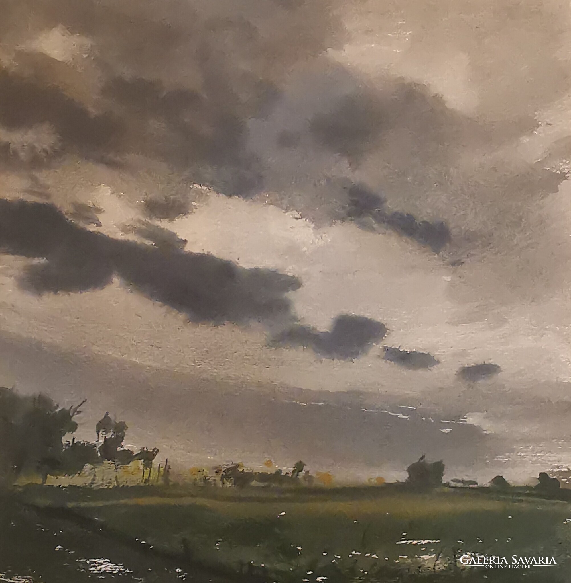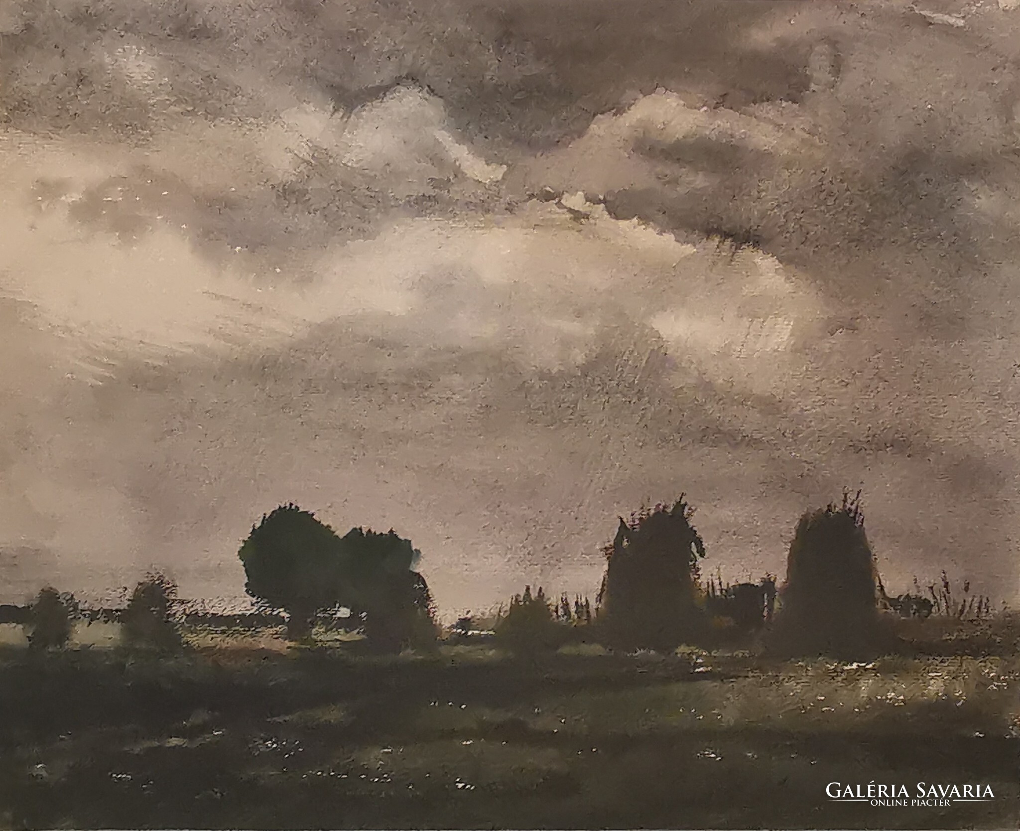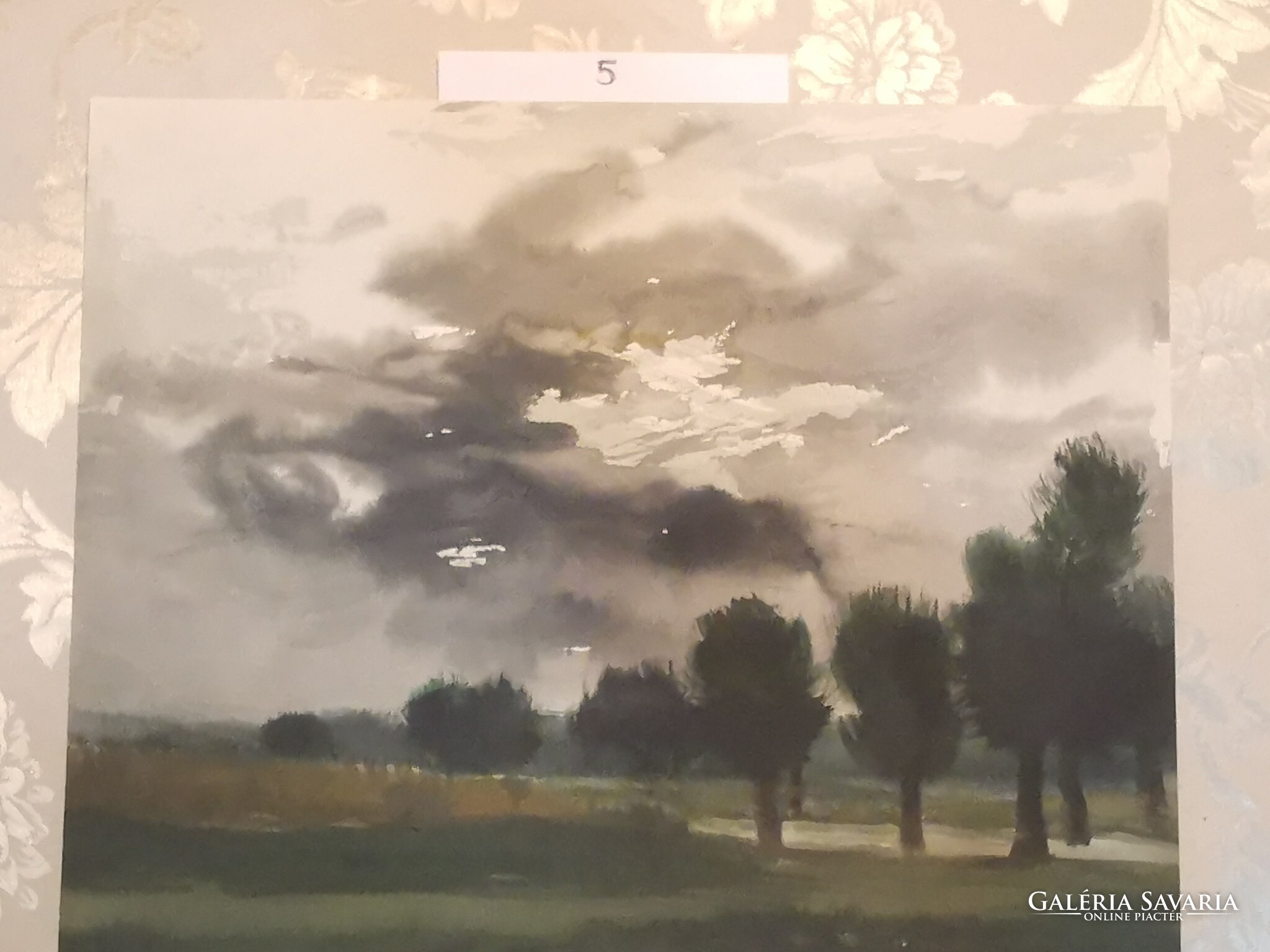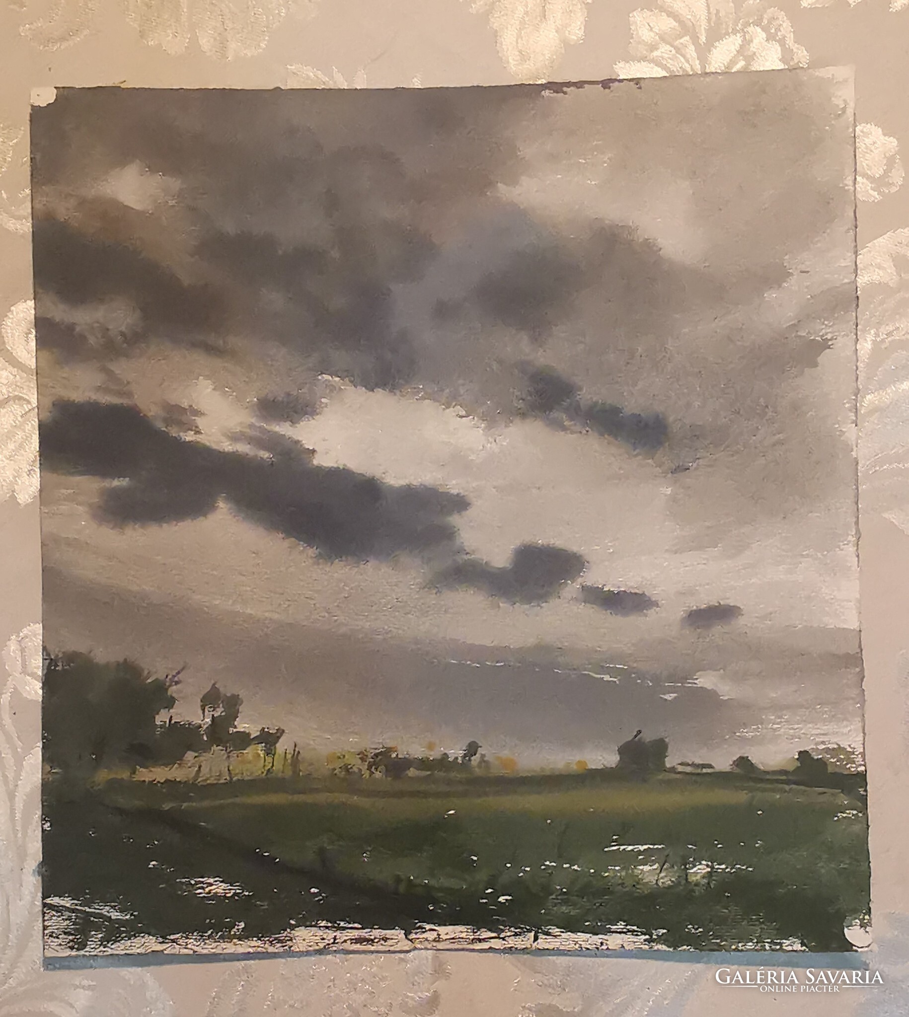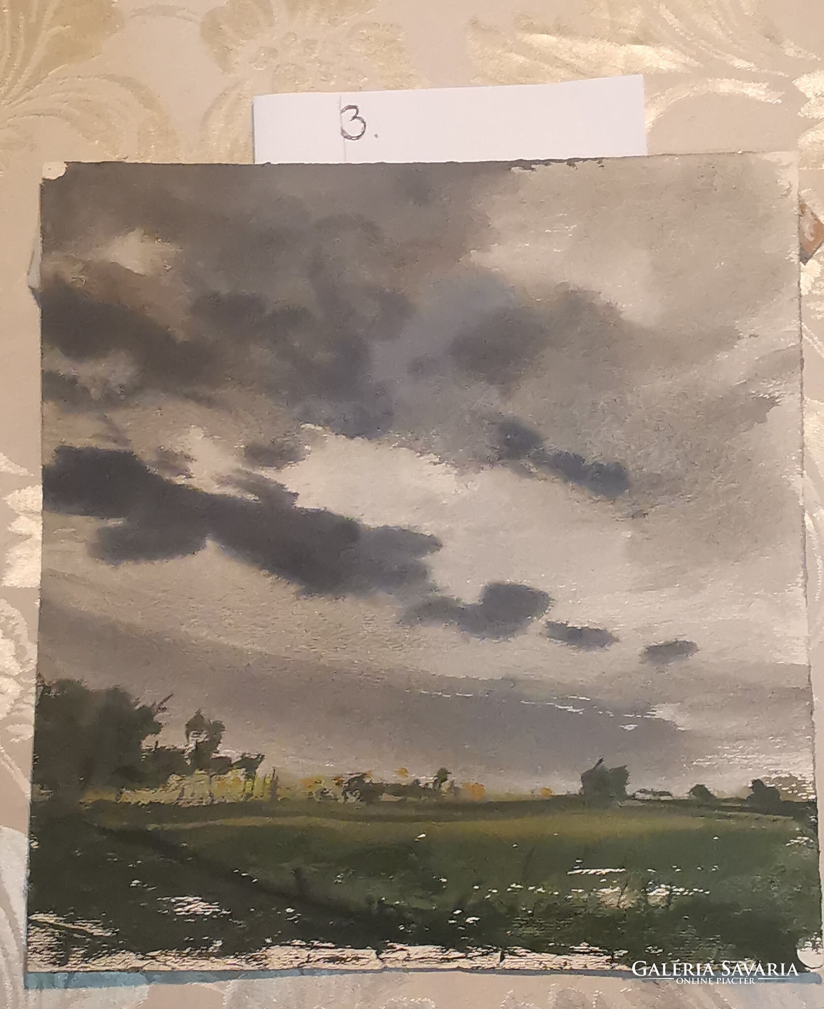 3.,TAVASZI FELHŐK,KARTON,AKVARELL,30X28,SZIGNÓ NÉLKÜL