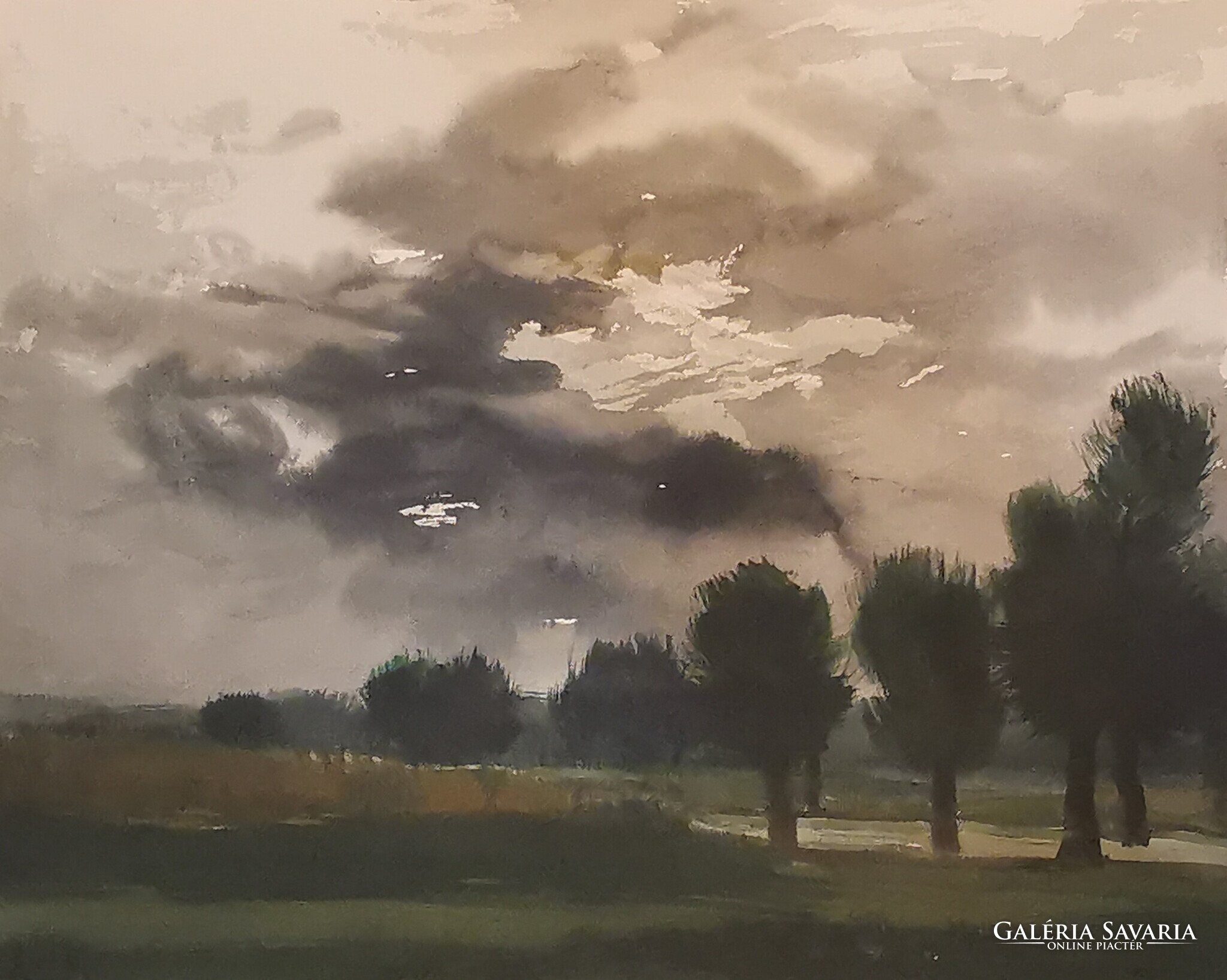 5.,TÁJ2 ,KARTON,AKVARELL,46X36, SZIGNÓ NÉLKÜL