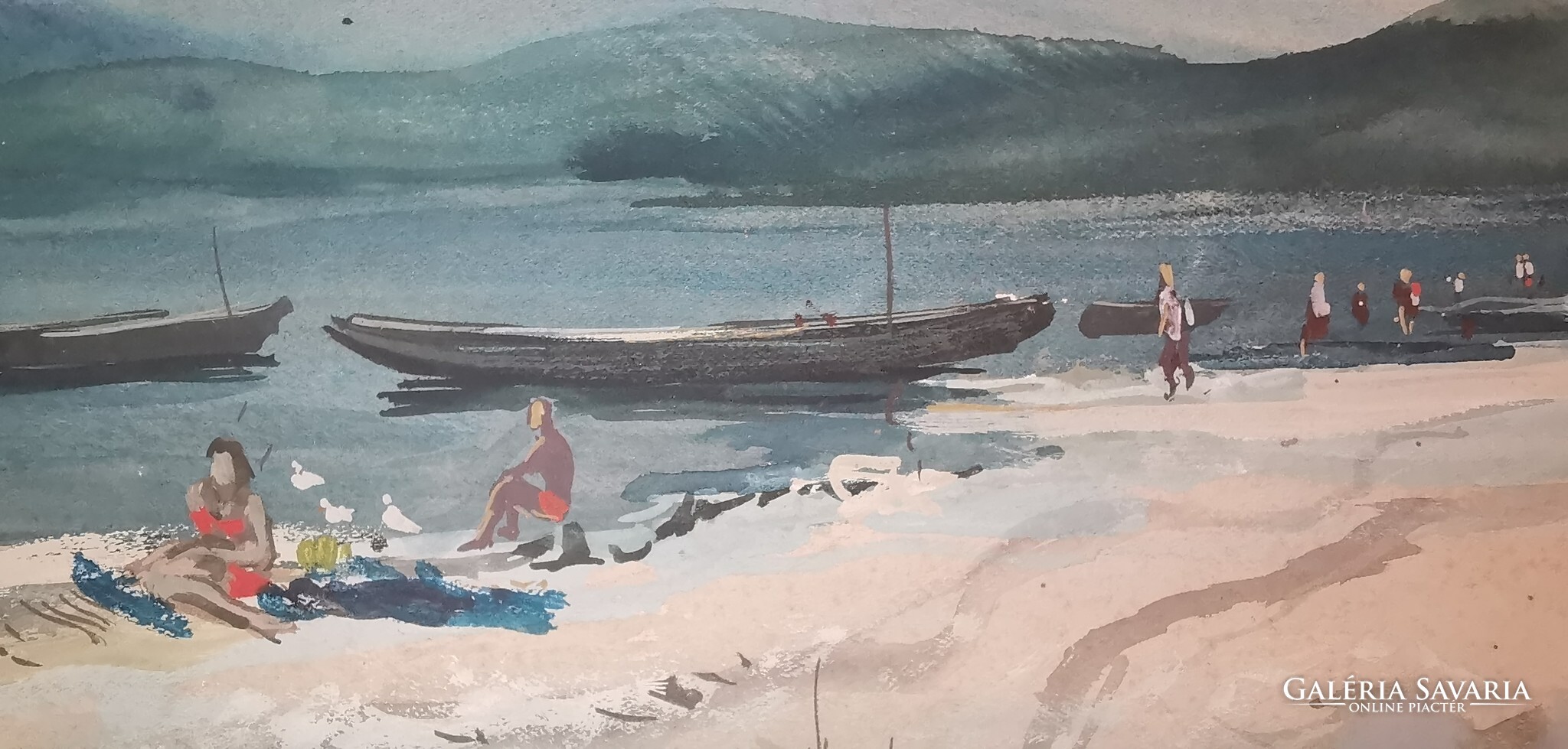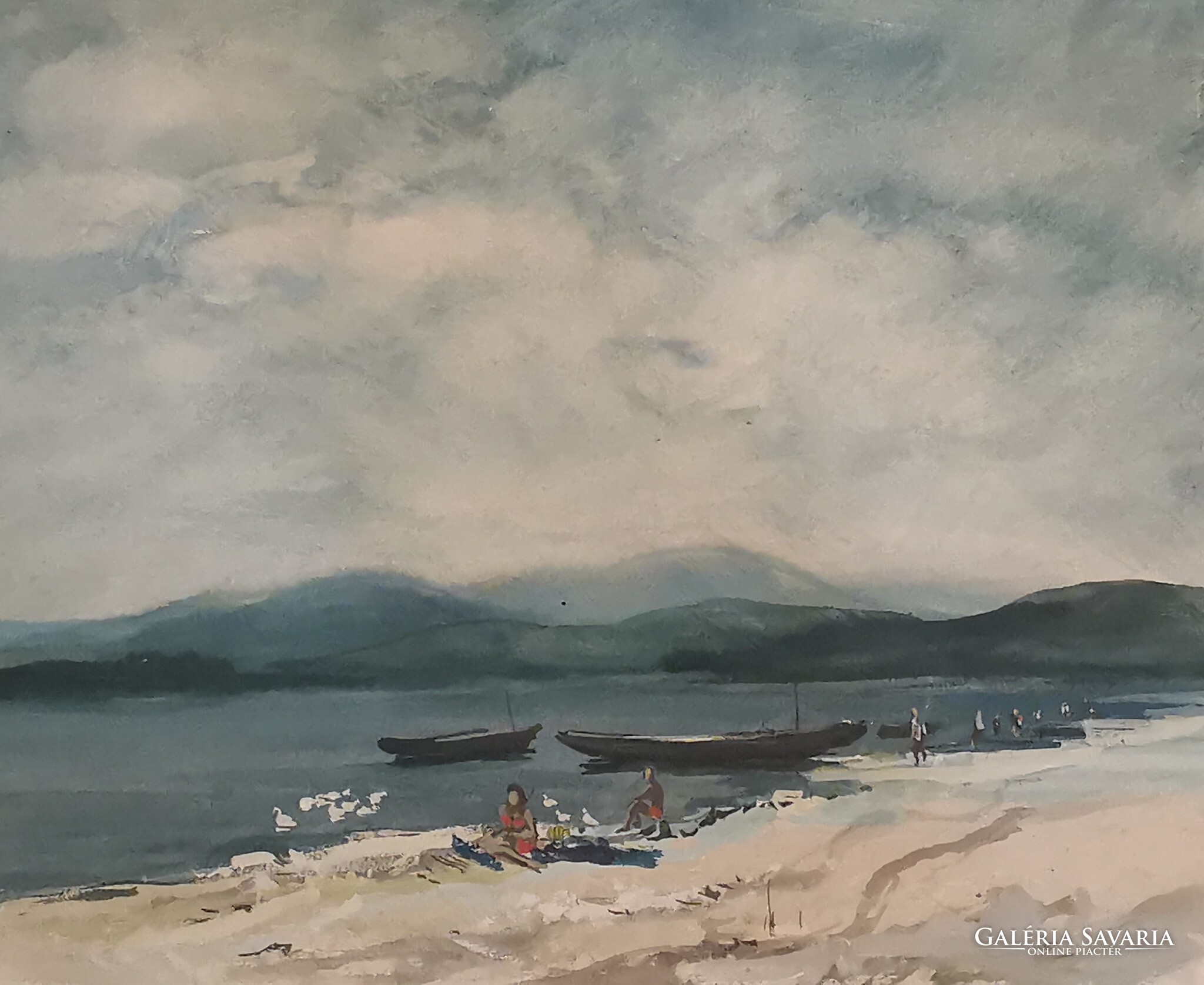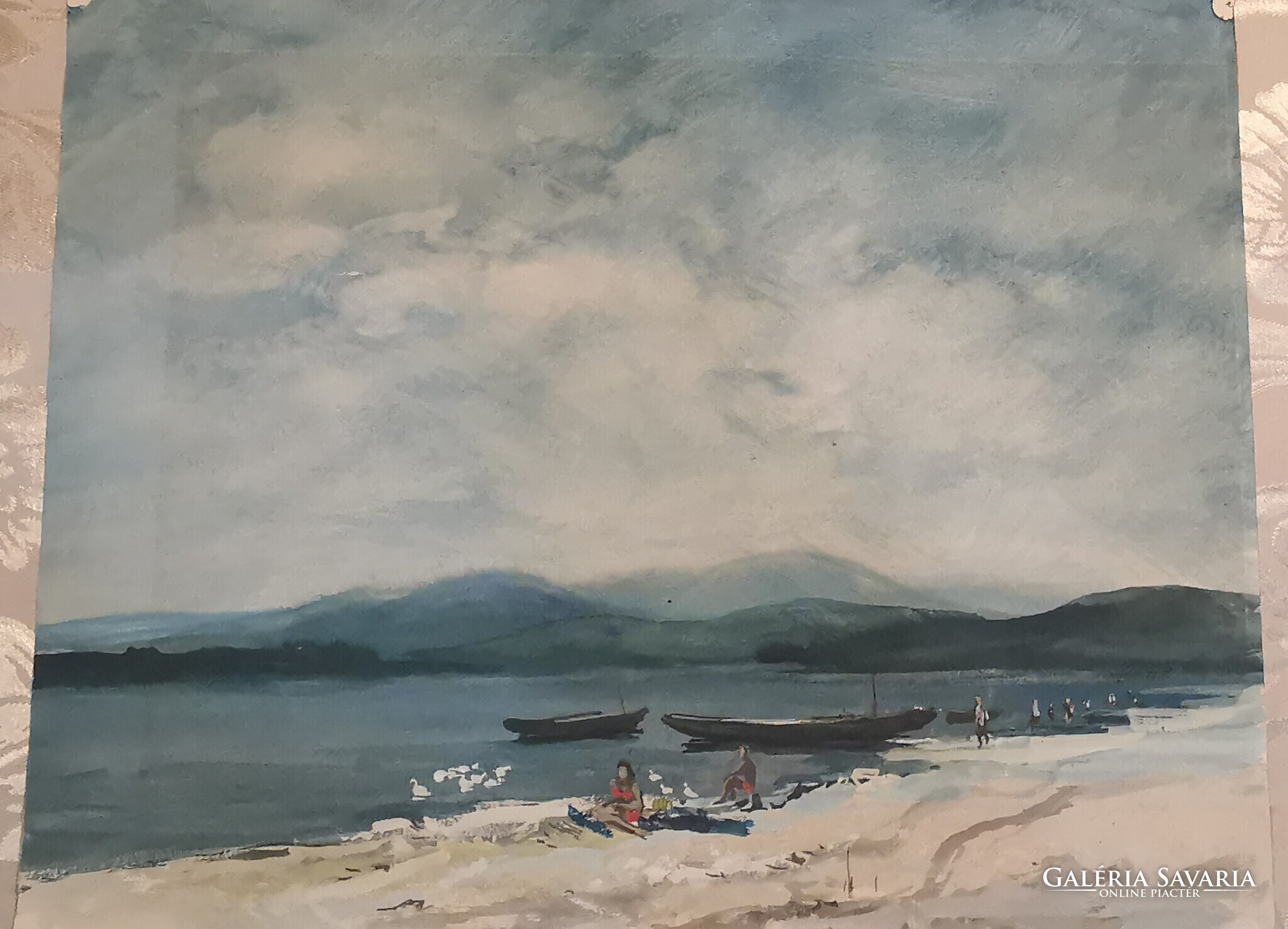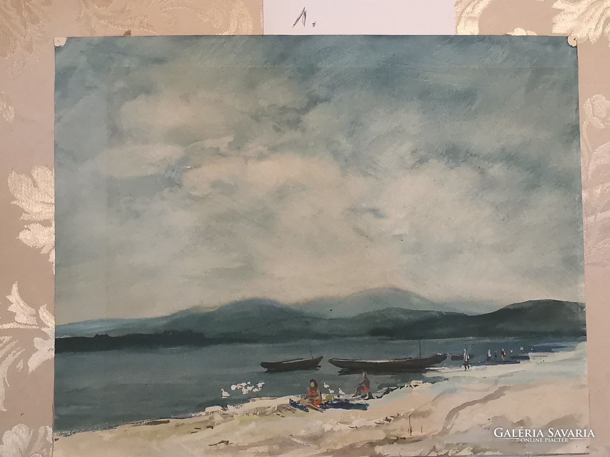 1., PIHENŐ A DUNÁN,KARTON , VEGYES TECHNIKA 40X32, SZIGNÓ NÉLKÜL
