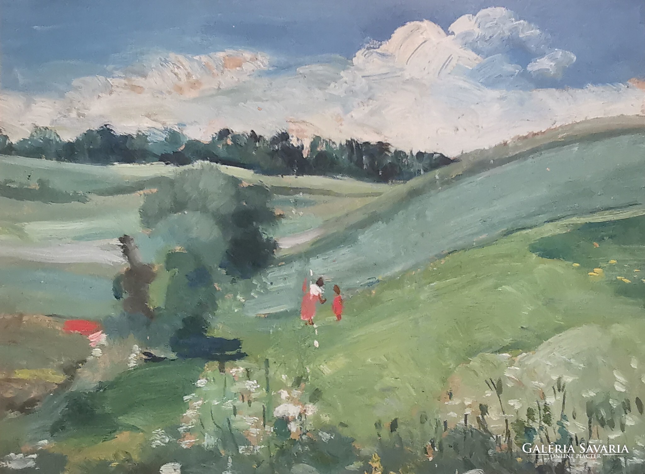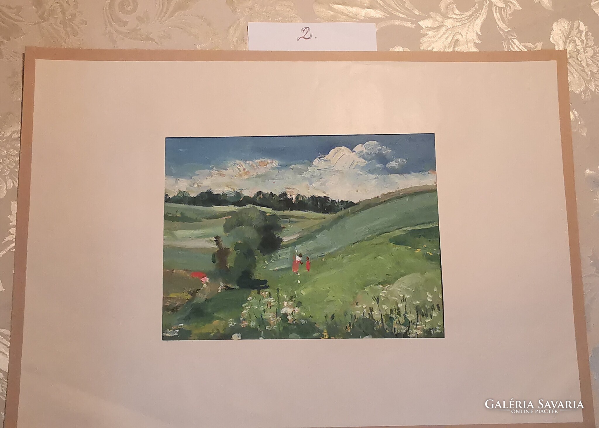 2.,DOMBOK KÖZÖTT ,KARTON,TEMPERA,25X32, P:62X43 SZIGNÓ NÉLKÜL