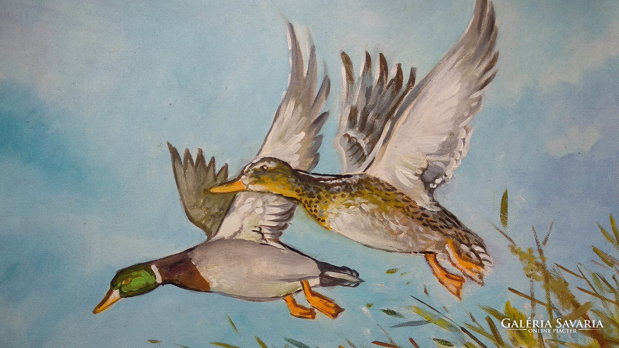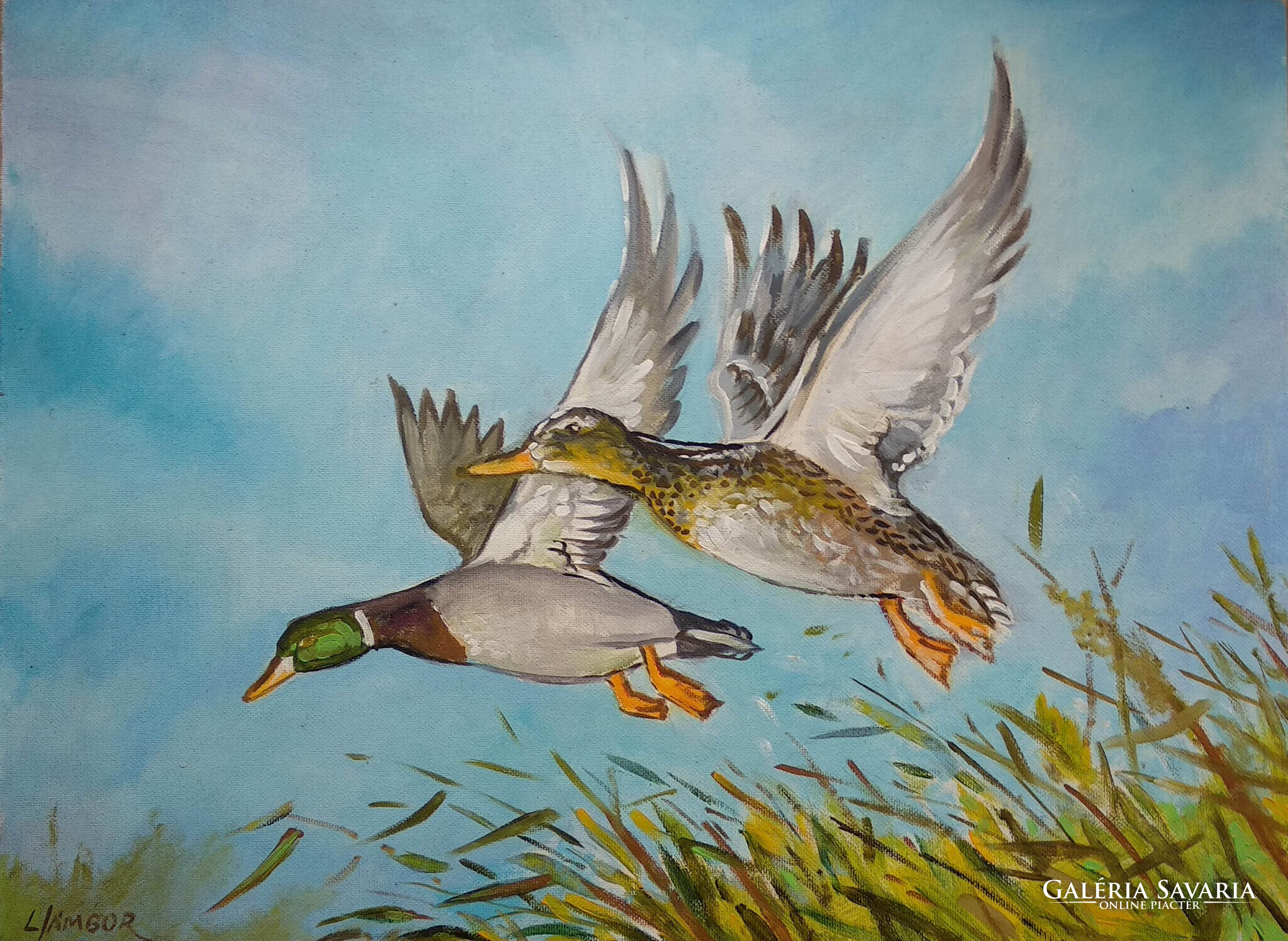 Felröppenő kacsák / hangulatos olajkép