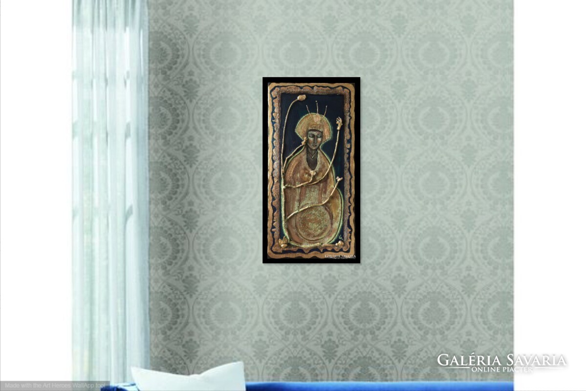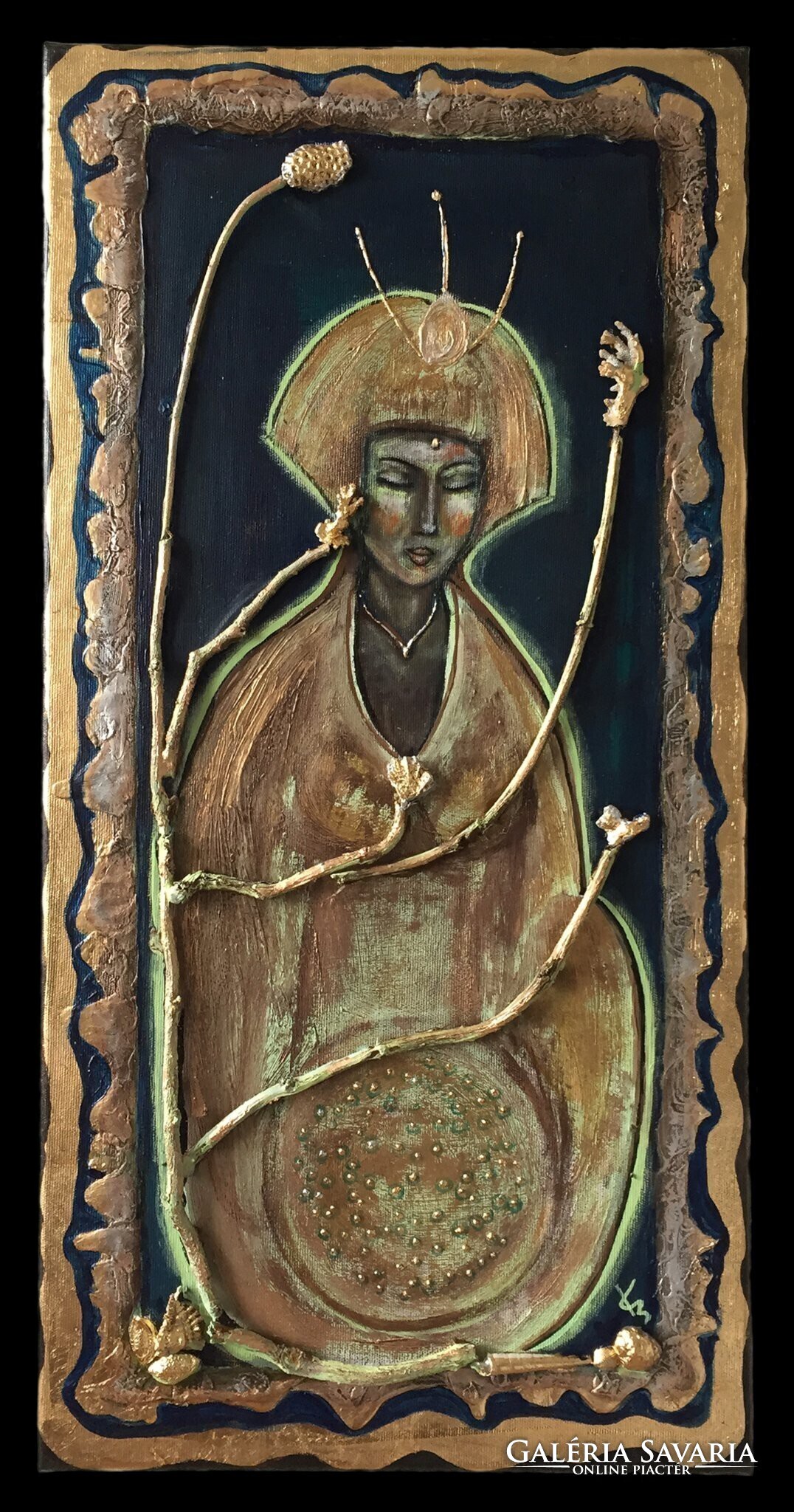 Visszaolvadás a természetbe I. 20 ct aranyozott jóskép, Prima díjas művésztől. Károlyfi Zsófia /1952