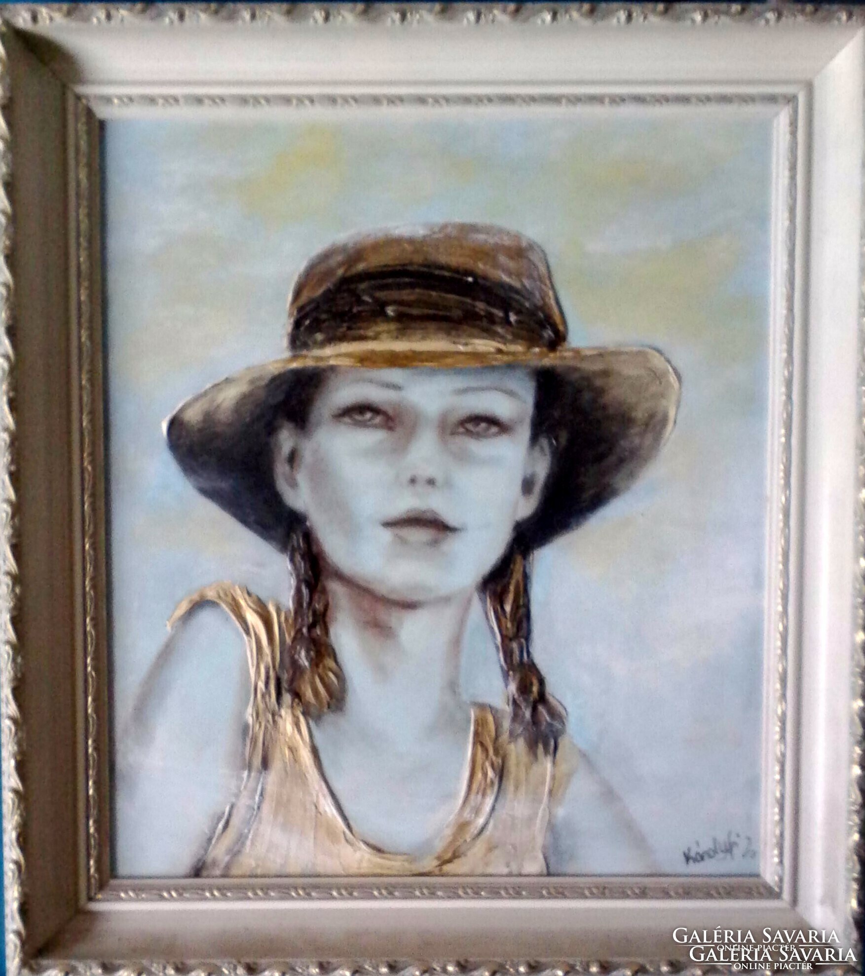 Álmodozó lány. Női arckép tanúsítvánnyal. Prima díjas művész alkotása.Károlyfi Zsófia/1952