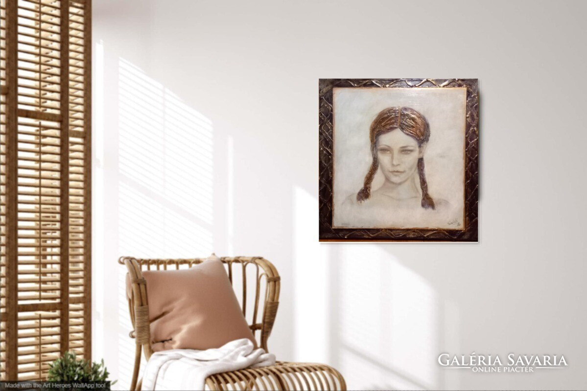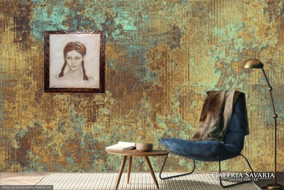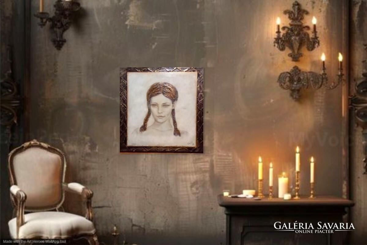 Derengő emlék. Női arckép tanúsítvánnyal. Prima díjas művész alkotása.Károlyfi Zsófia/1952