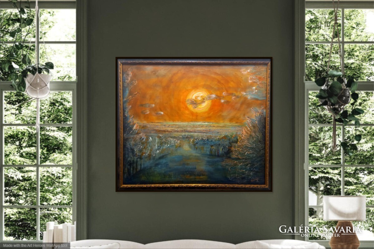 Prima díjas művész Mesél a Hold Lovászi felett.,102x87 kép tanúsítvánnyal. Károlyfi Zsófia (1952-)