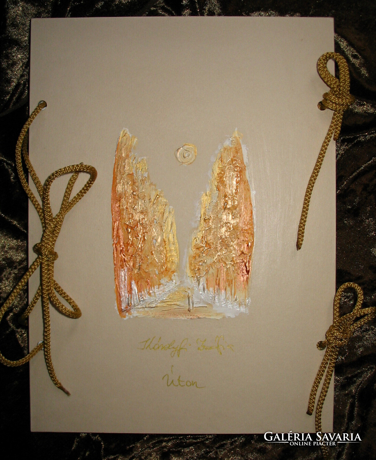 Úton. Saját kézírásos színes képes festményes album, borítója eredeti festmény ajándéknak is való.
