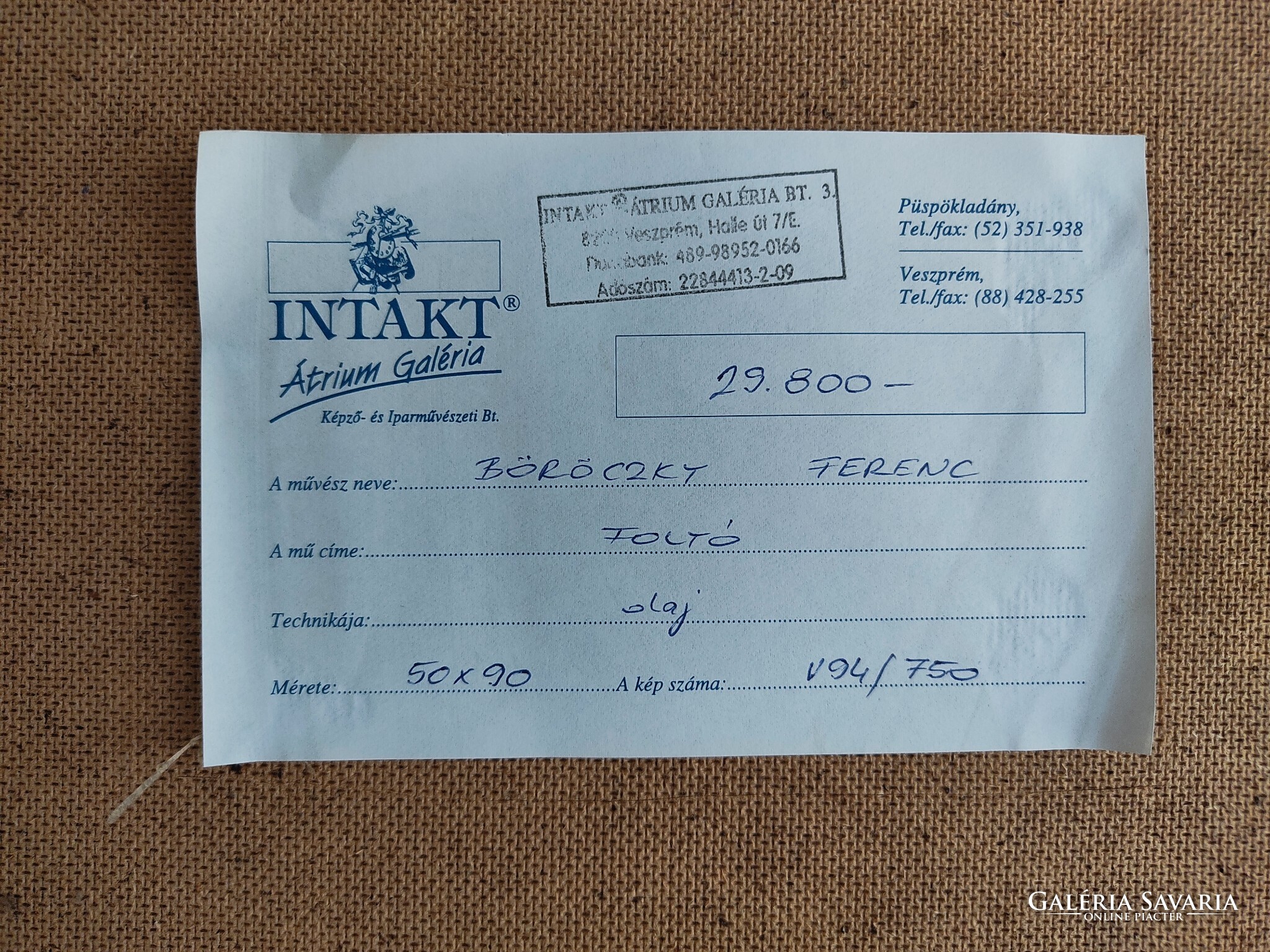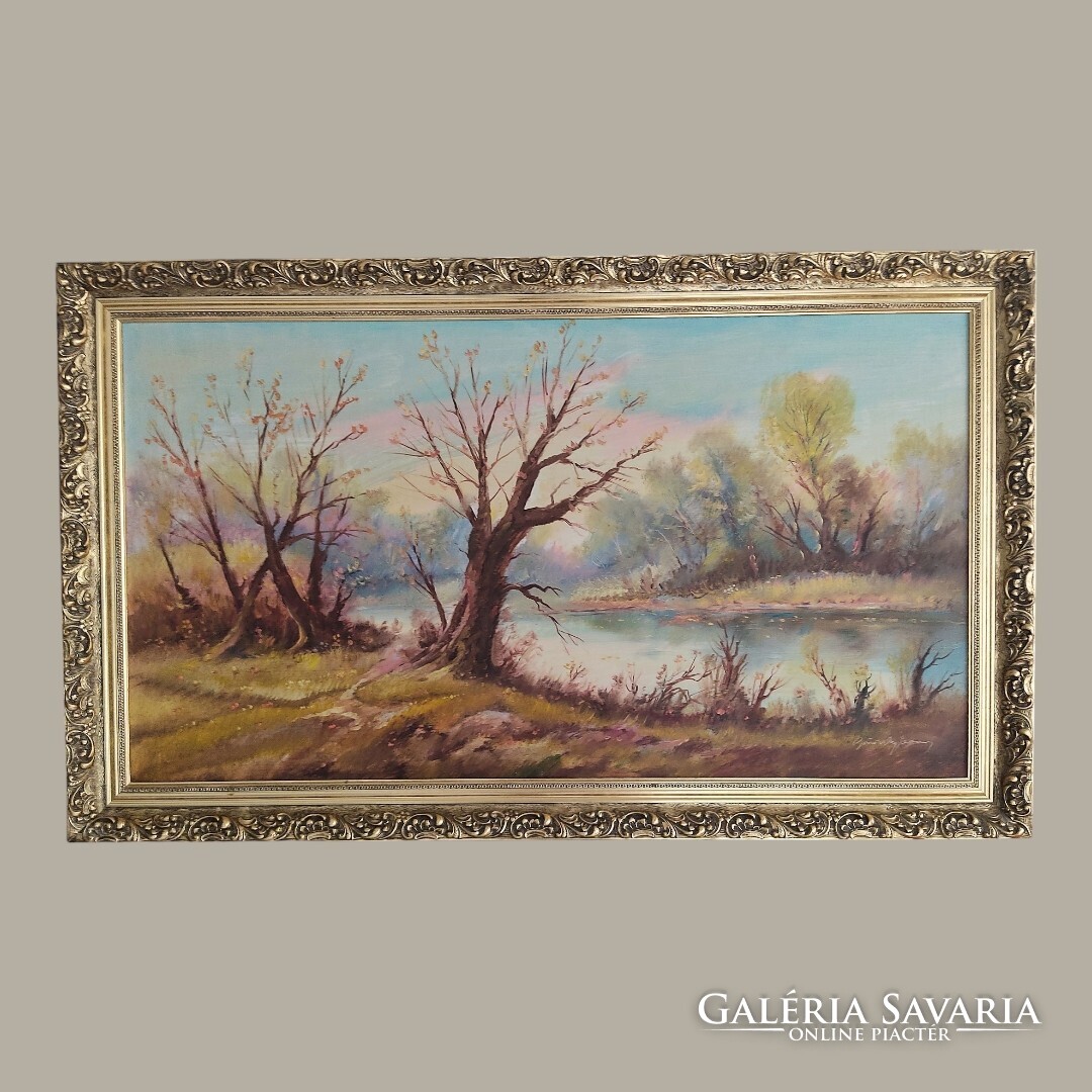 Böröczky Ferenc Folyó című - V94/750 - 50x90cm olajtménye farostra, galériában vásárolt, szignózott.
