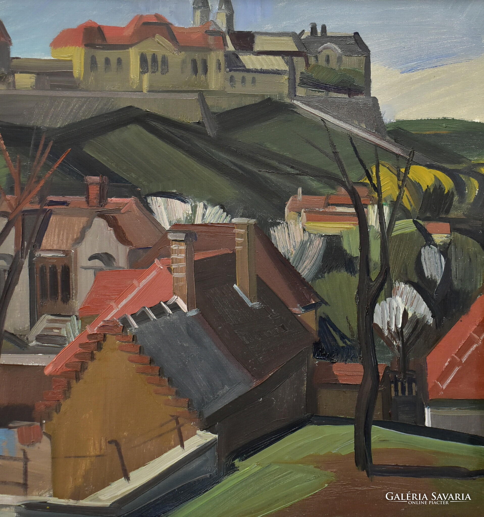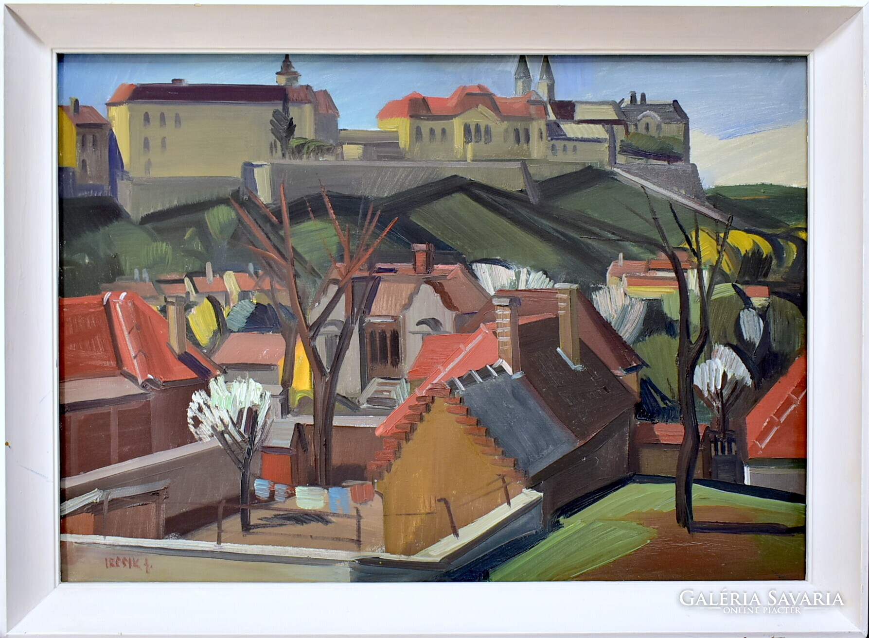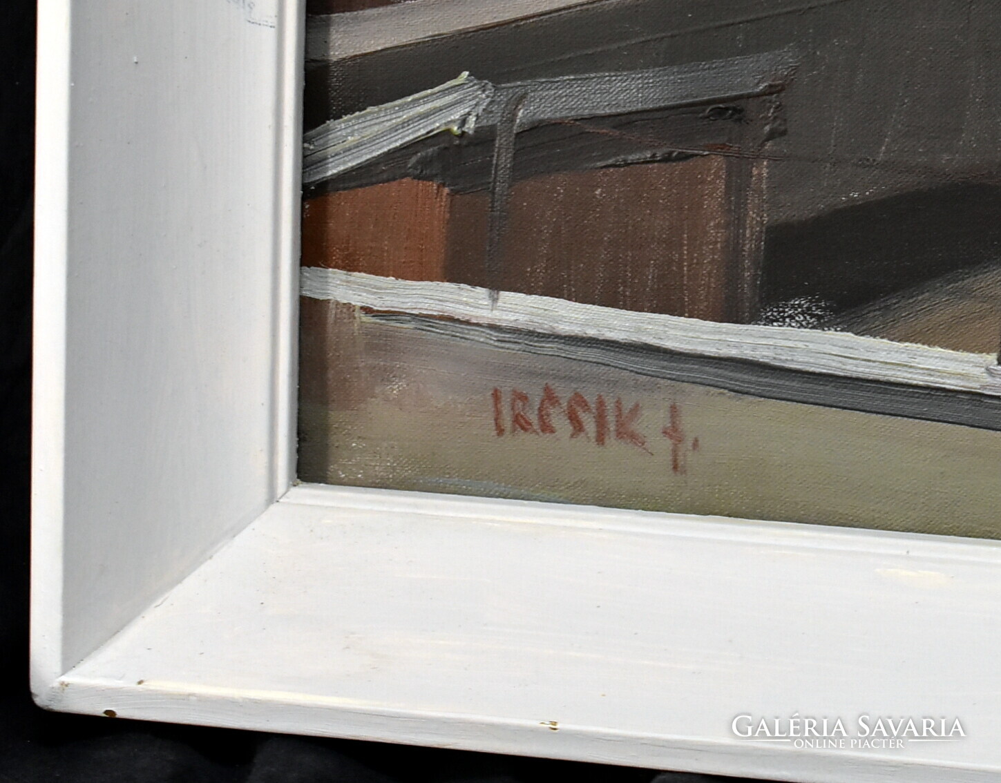 Olaj - farost , jelezve balra lent , kép m.: 50 x 70 cm korabeli képcsarnokos Kerettel : 57 x 77 cm Hátoldalon képcsarnok etikettel . A festő mesterei Kmetty János és Bernáth Aurél voltak , Veszprémben élt , ezen kép is ebből a szempontból is egy izgalmas karakteres Ircsik József mű !
