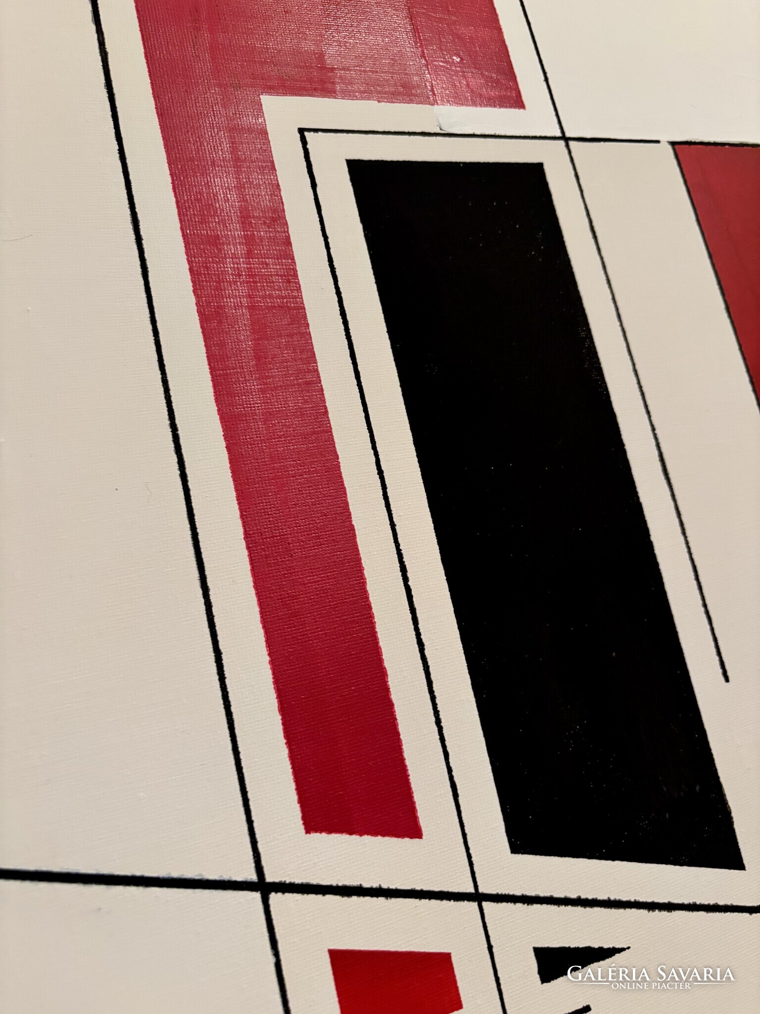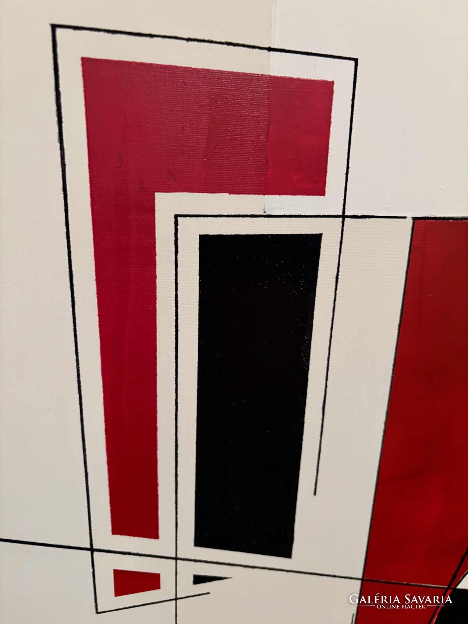 Ez a festmény méltó lezárása a kollekciónak, amely az érzelmeket színeken és formákon keresztül fejezi ki. A kompozíció határozott geometriája és kontrasztos színvilága erőteljes vizuális hatást kelt, miközben az összetett vonalvezetés és a különböző textúrák mozgást és dinamizmust sugallnak.