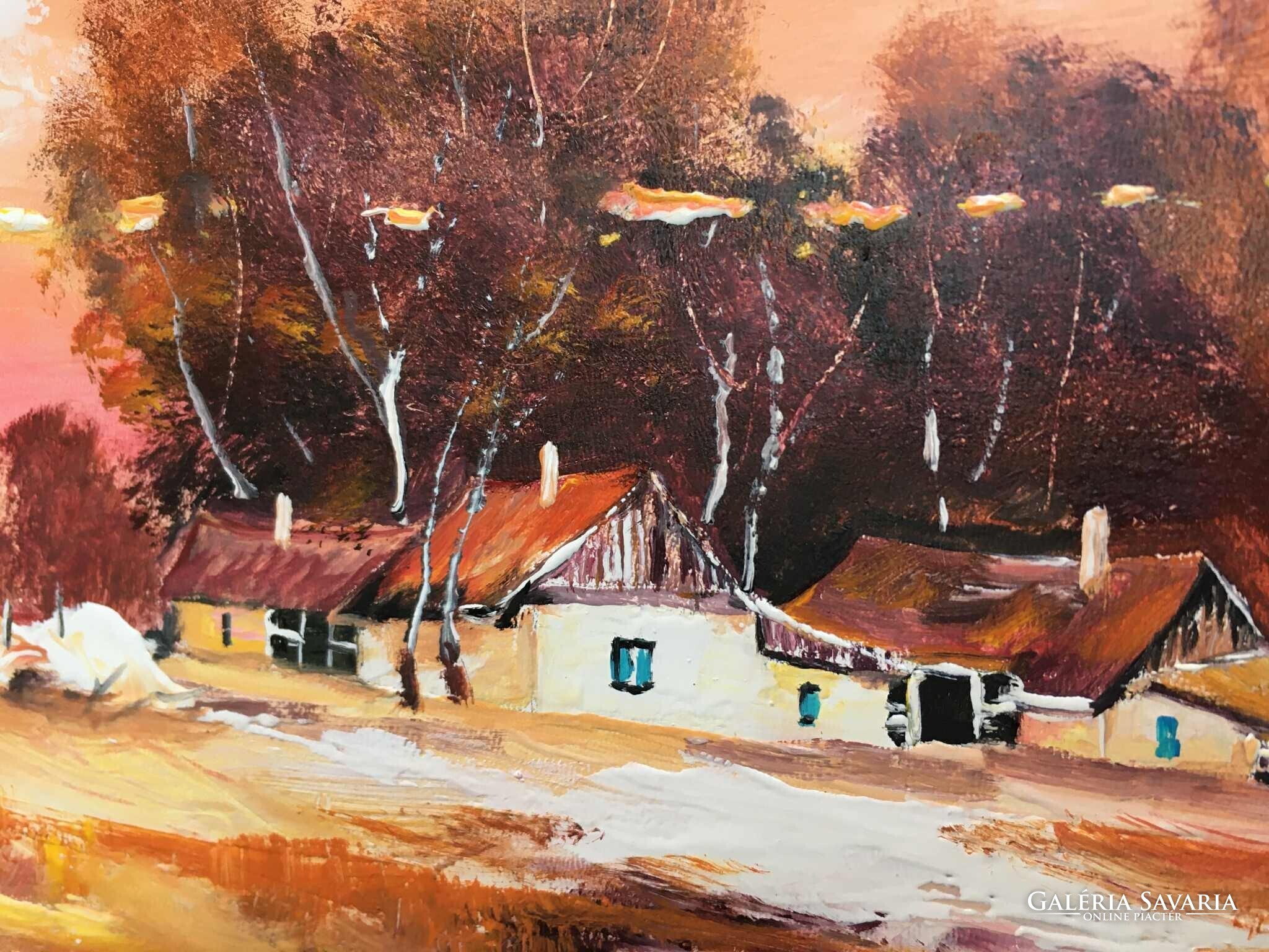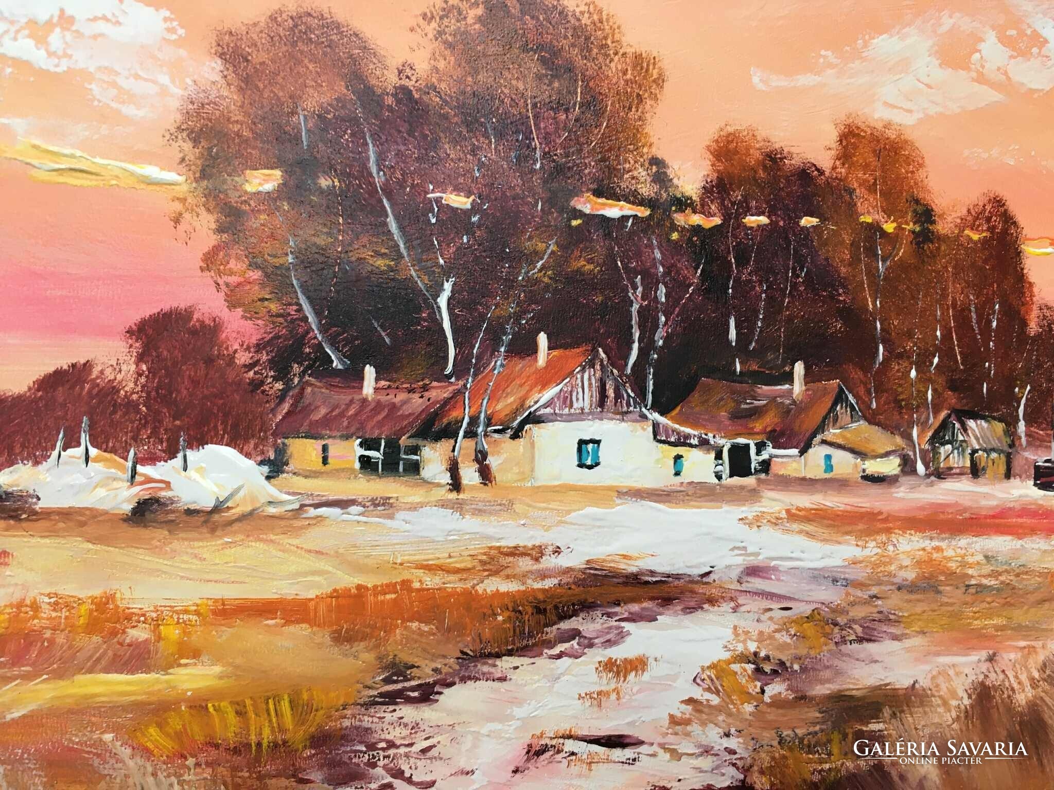 Alföldi naplemente c. Kortárs olajfestmény