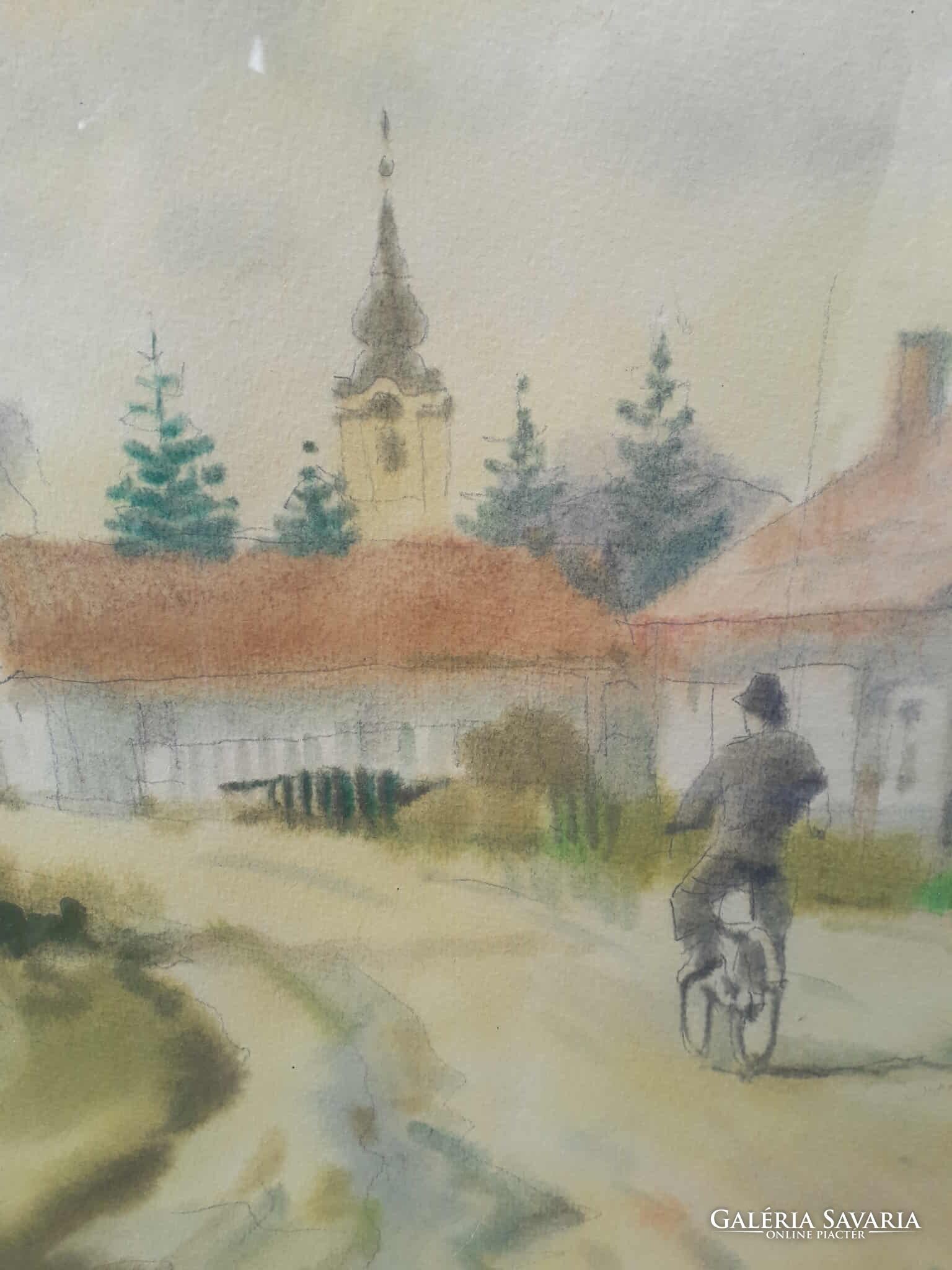 Osváth Miklós festmény-akvarell / Tápió vidékén.