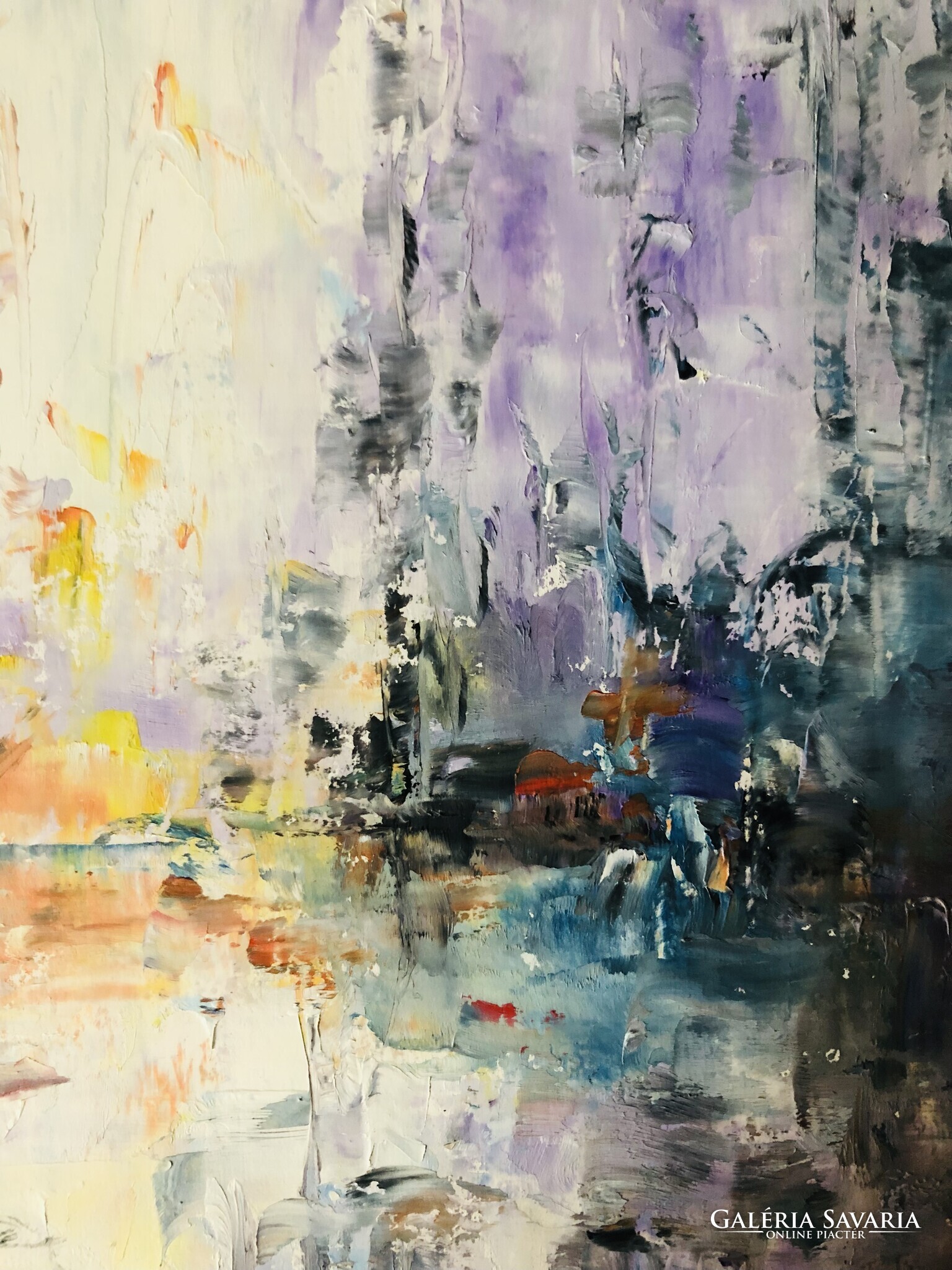 Különleges textúra ,festőkés használata, a művészre jellemző egyedi technika.