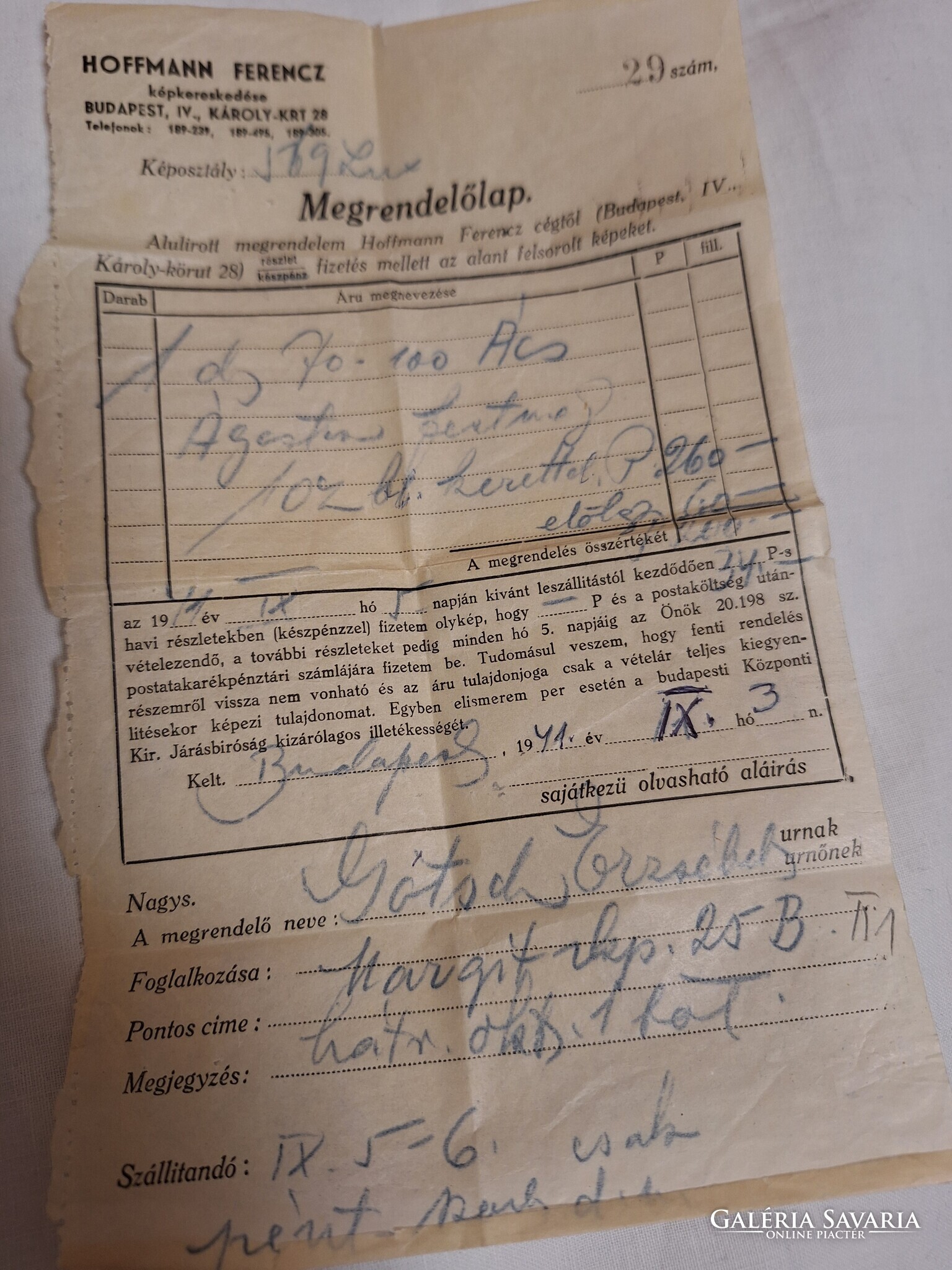 Ács Ágoston nagyméretű kép eredeti 1941-es számlával!