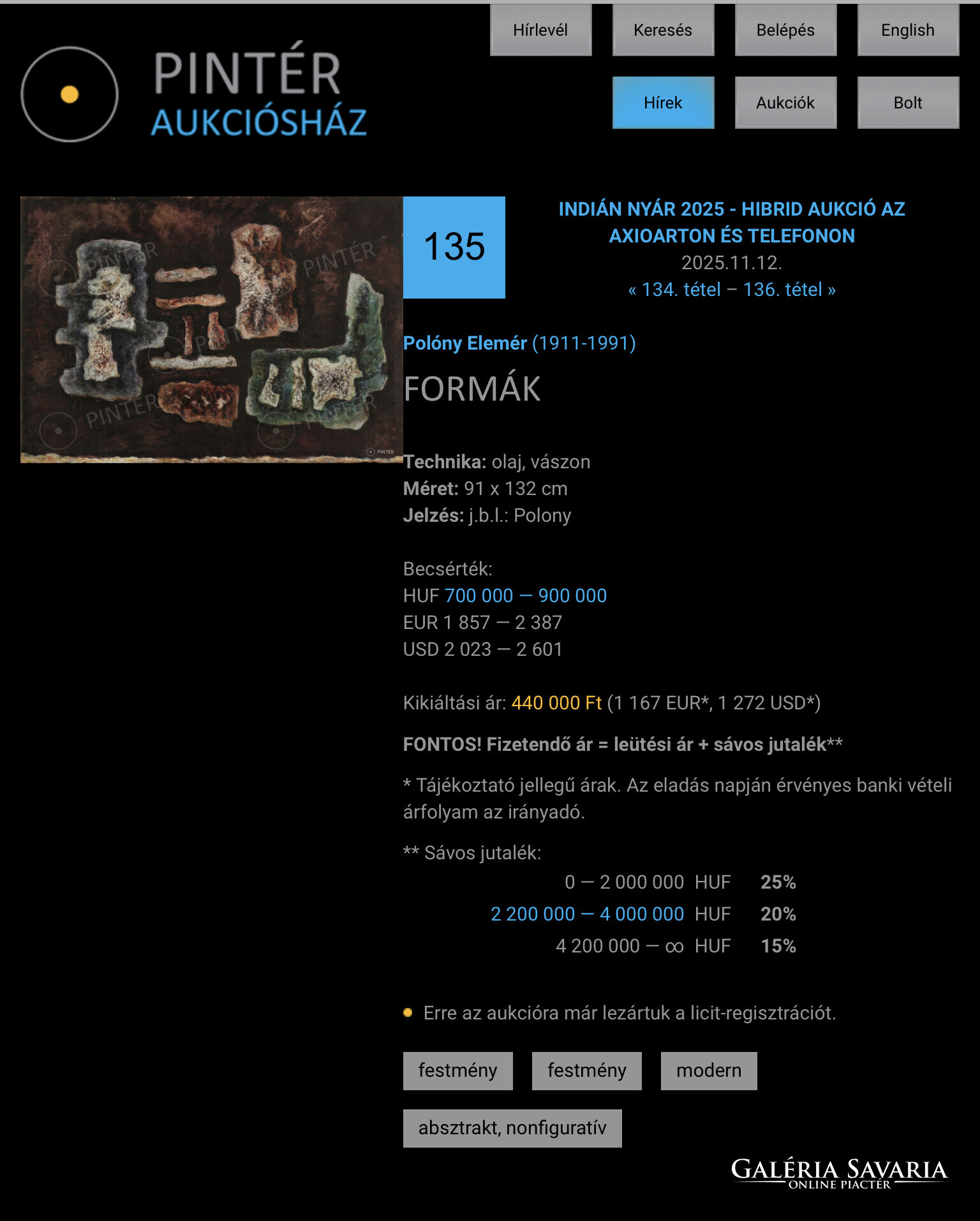 Polóny Elemér, Formák, aukción szerepelt nagy méret!
