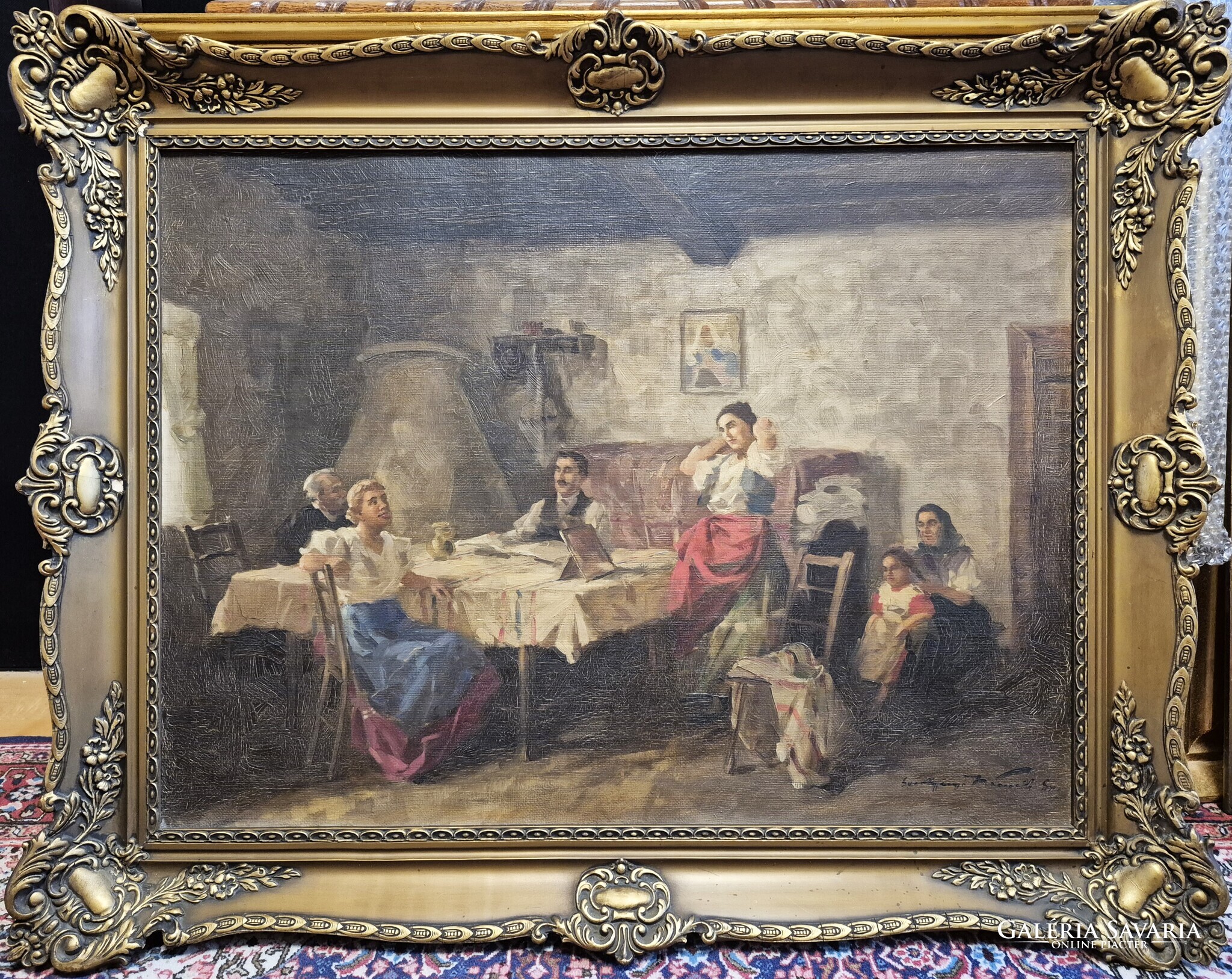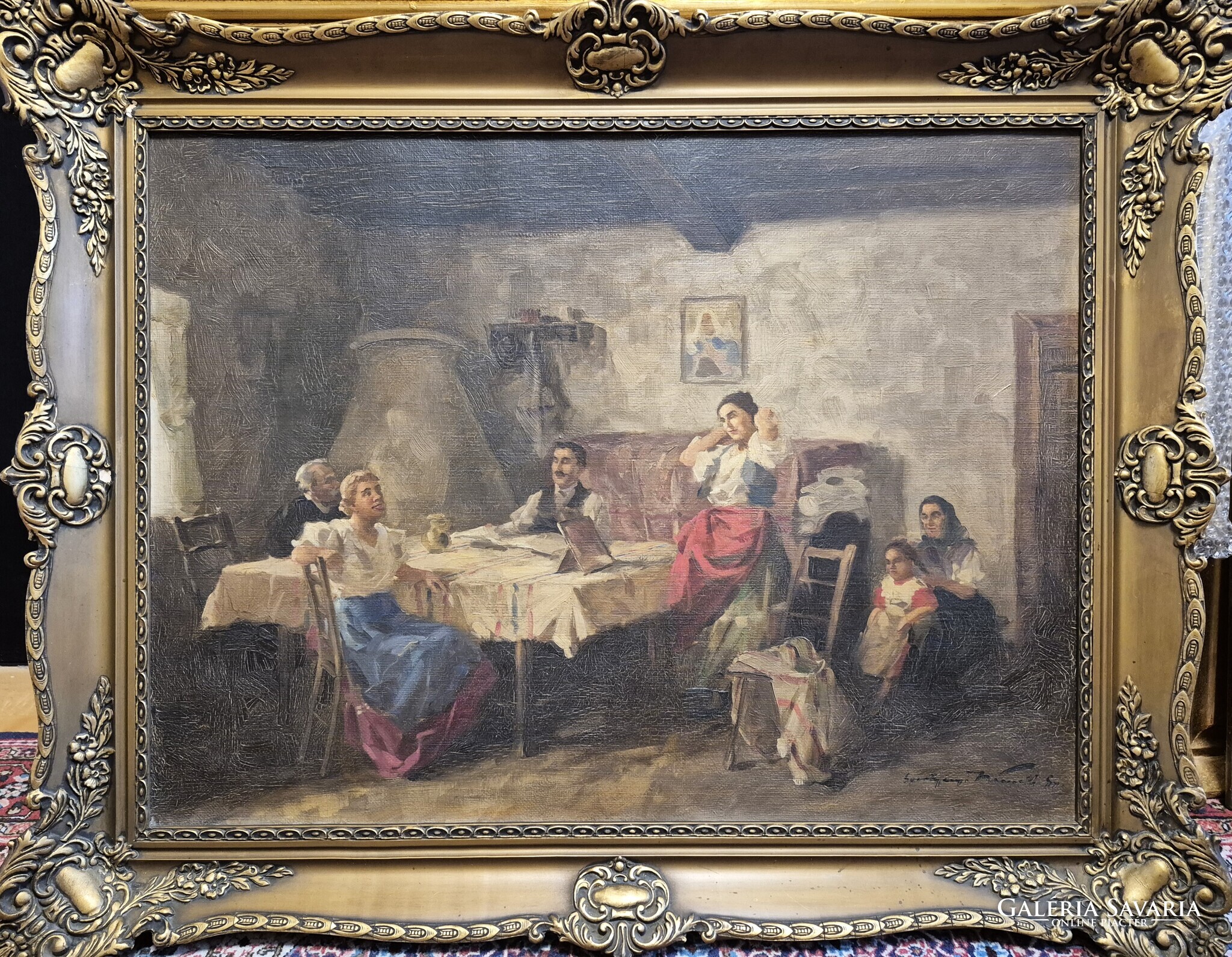 Gyertyáni Németh Gyula / Család, 60x80 cm, olaj-vászon, blondel keretben. A kép hibátlan állapotú, tisztítása javasolt. A képhez számlát adok, eredetiségére garanciát vállalok.