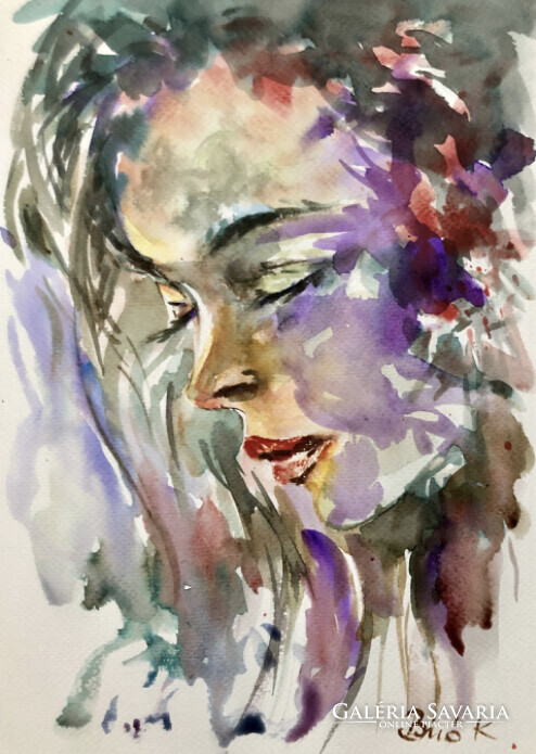 Lehunyt szemmel! Egy gyönyörű akvarell portré. A4 méret.Ajándéknak is tökéletes!