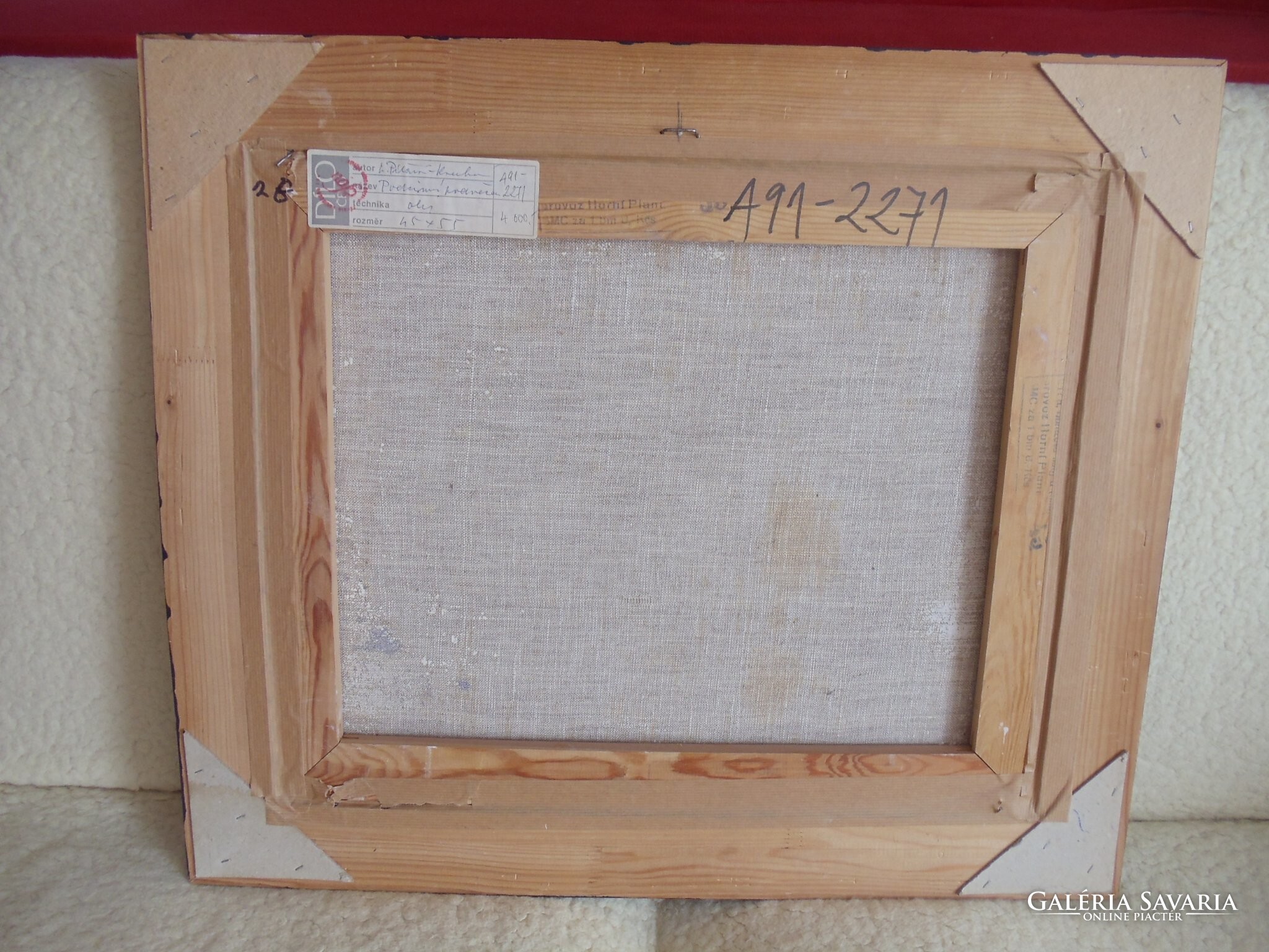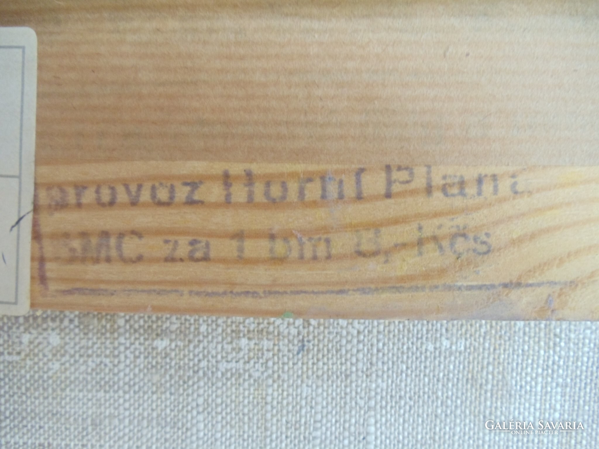 A kép hátoldalán cseh galériás etikett található. Rajta a kép címe, ami csehül van írva és nem tudom kiolvasni. Fekete fa keretben.