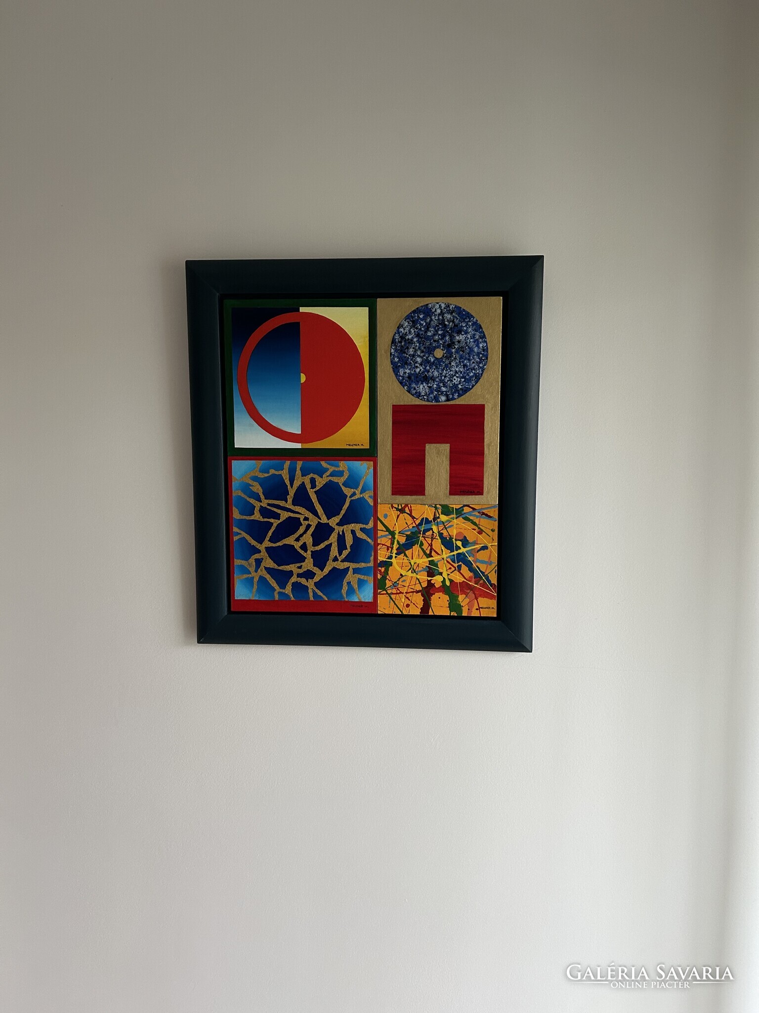 A művésztől megszokott, 4 egységből álló, fantasztikusan jó, élénk színekkel megfestett alkotás. Modern keretében, amely a vételár részét képezi.