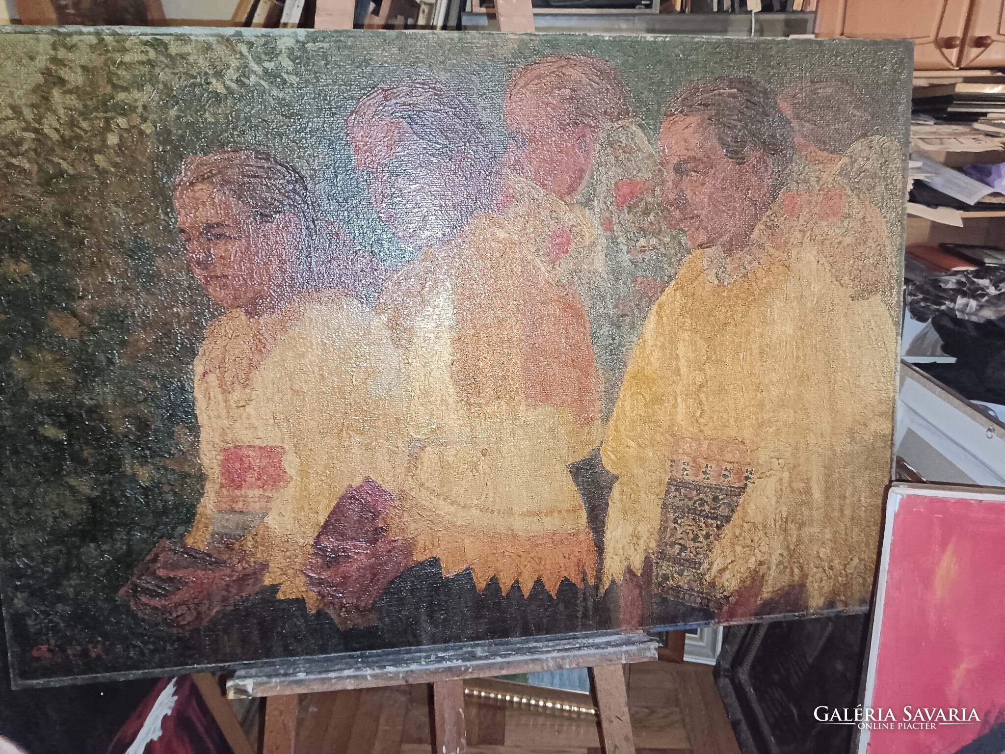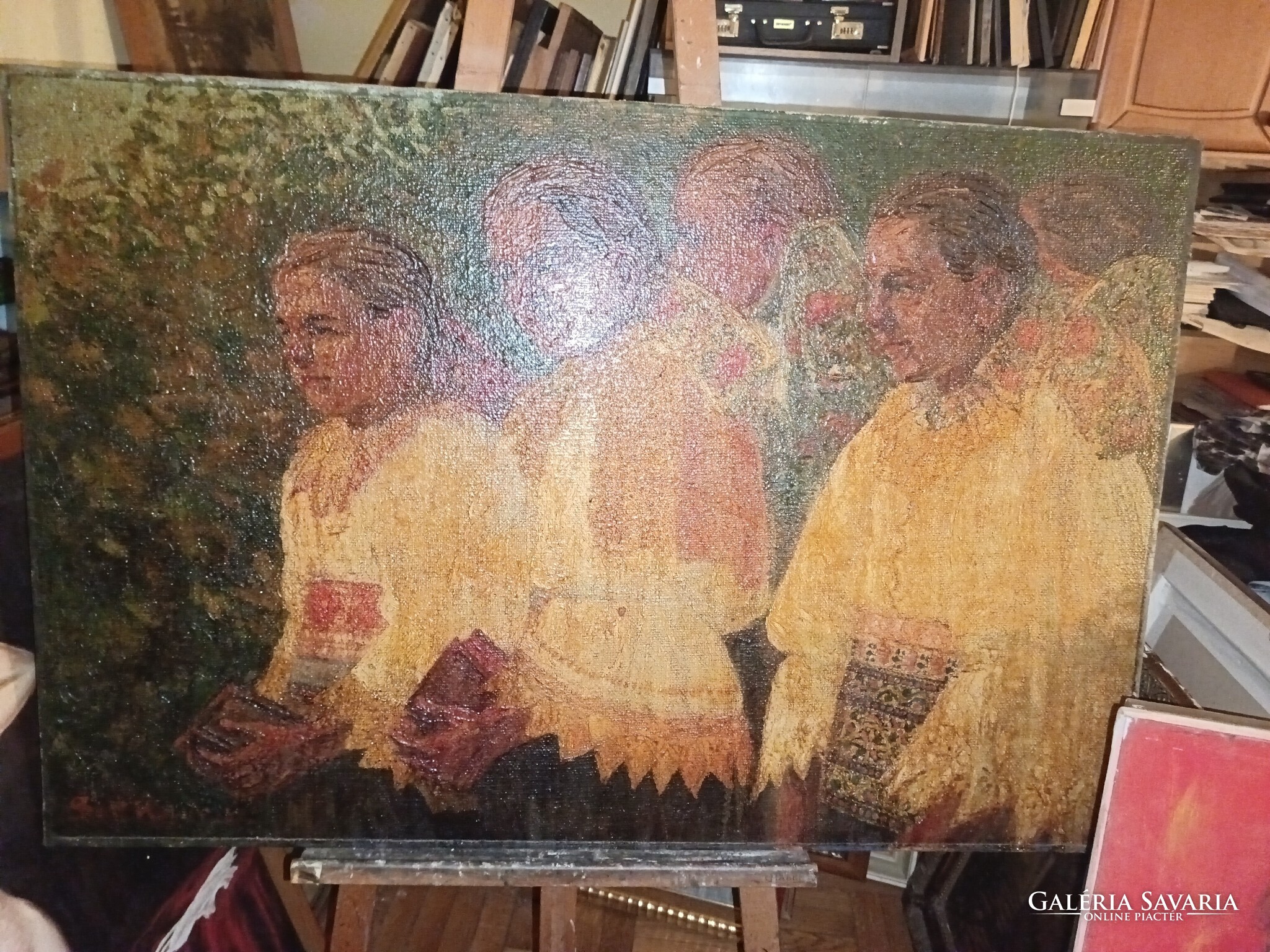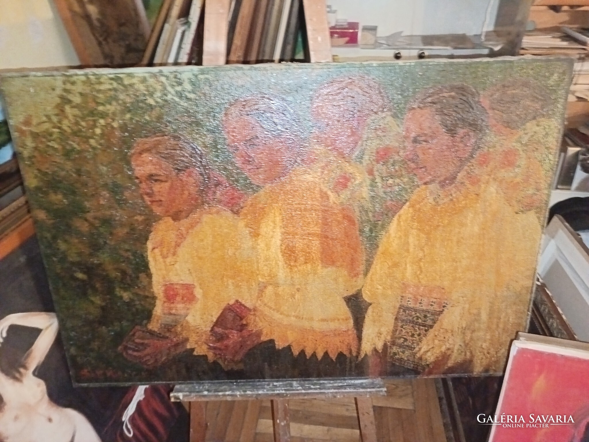 Zsákvászonra olajfestmény.