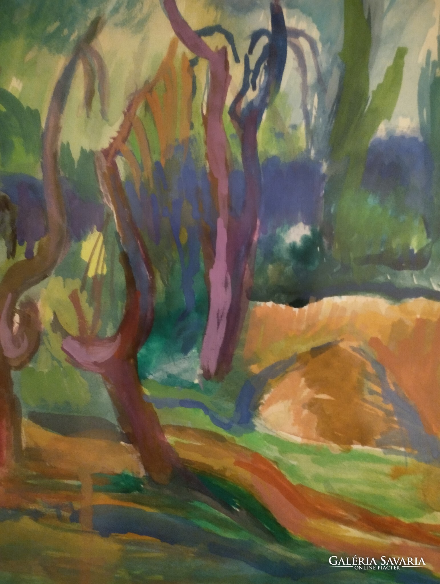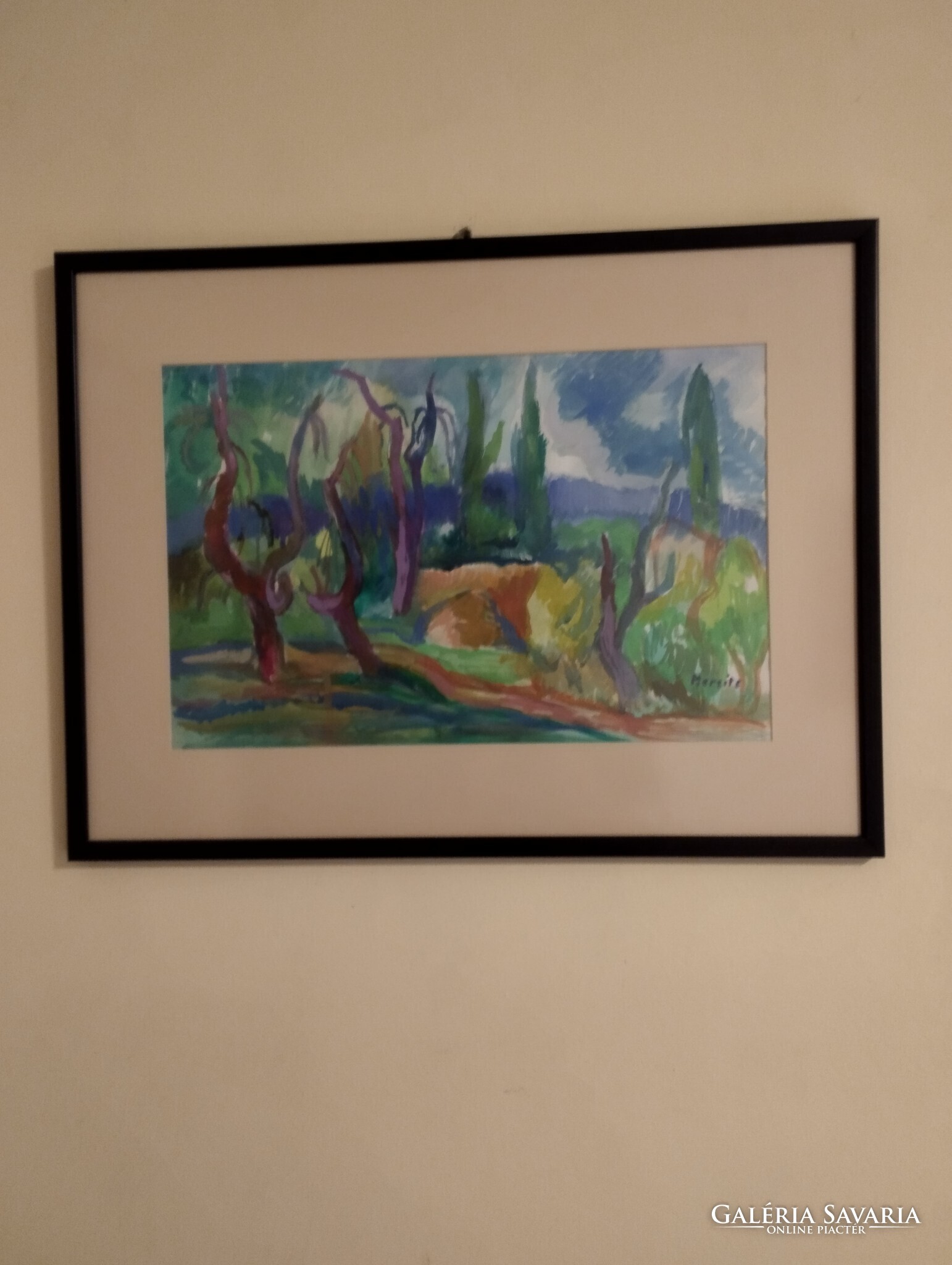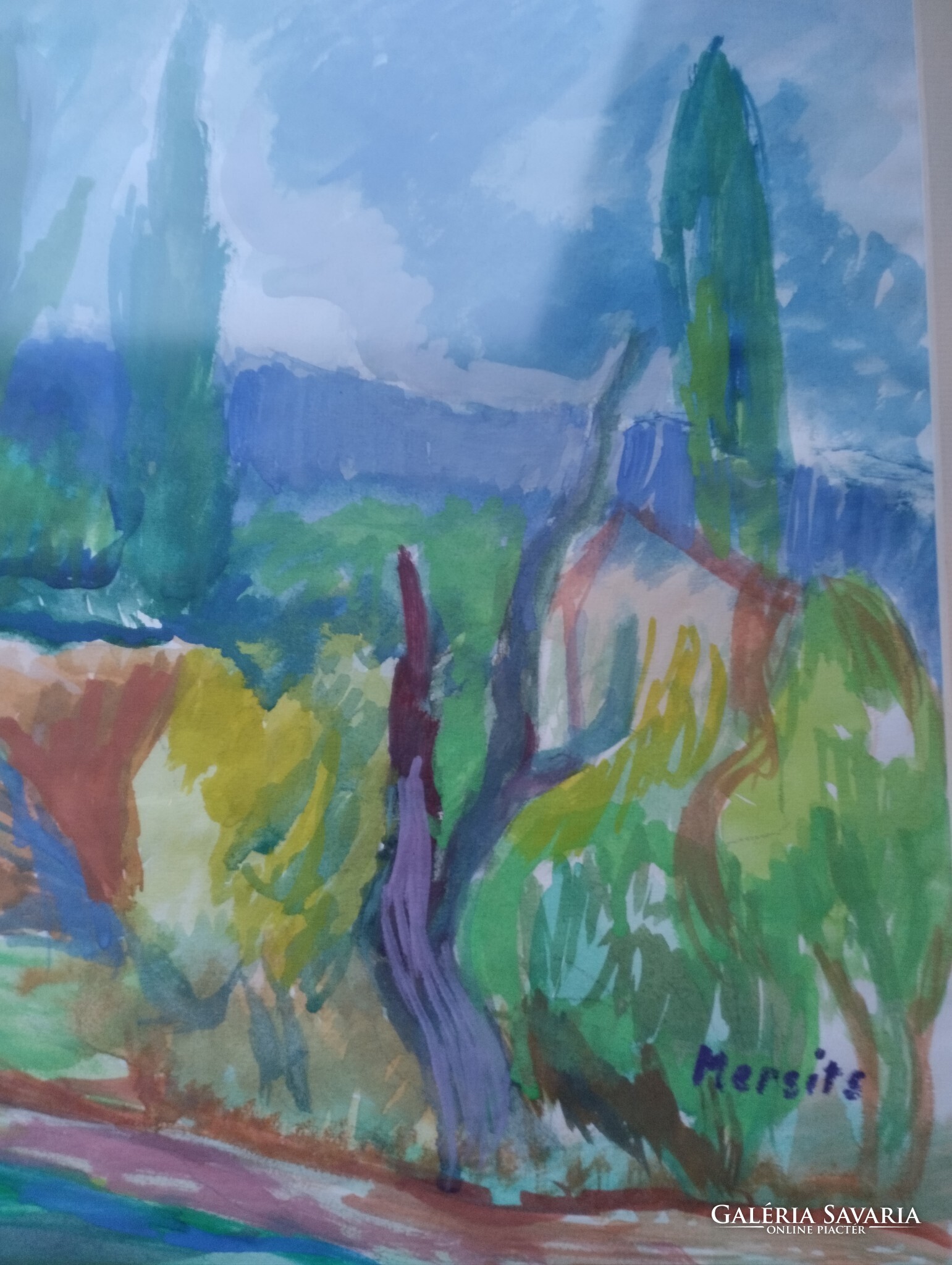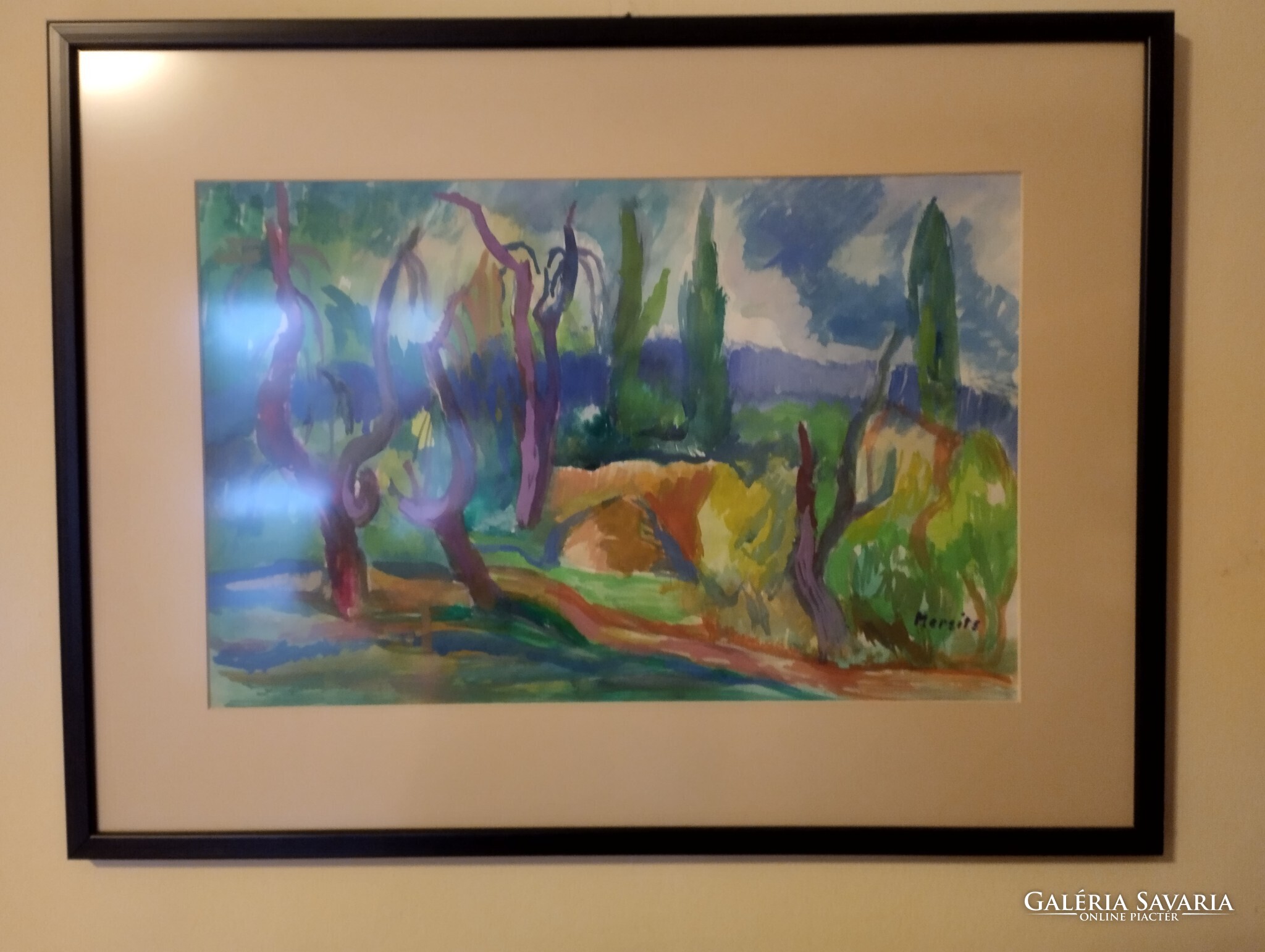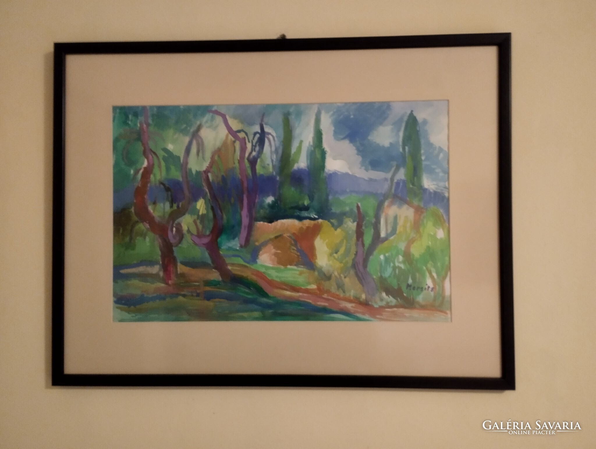 Temperafestmény,papíron. Keretezve,üveglap alatt.
