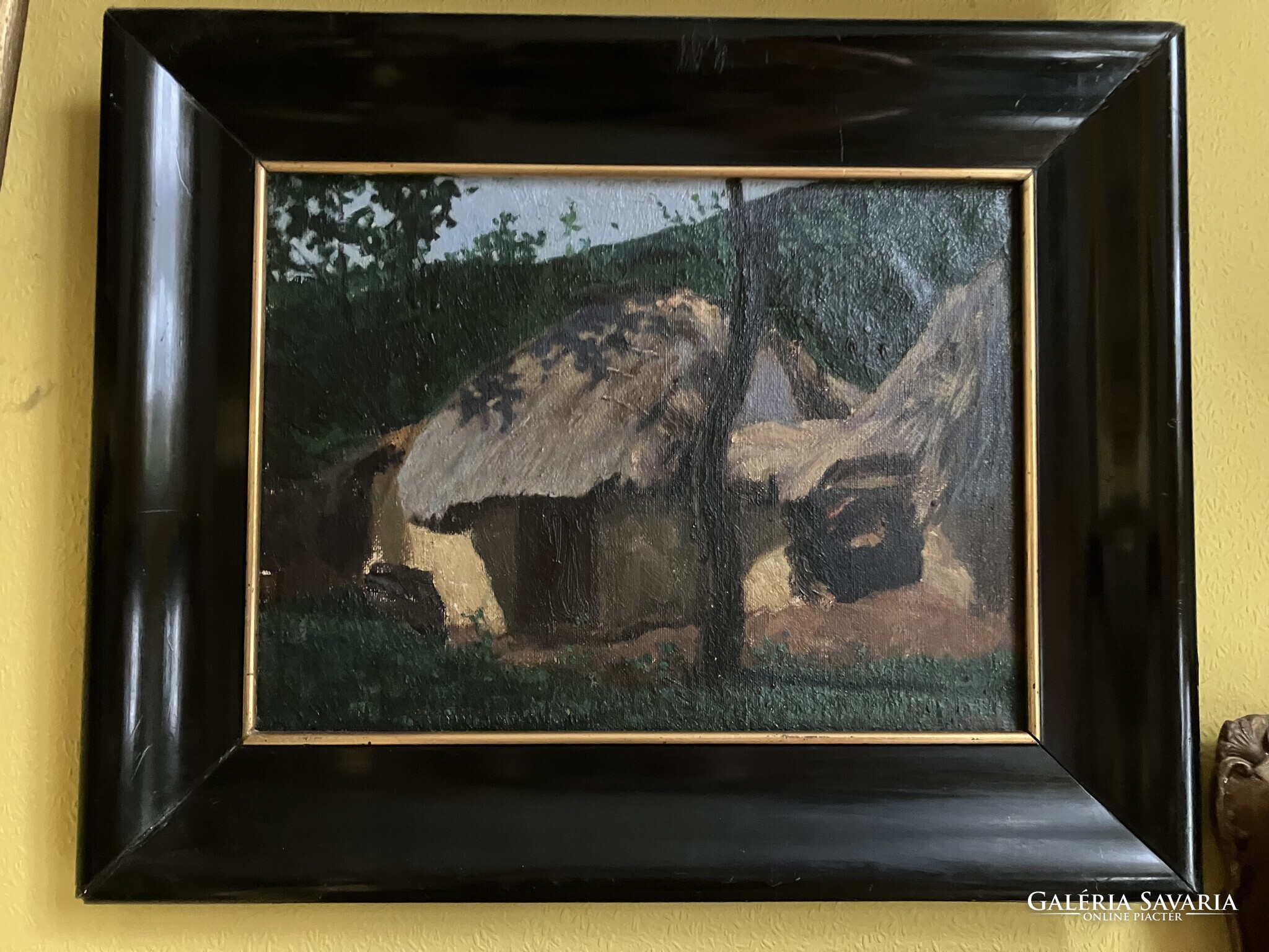 Sassy Attila (Aiglon) (1880-1967) alkotása: Nagybányai öreg házak.