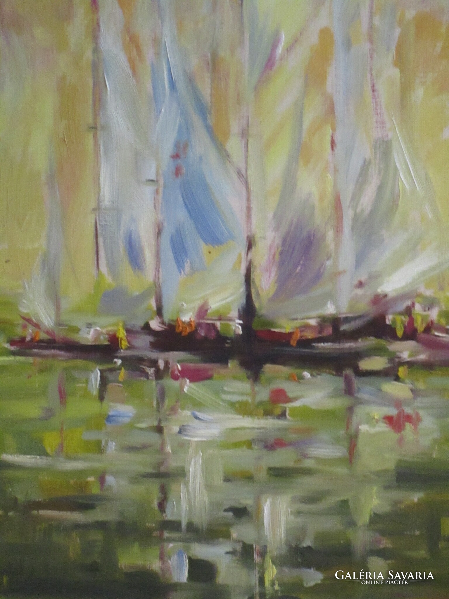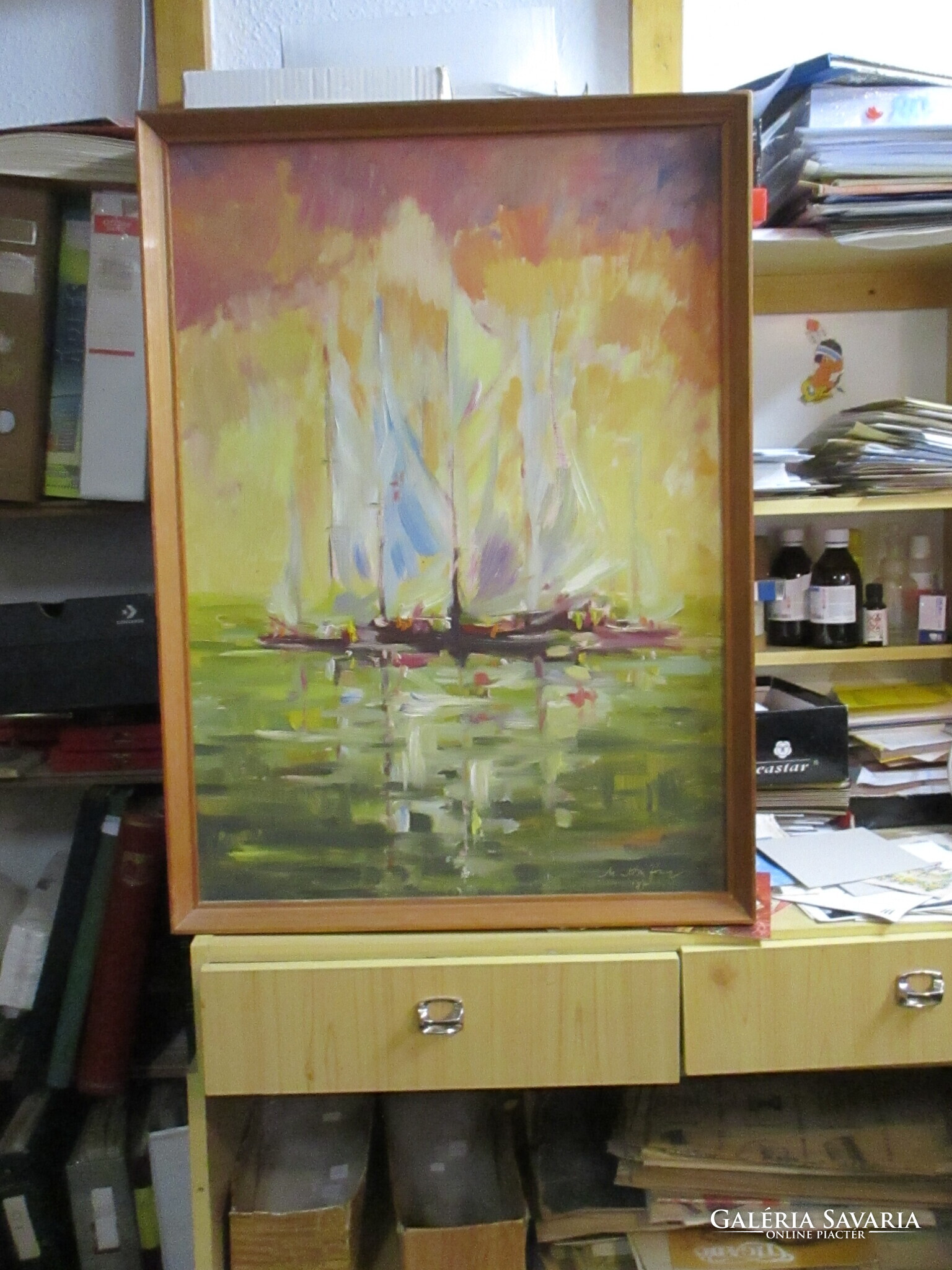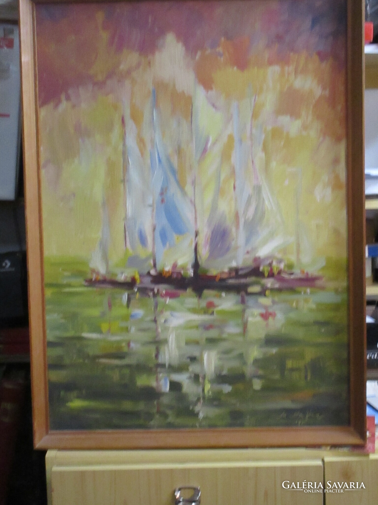 M. Kiss József (1936-1999): Vitorlások, olaj farost