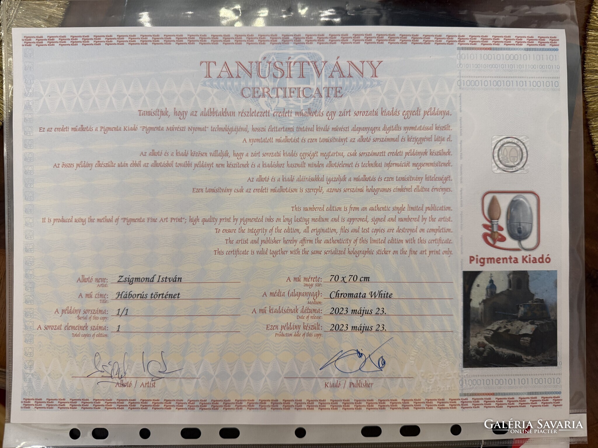 Az eladó eredetiként jelölte meg az alkotást, amelyre 30 nap pénzvisszafizetési garanciát vállal.