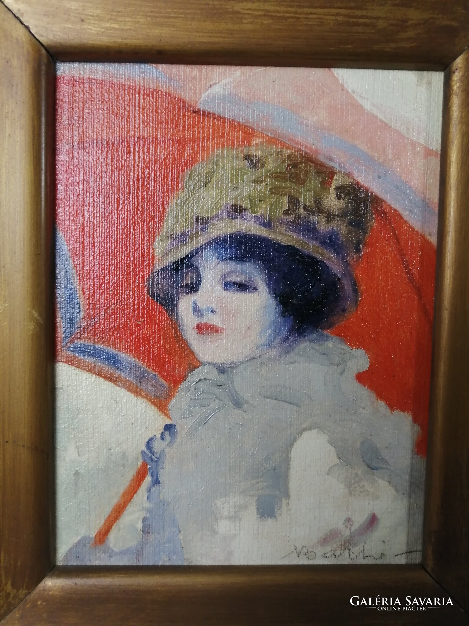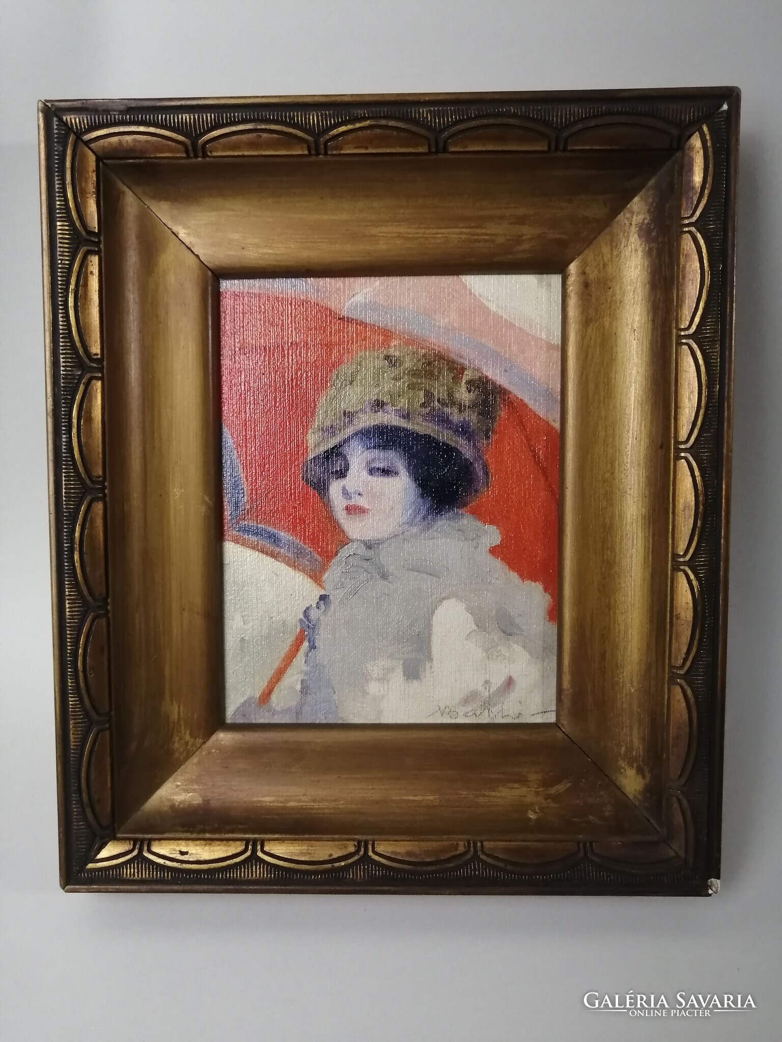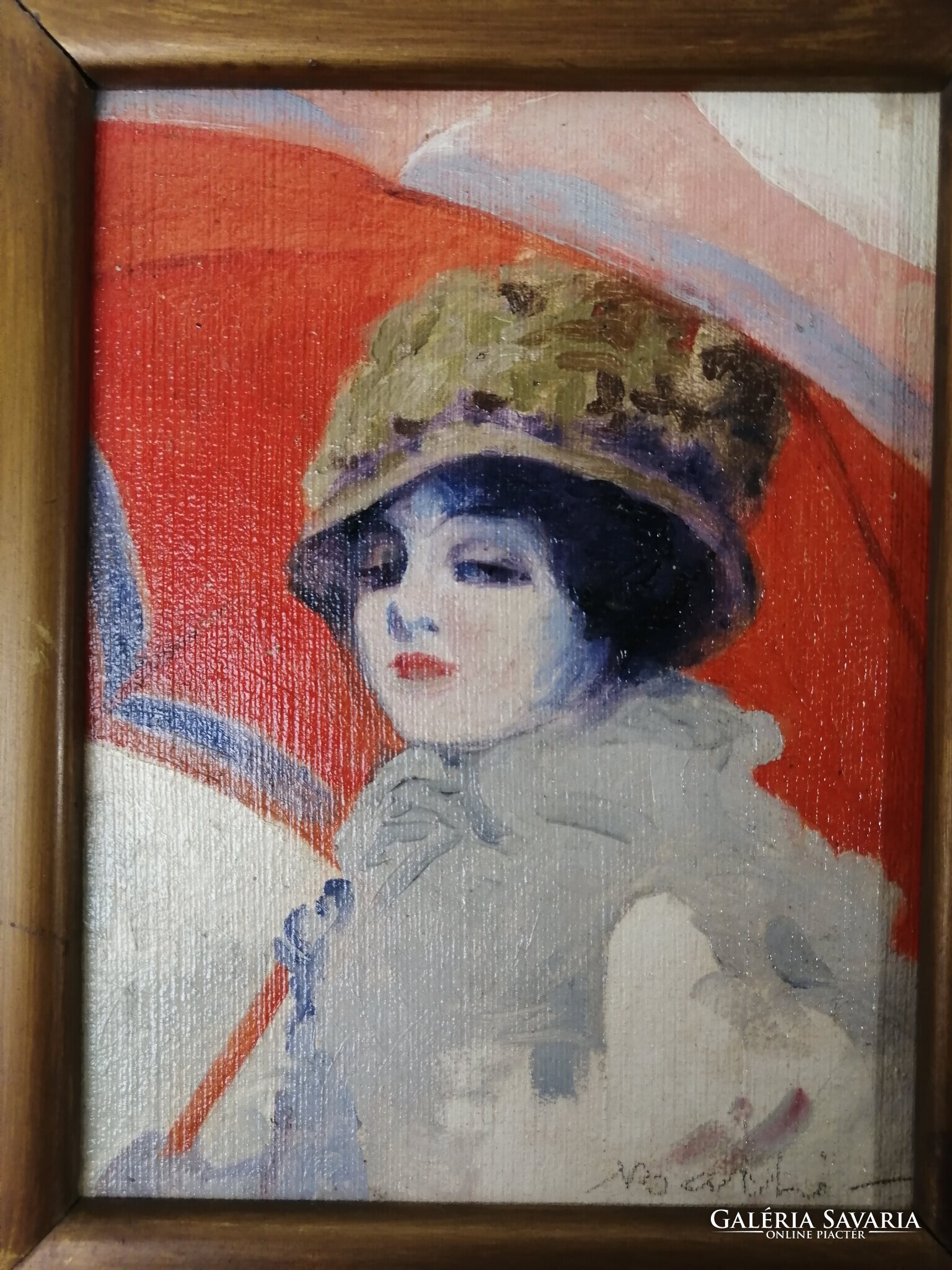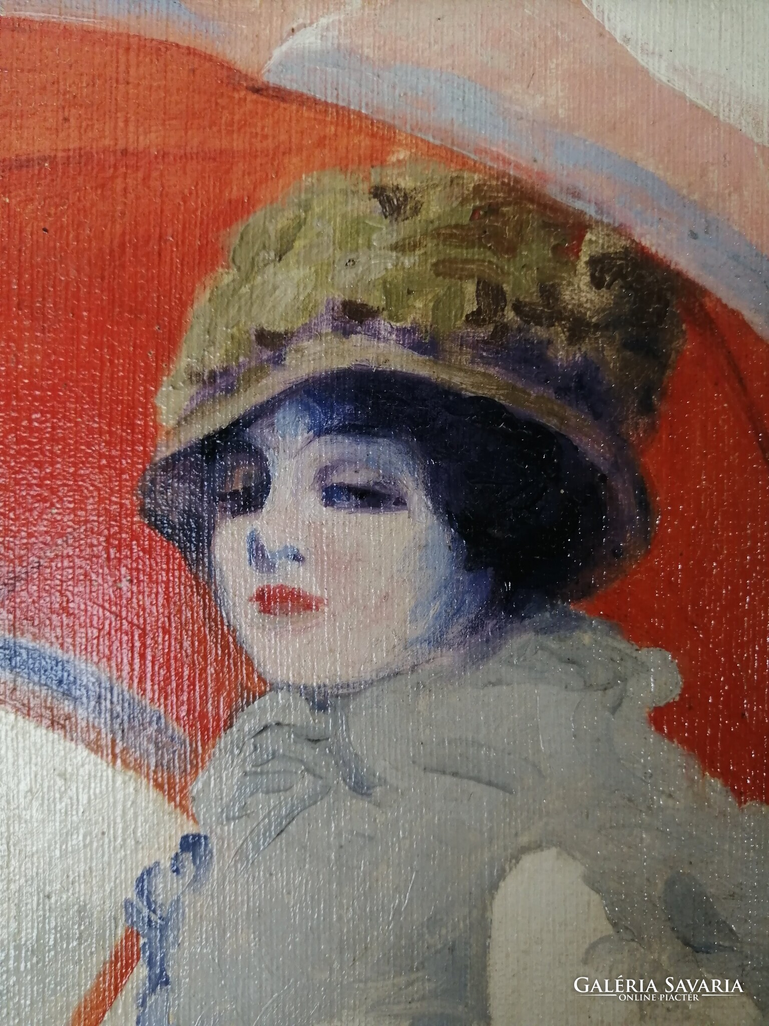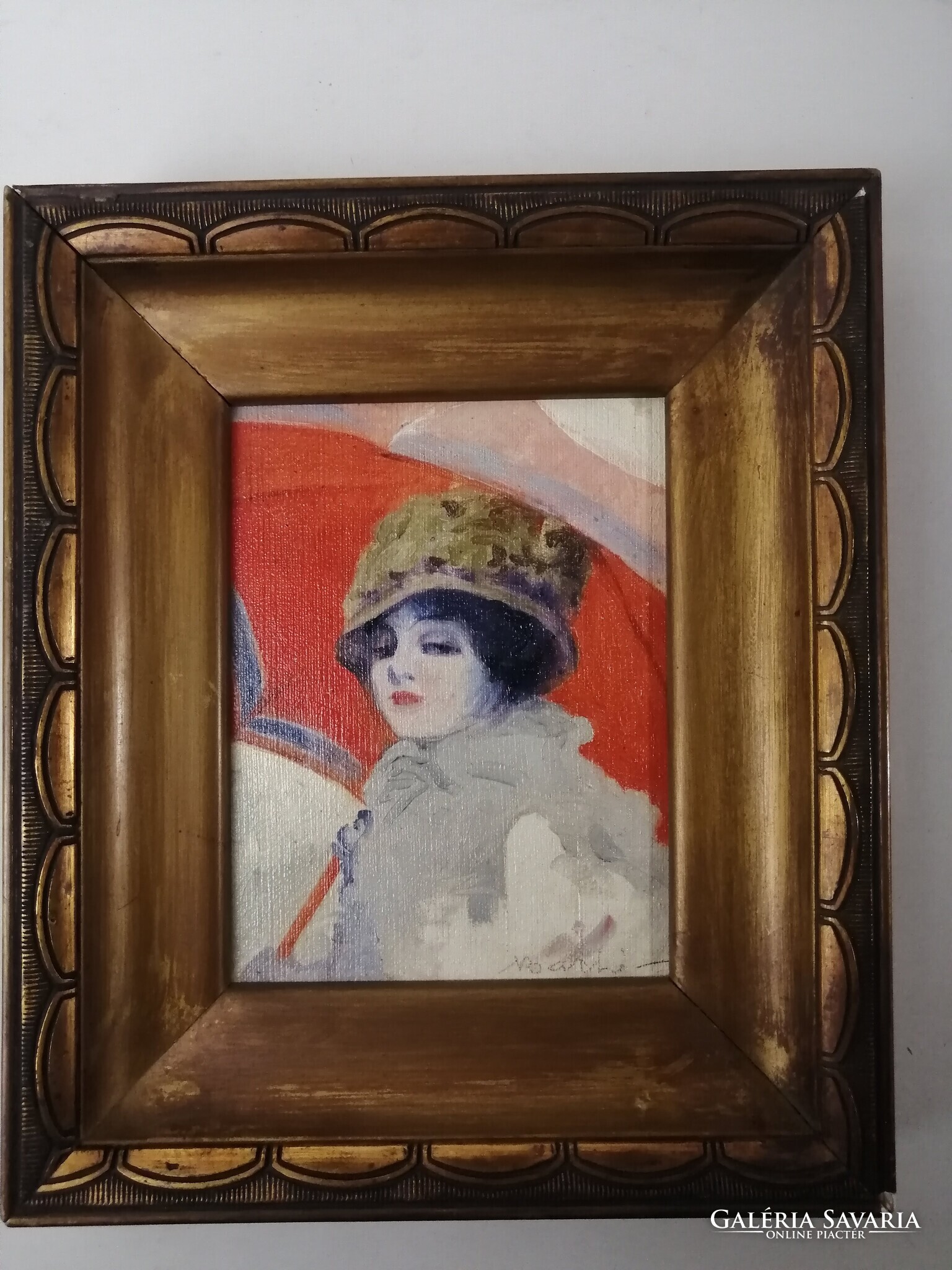 ART DECO PORTRÉ - KALAPOS HÖLGY - FELOLDATLAN JELZÉSSEL