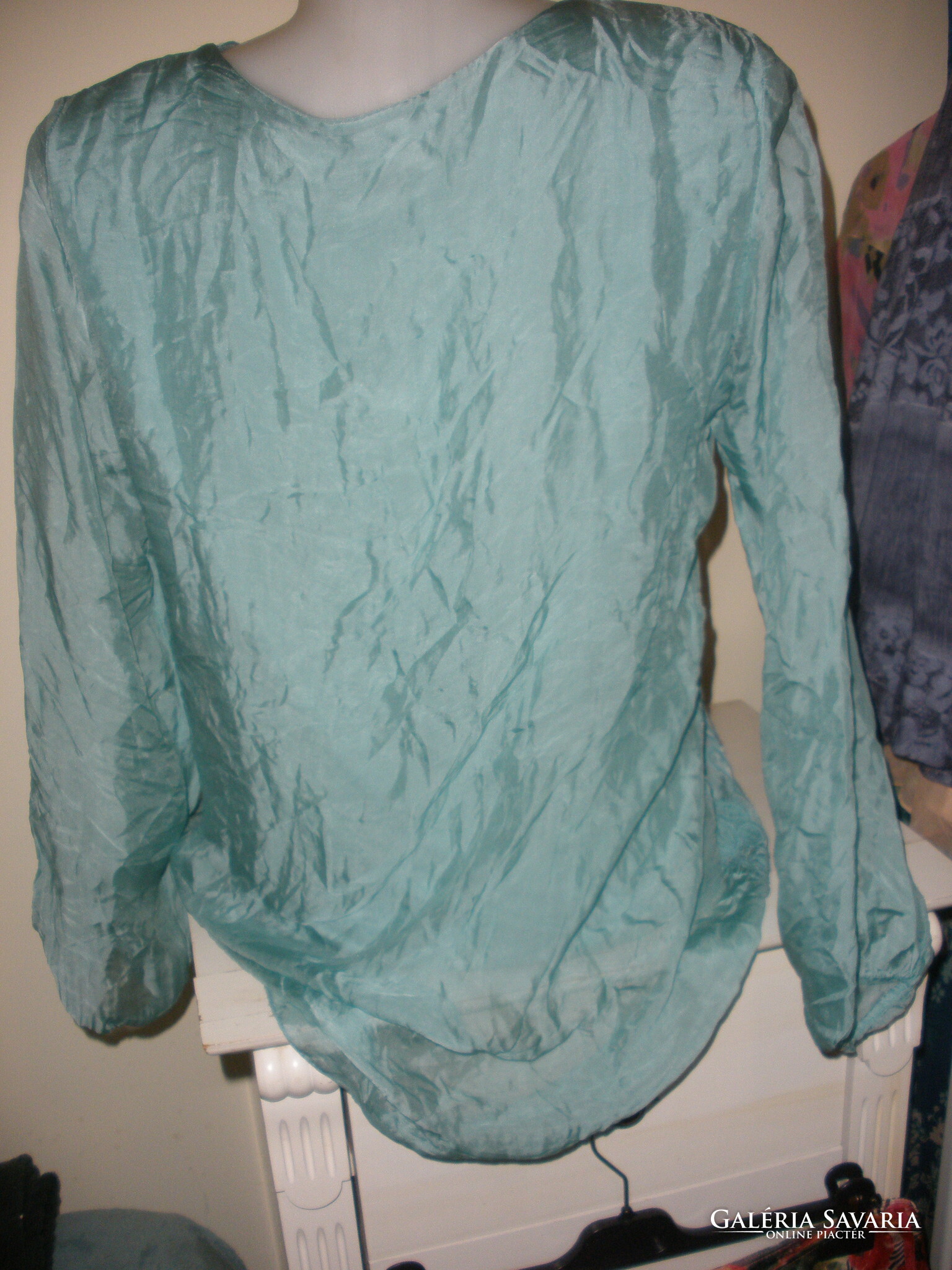 Kékeszöld selyem tartalmú felső