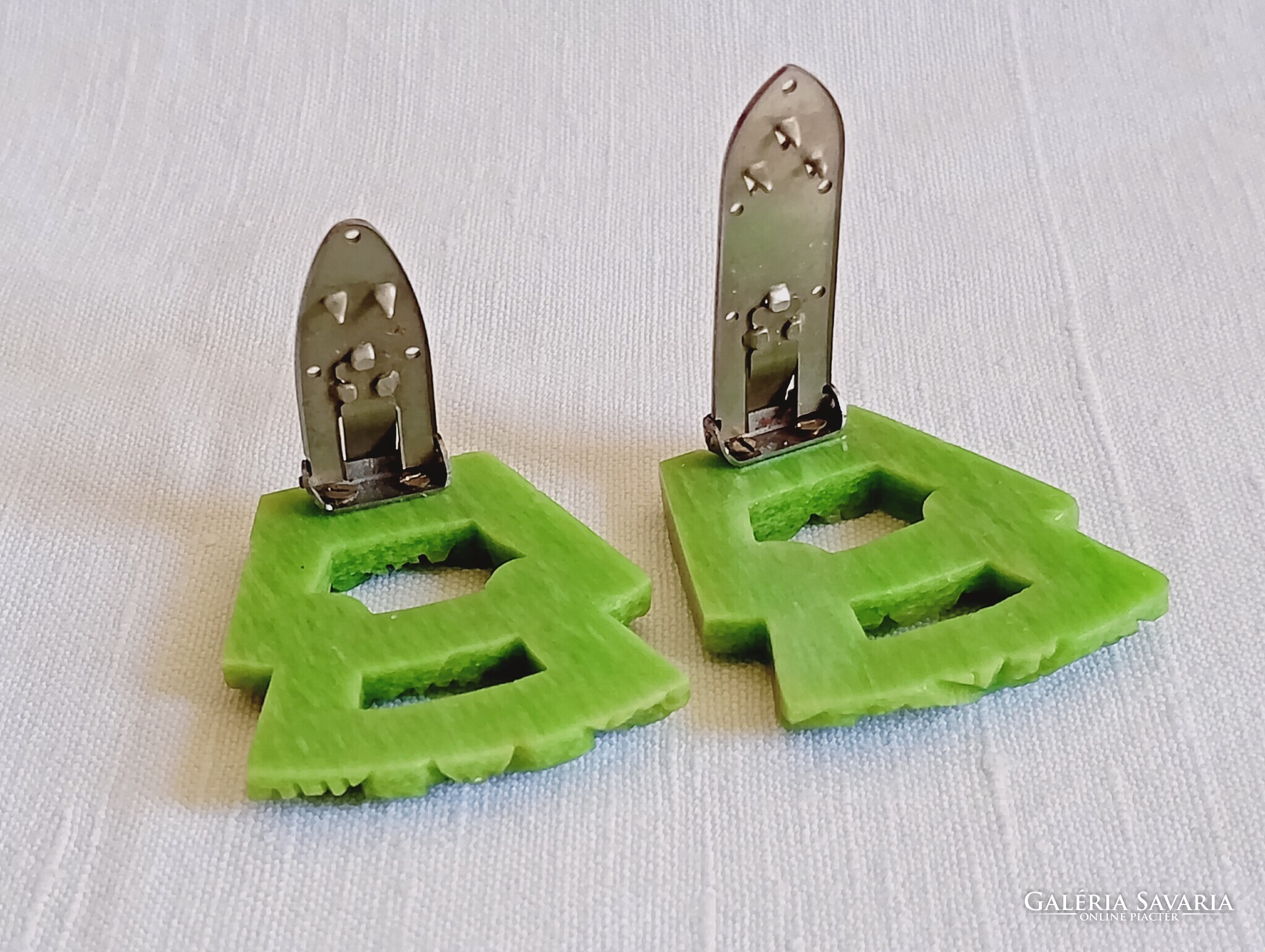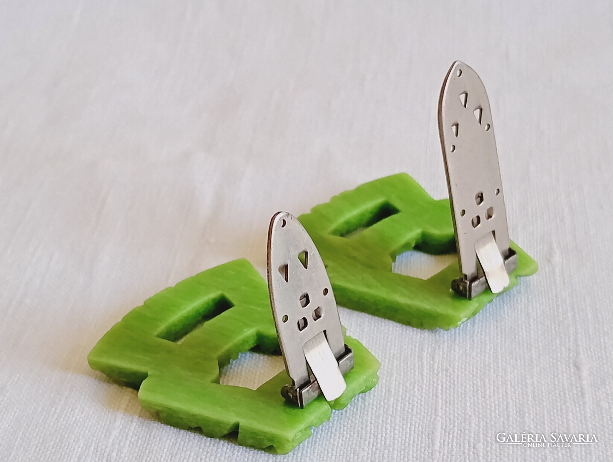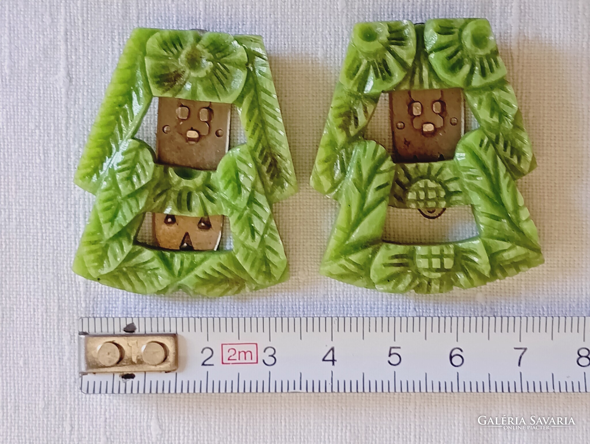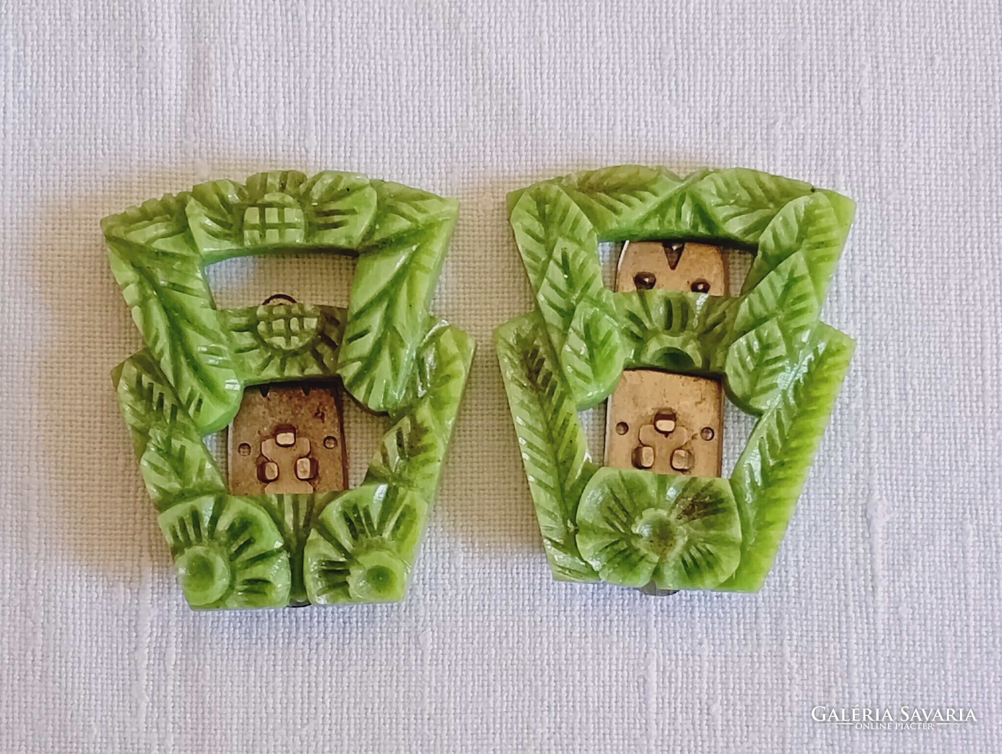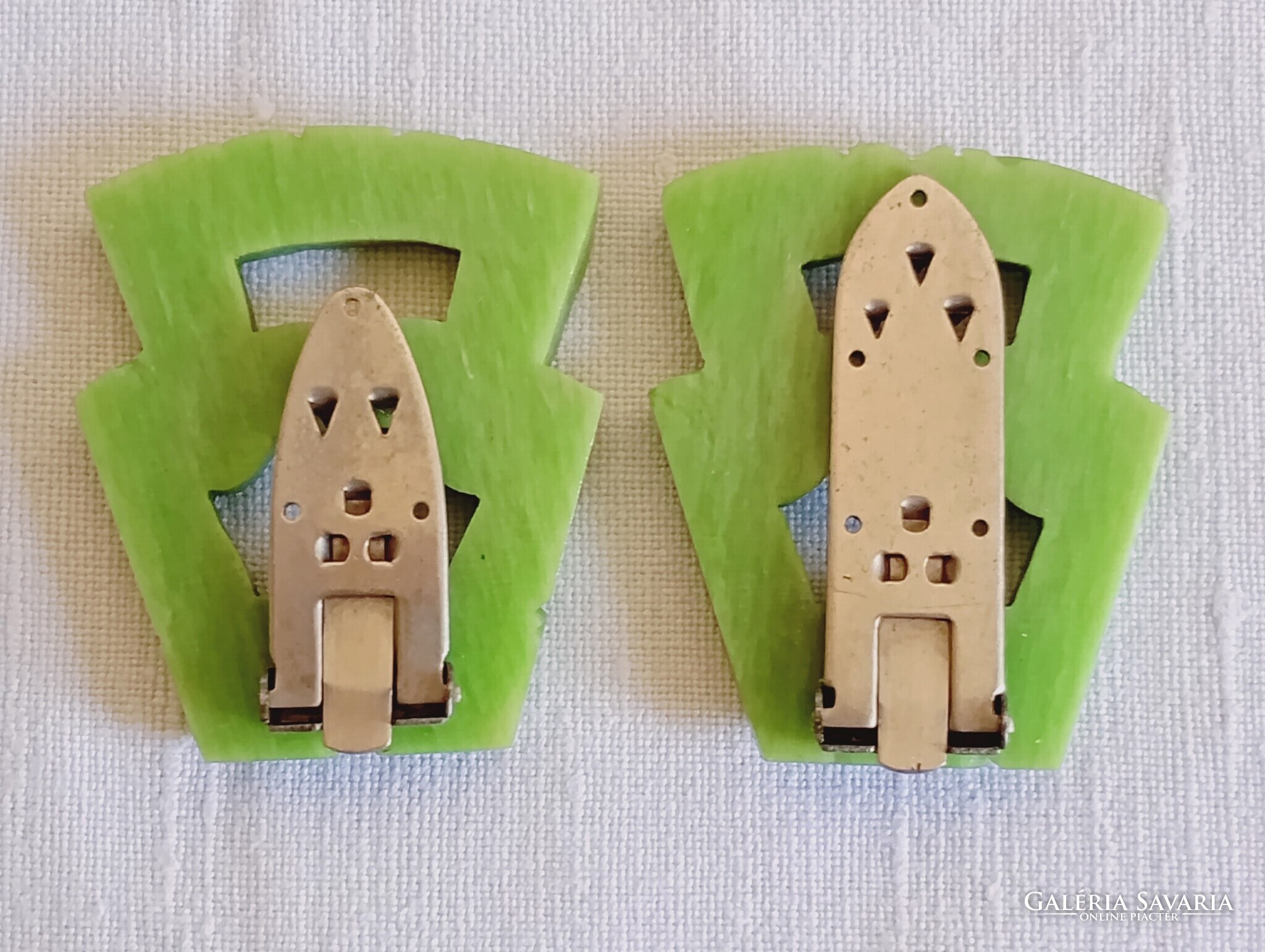 Ruhacsipesz 01 - Celluloid zöld korai műanyag art deco 1930-as évek 2db ruhacsat egyben klipsz