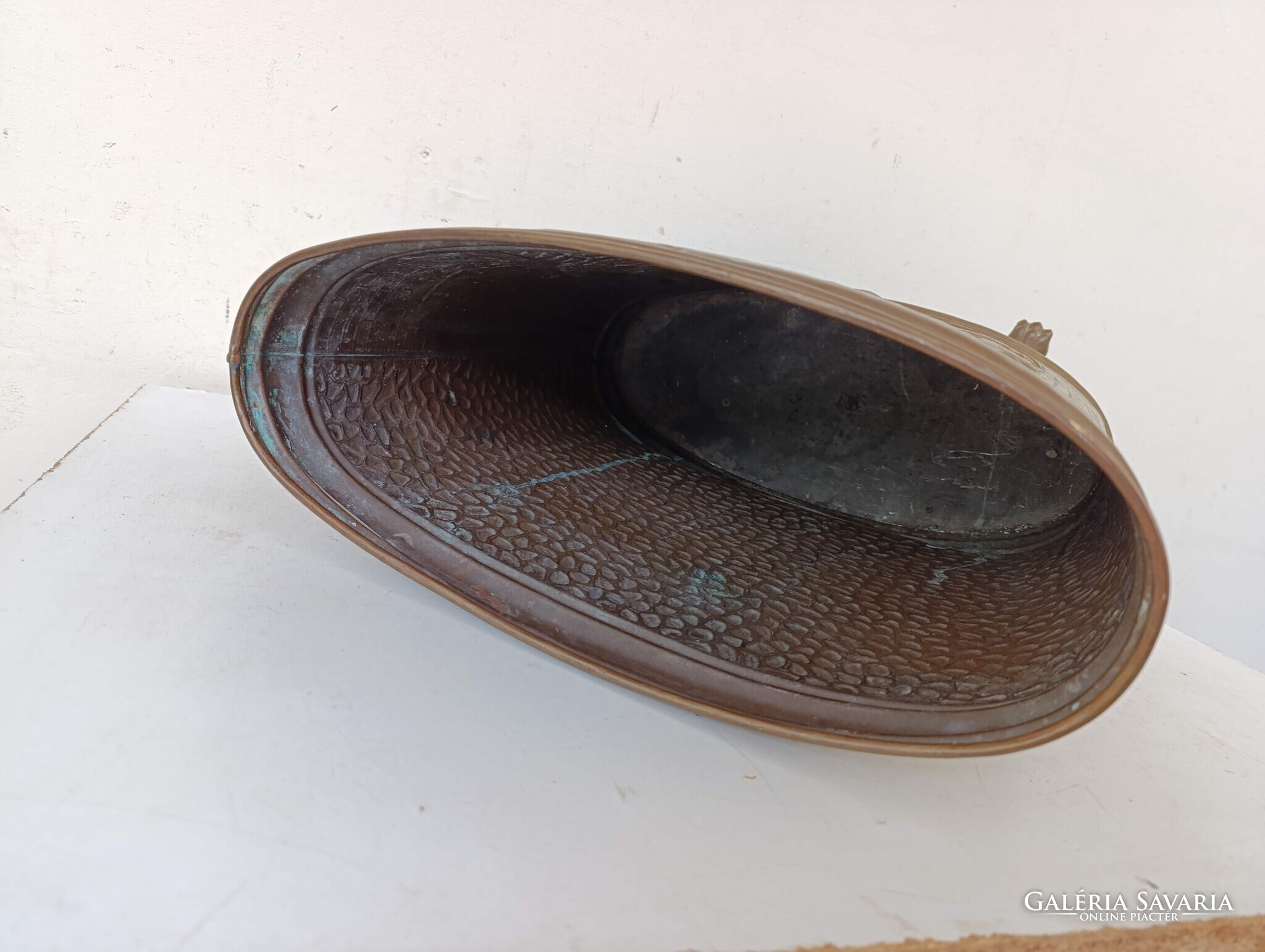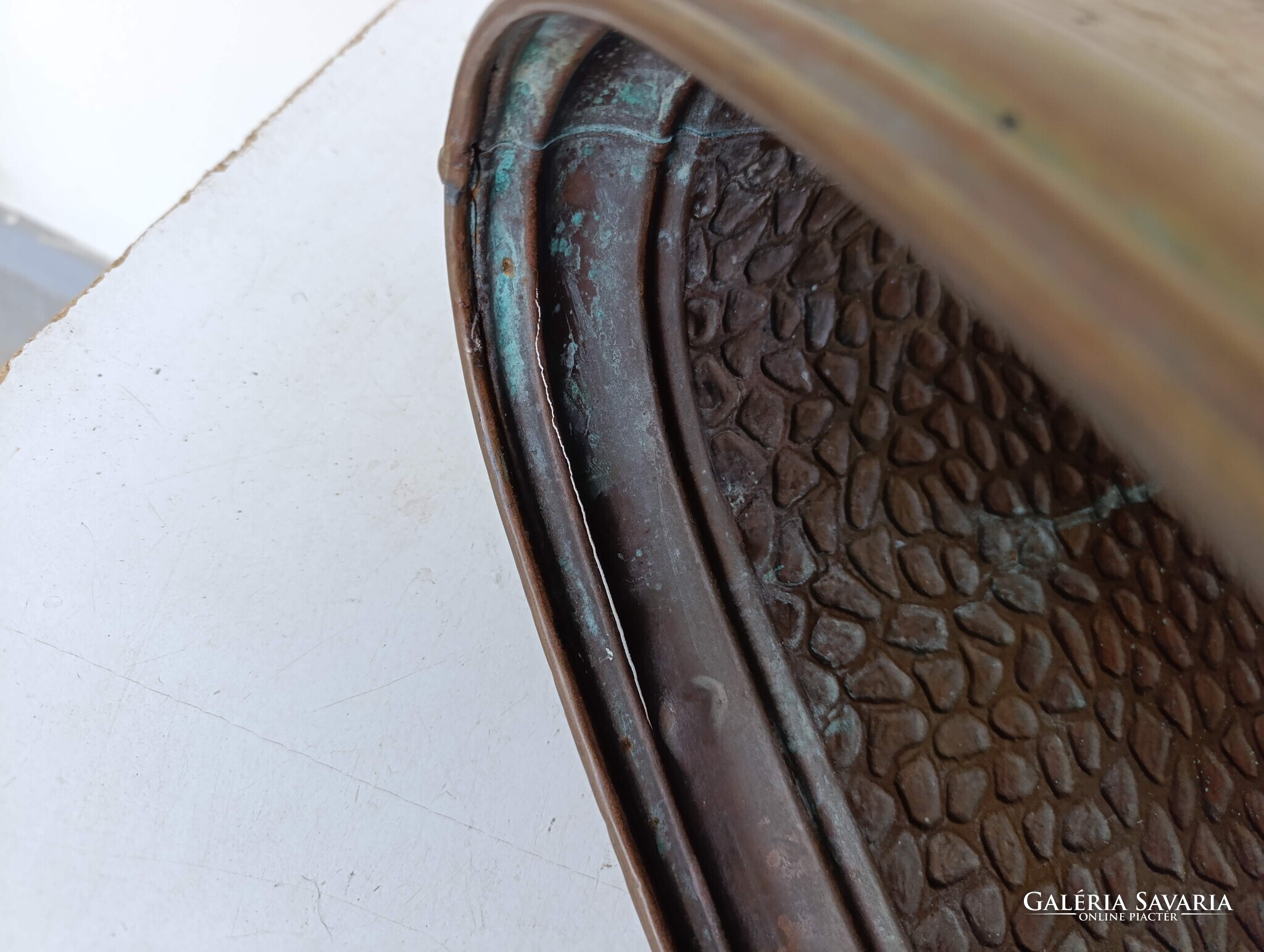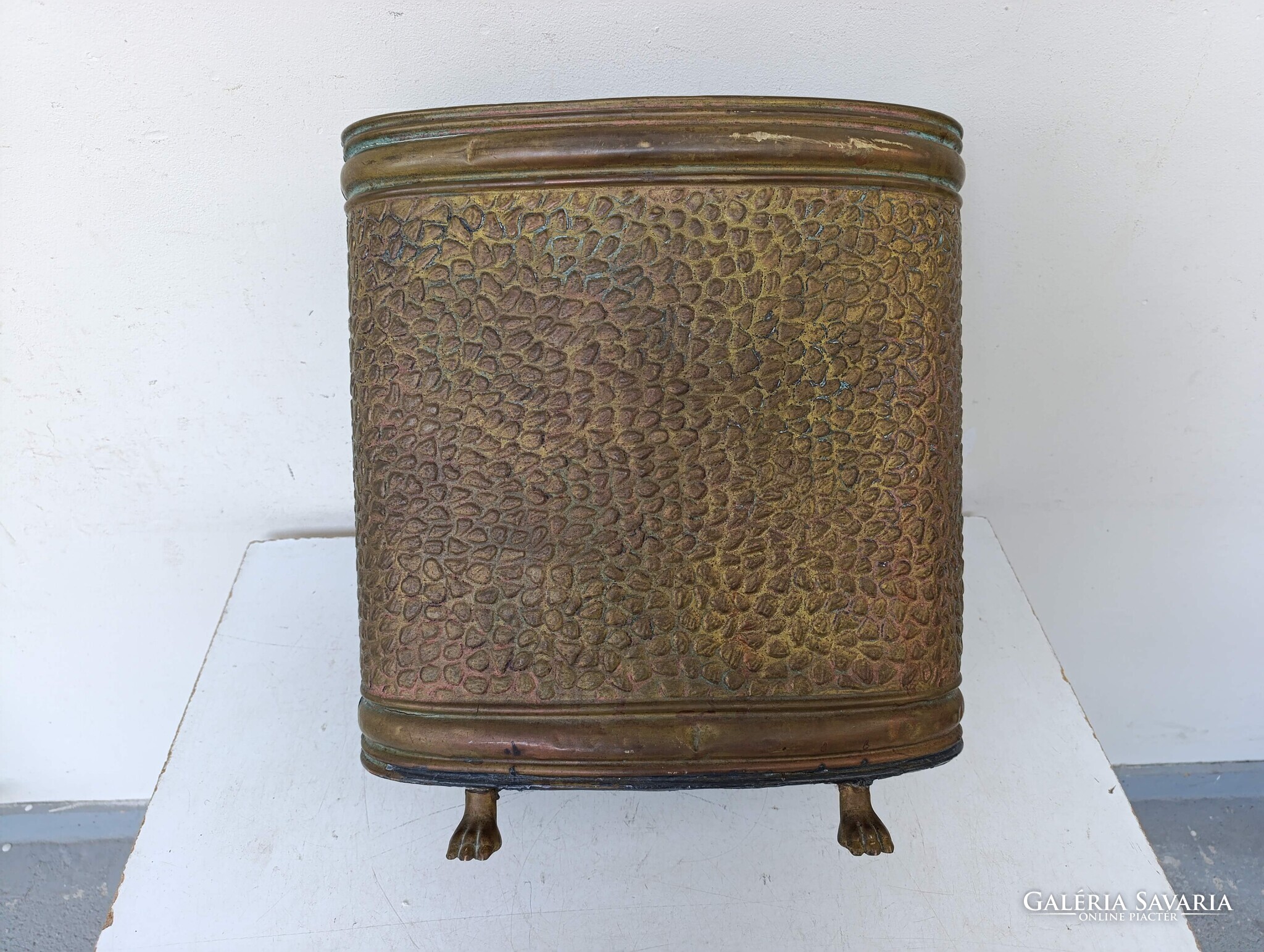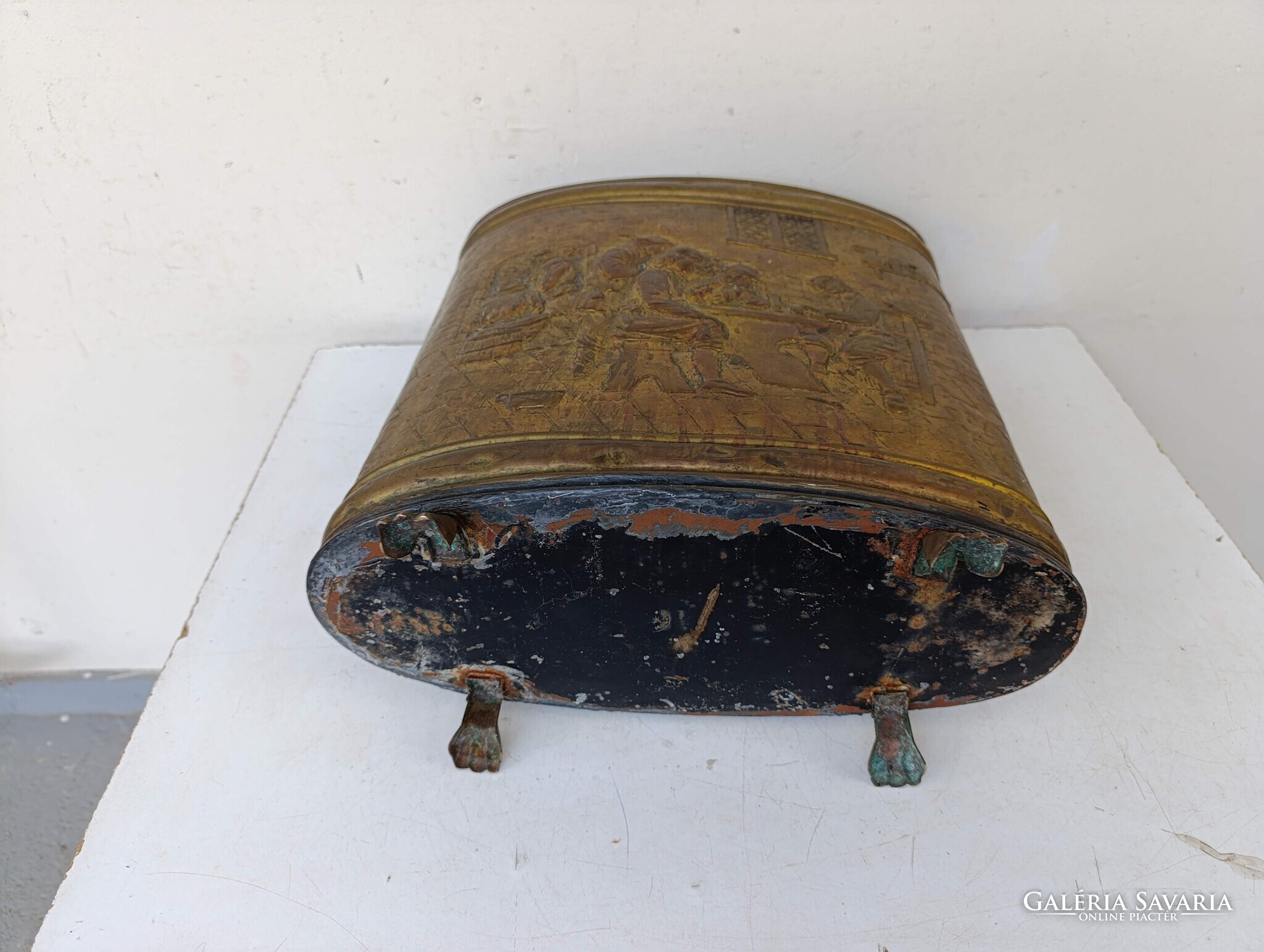 Antik domborított sárgaréz esernyőtartó, mulatozó társaság motívummal, oroszlánlábakkal.