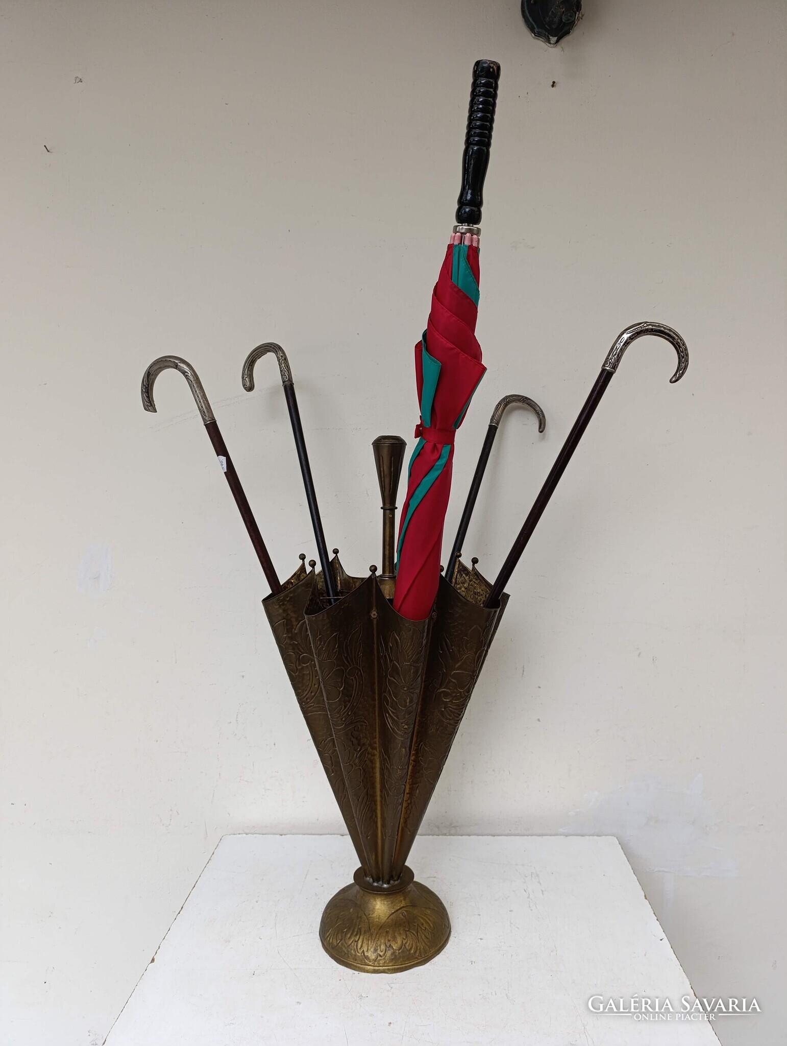 Antik esernyőtartó esernyő alakú domborított sárgaréz sétapálca sétabot tartó 927 3098