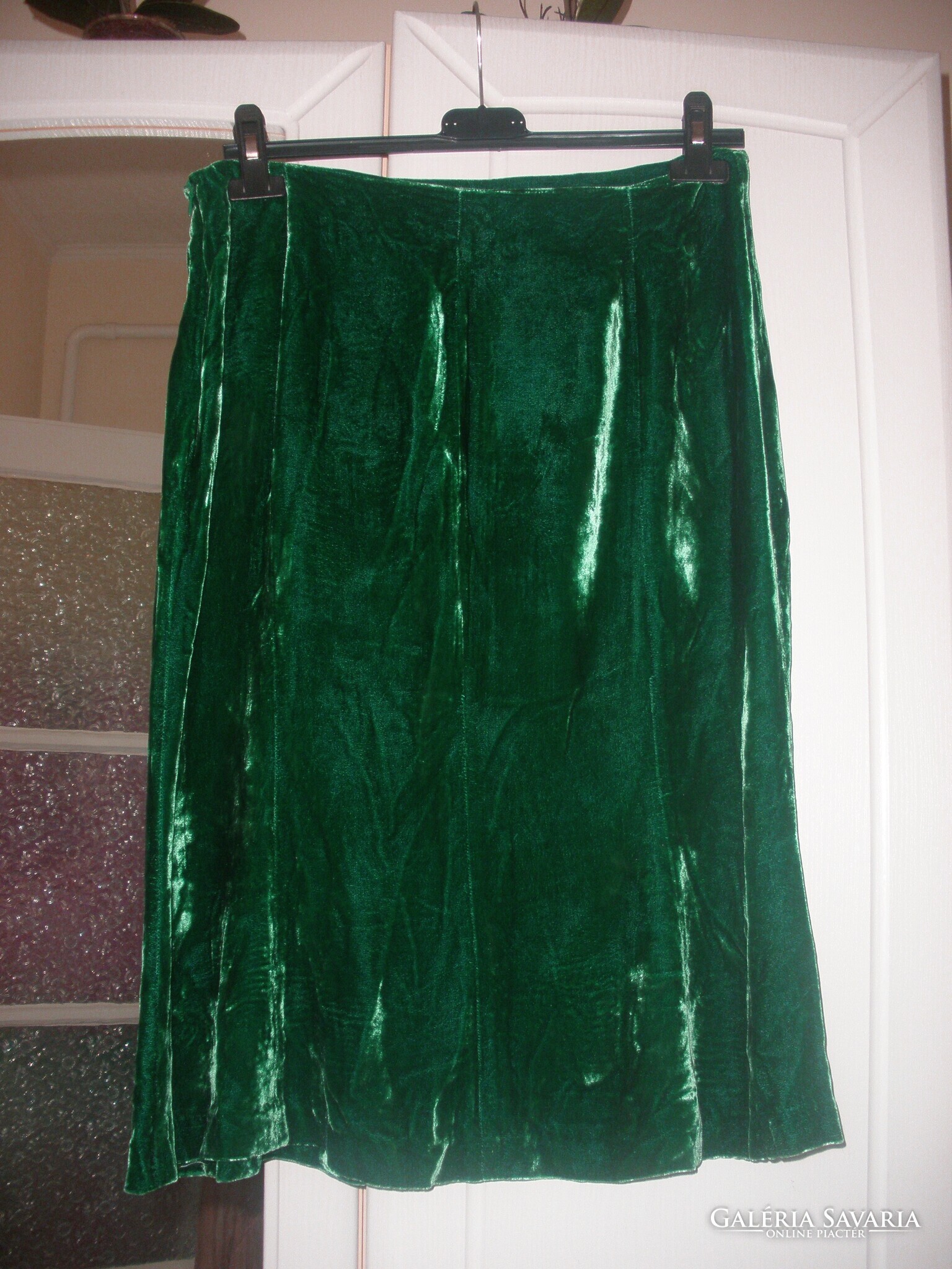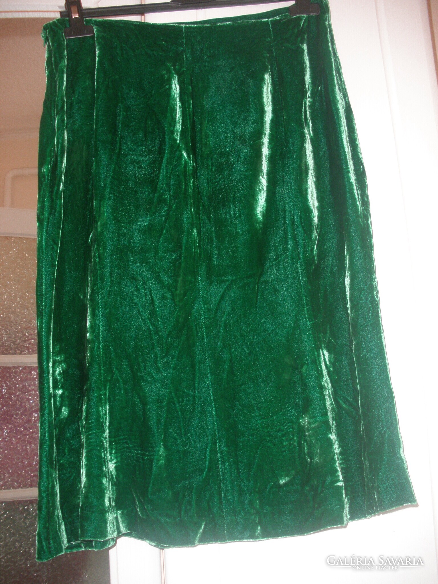 Smaragdzöld csodálatos anyagú, fazonú, színű szoknya. Lágy, finom puha selyem - bársony. 64 cm a hossza derék (mérsékelten rugalmas) rugalmas, 80 84 cm. Egyenes vonalú, csupán az alján bővül kissé, harang szerűen, tehát nem erősít.