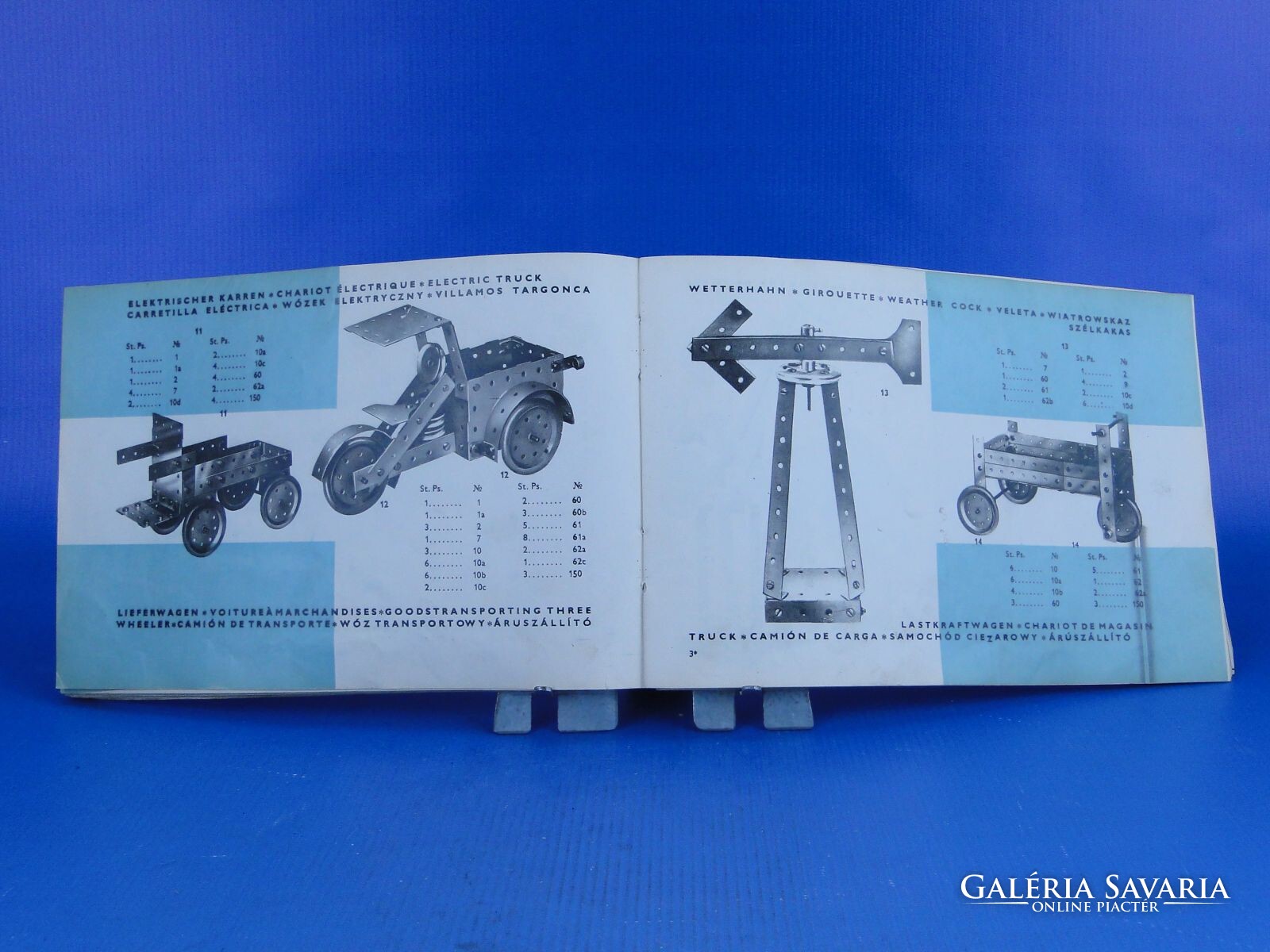 Szép állapotú régi fémépítőjáték katalógus hat nyelven, köztük magyarul is! Fémépítőszekrény szerelési könyv, szerelési utasítás, alkatrészjegyzék a " MARKLIN " - féle fémépítőszekrények mintájára. Minden lapja megvan (108 oldal), gazdagon illusztrált füzet.