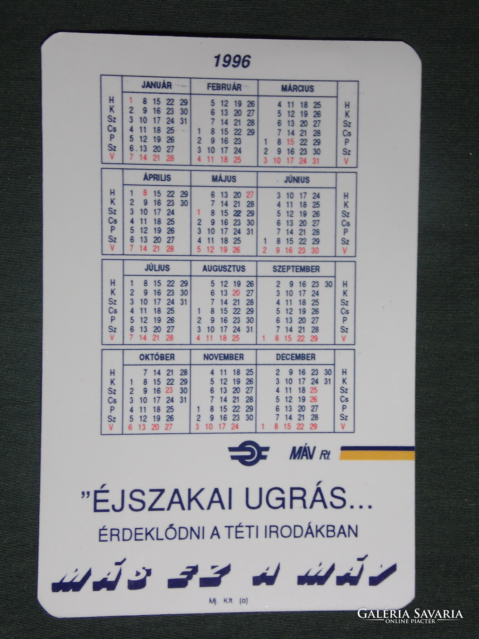 Kártyanaptár,MÁV,vasút,vonat,V43 villanymozdony szerelvény, 1996