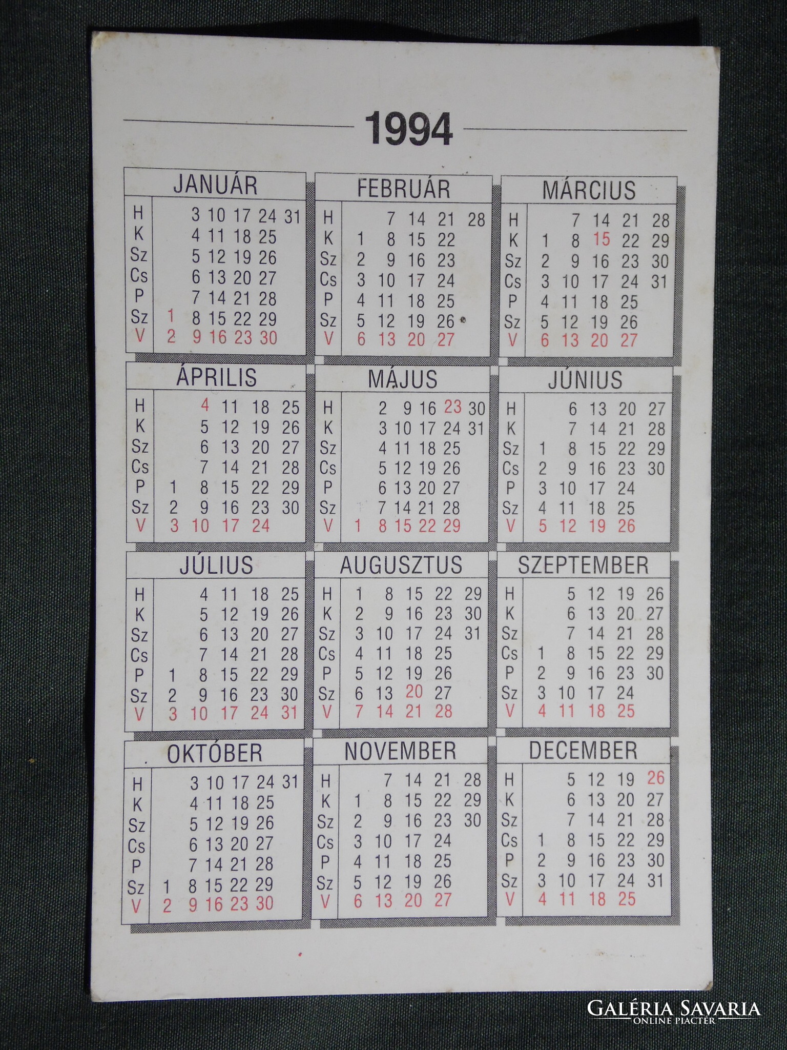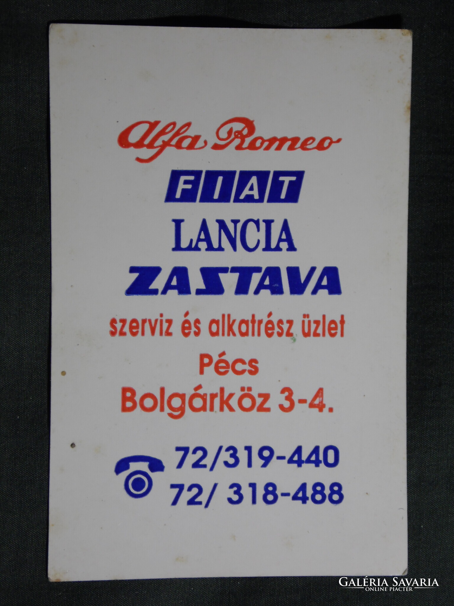 Kártyanaptár,Alfa Romeo,Fiat,Lancia,Zasztava szerviz alkatrész üzlet,Pécs 1994, (7)