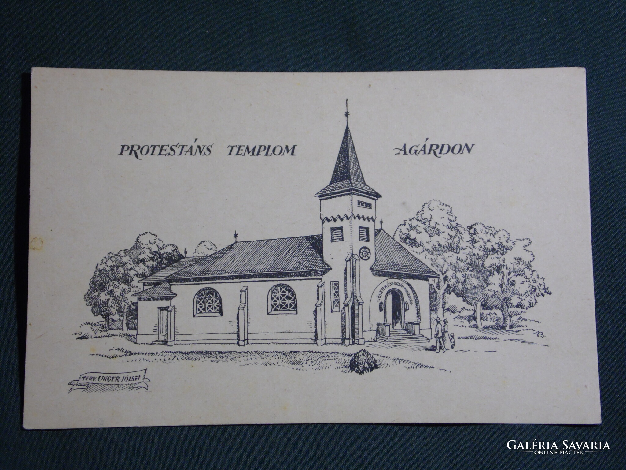 Képeslap,Agárd,Protestáns templom látkép,grafikai,rézkarc,Kellner Ernő kiadás Budapest,,1920-