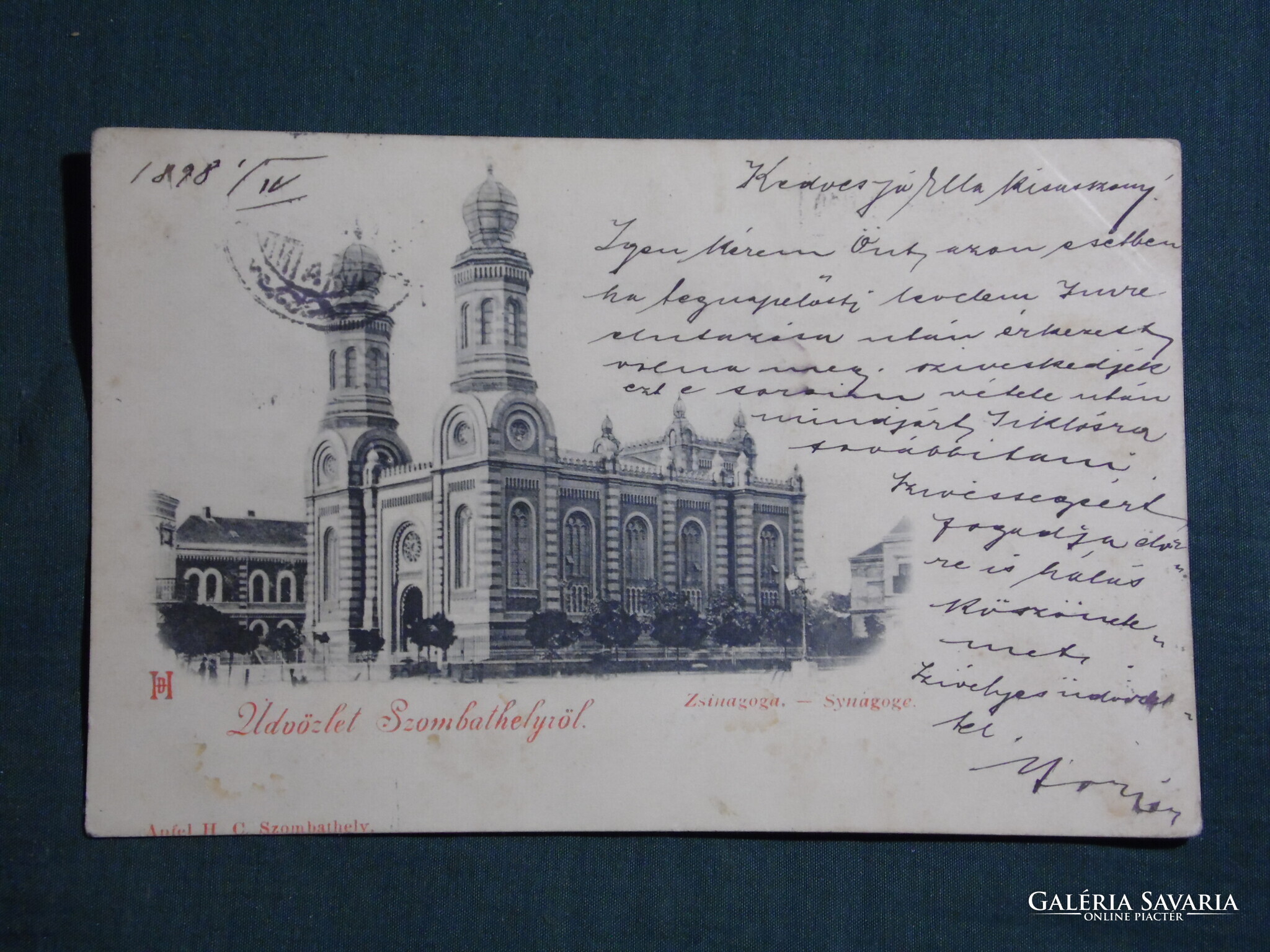 Képeslap,Szombathely,Zsinagóga templom látkép részlet,Apfel H. C. Szombathely kiadás ,1898-
