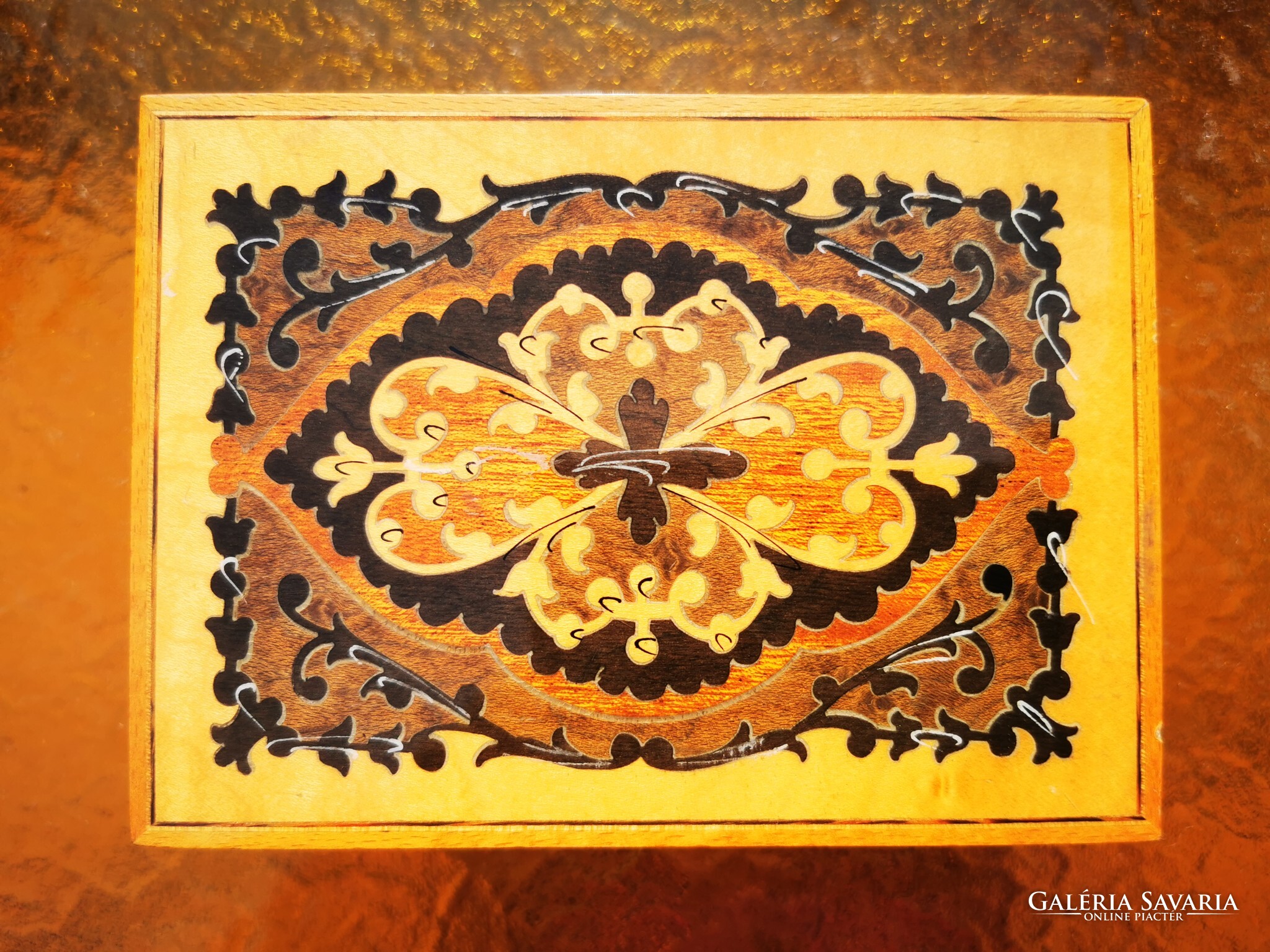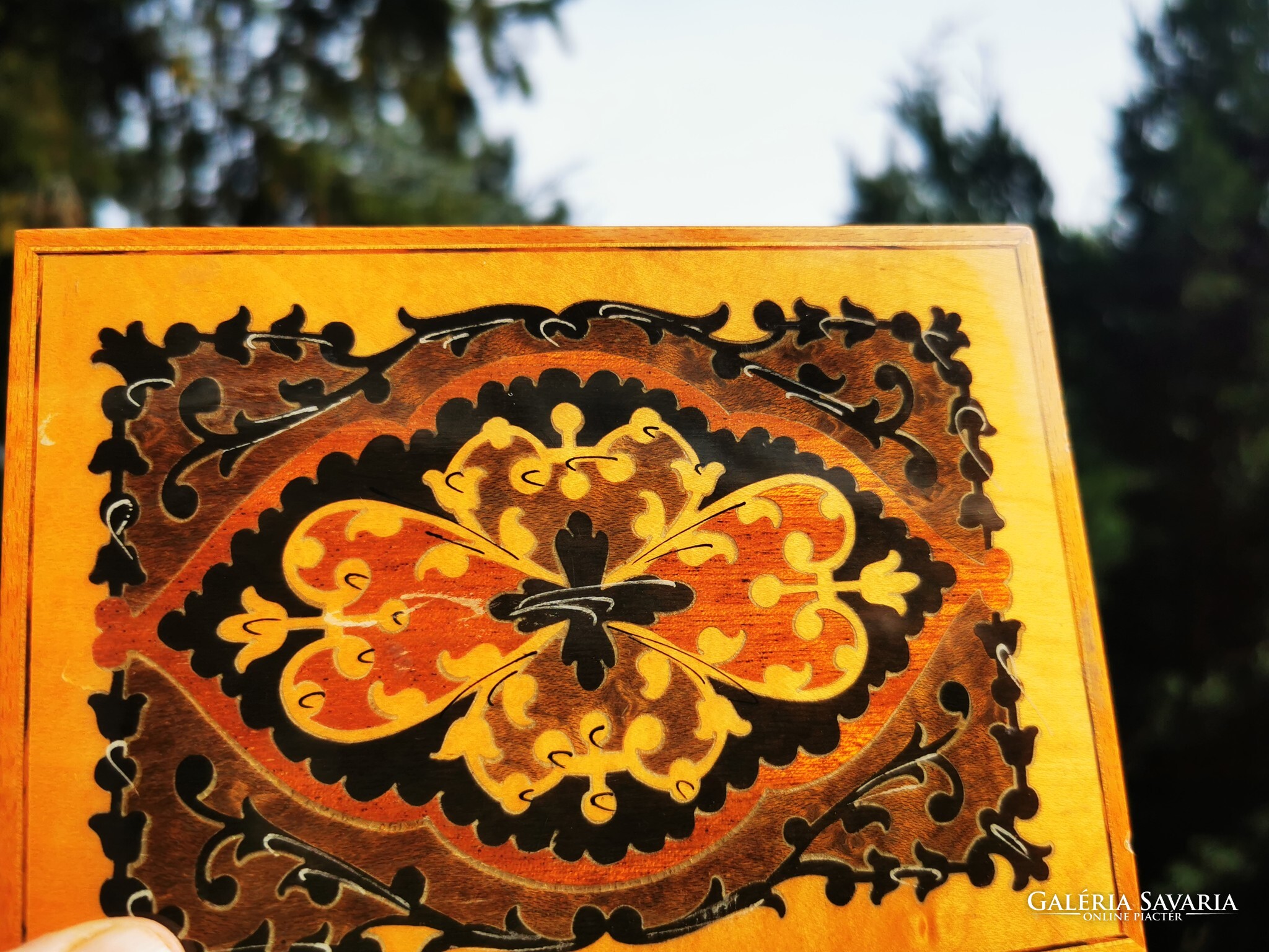 INTARZIÁS ZENÉLŐ FA DOBOZ
