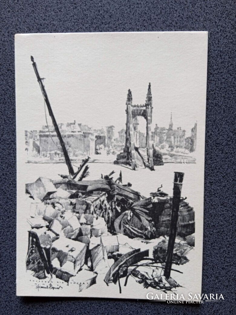 D206276 Budapest -Buda az ostrom után - A felrobbantott Erzsébethíd - képeslap 1945 - Pfannl Egon