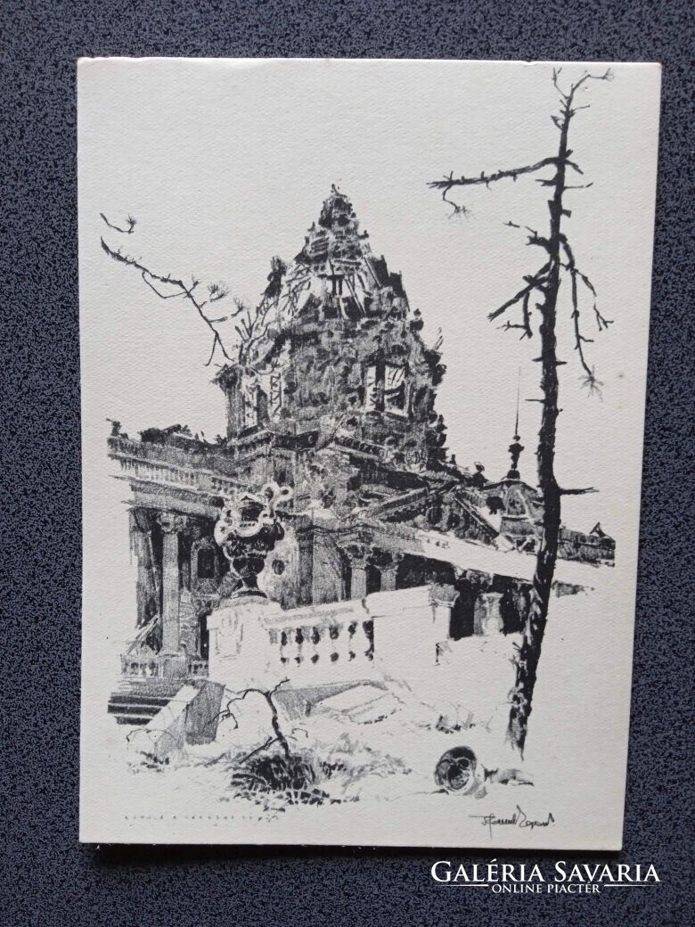 D206279 Budapest -Buda az ostrom után - A kiégett vár-kupola - képeslap 1945 - Pfannl Egon