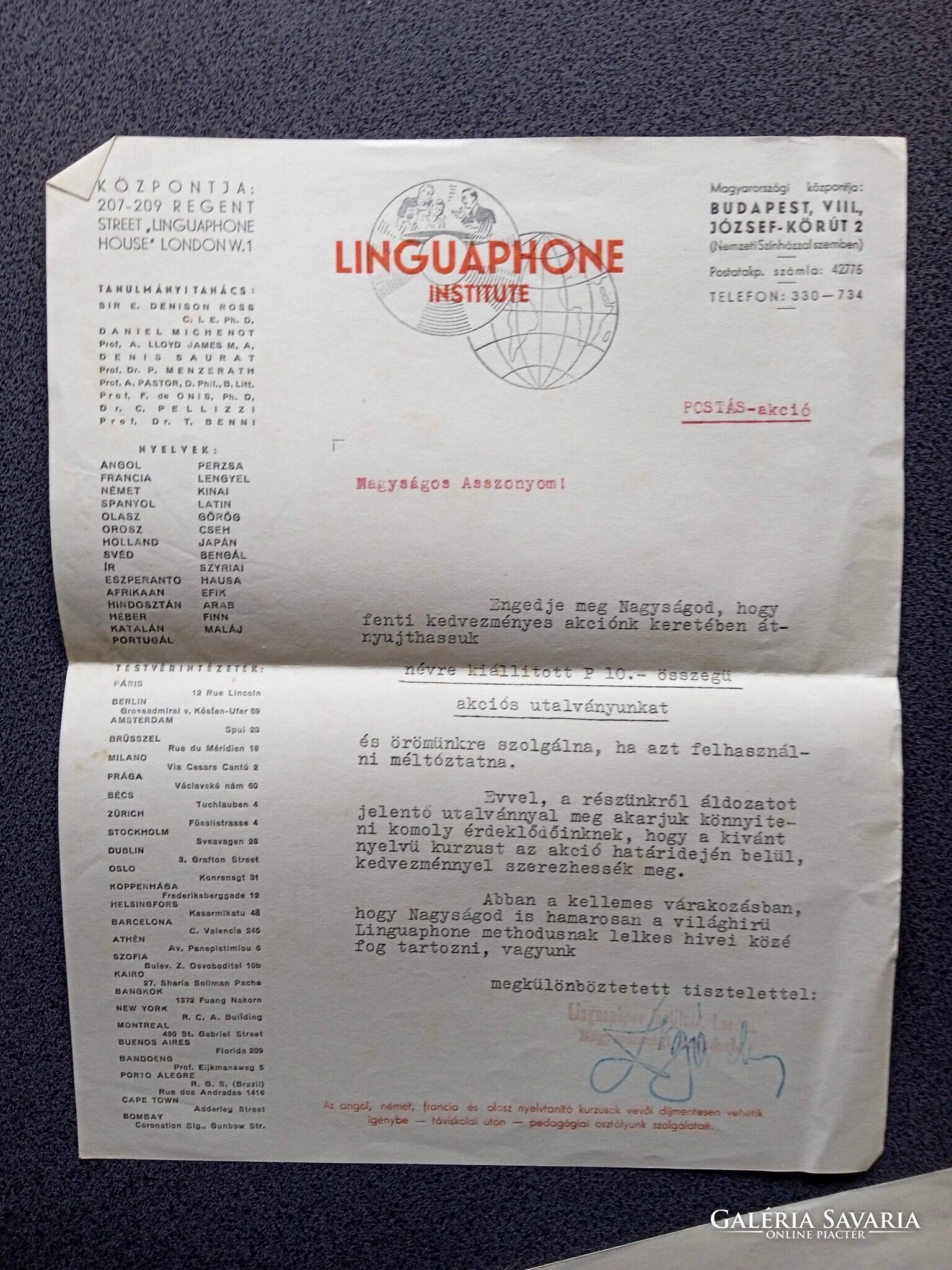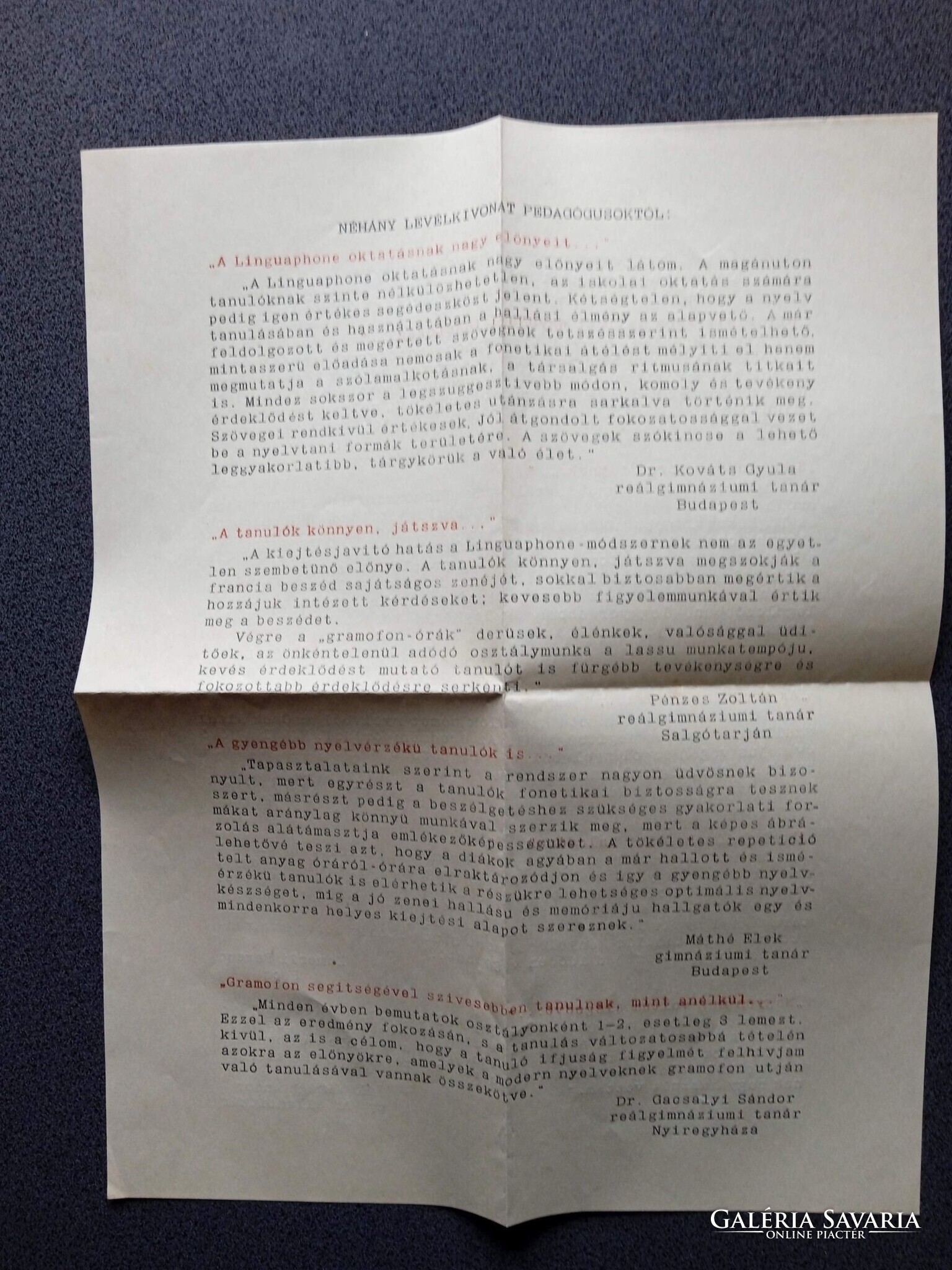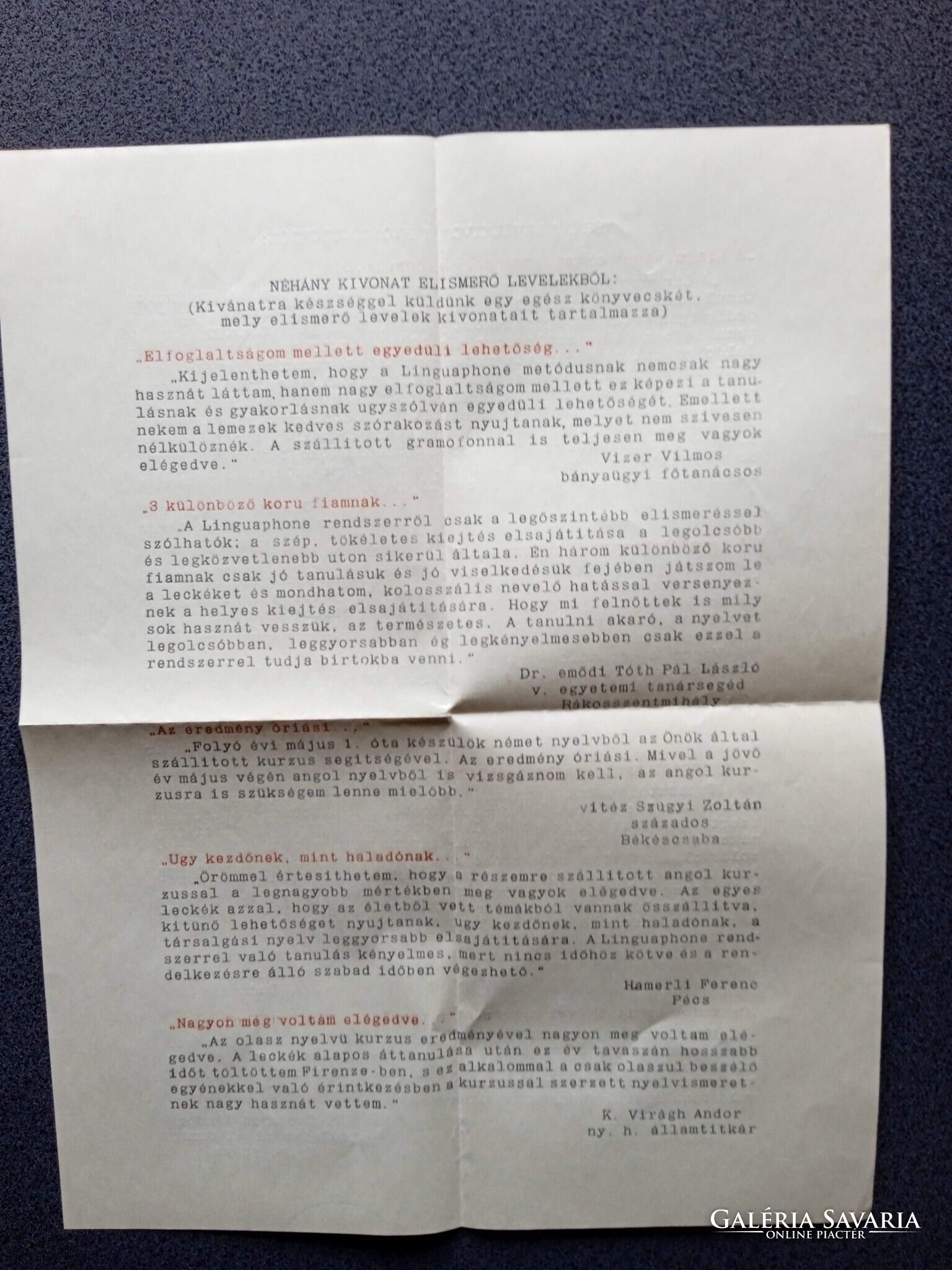 ZA622.4 Linguaphone reklámanyagok, gramafon nyelvtanulás 1930k