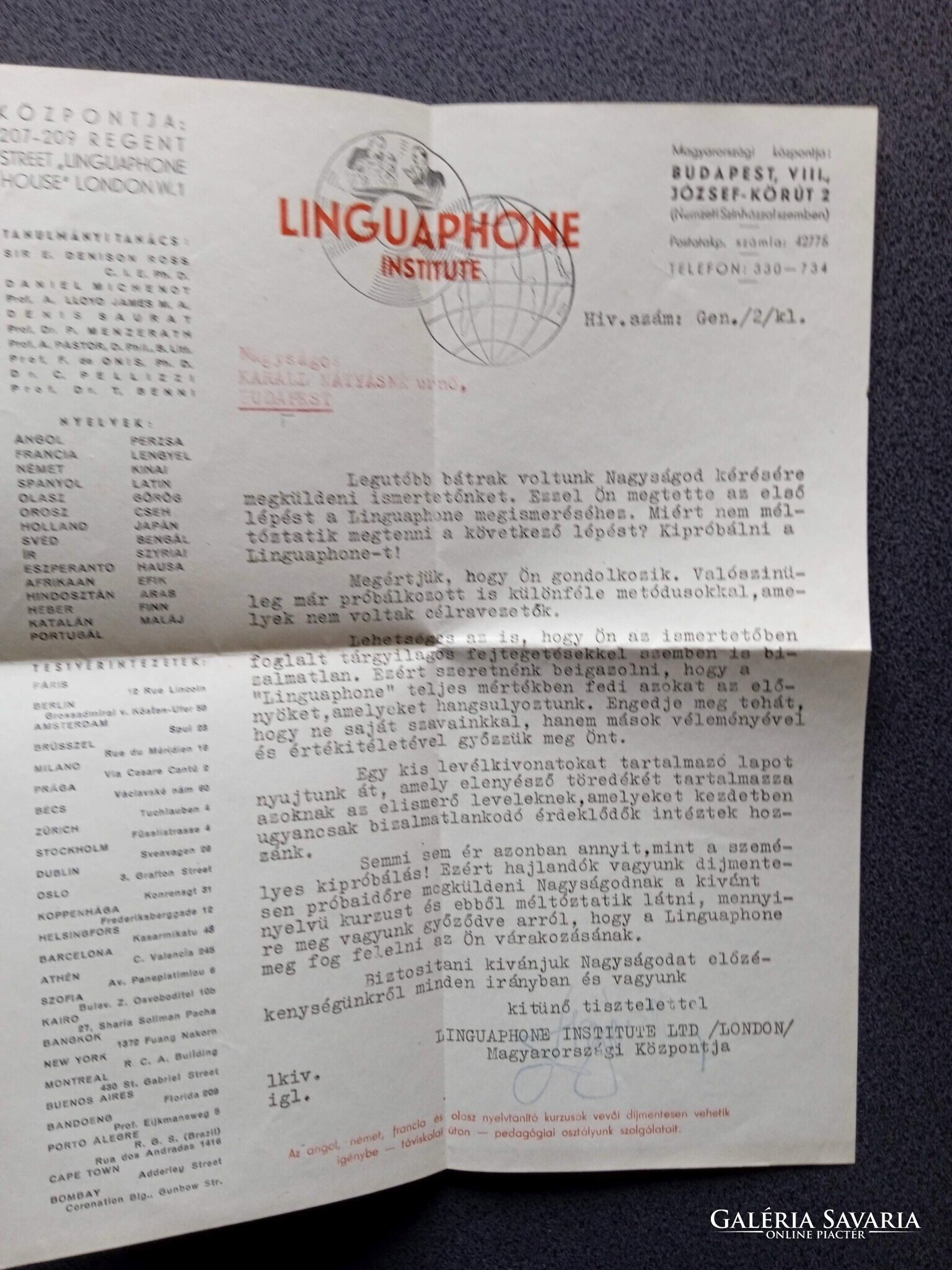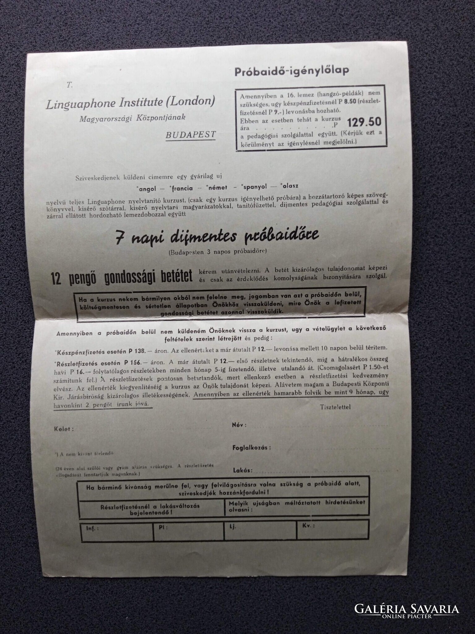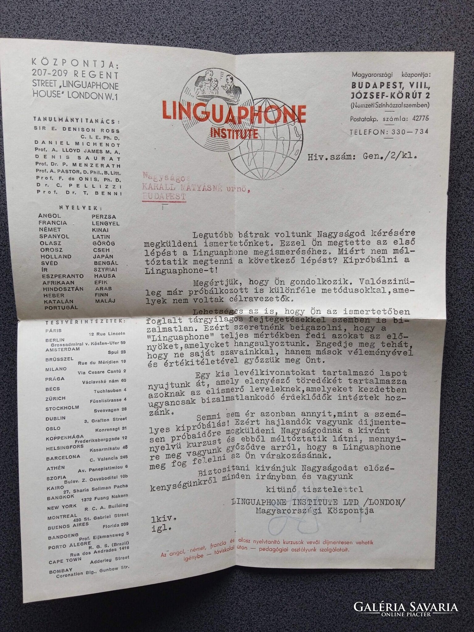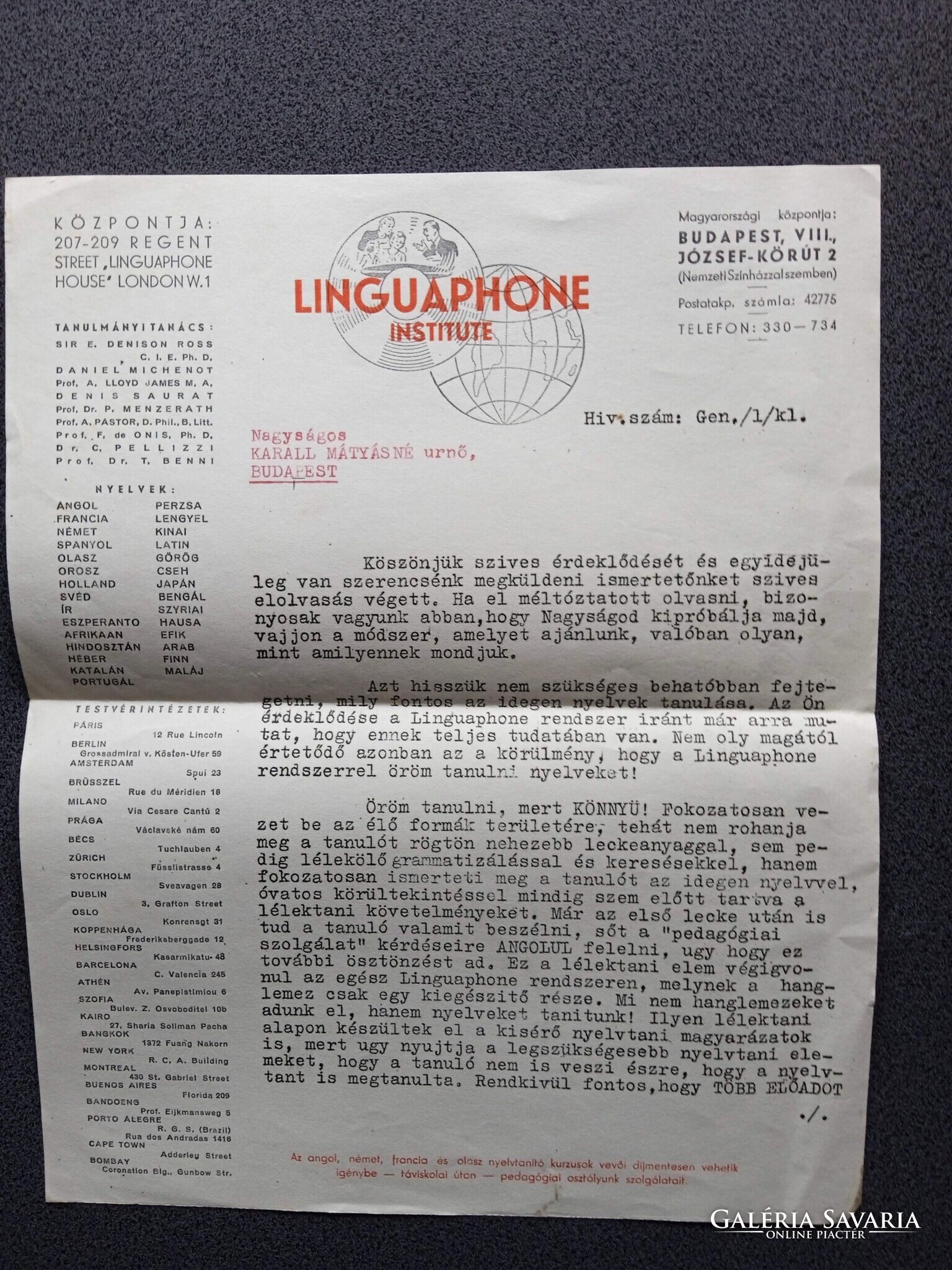 ZA622.4 Linguaphone reklámanyagok, gramafon nyelvtanulás 1930k