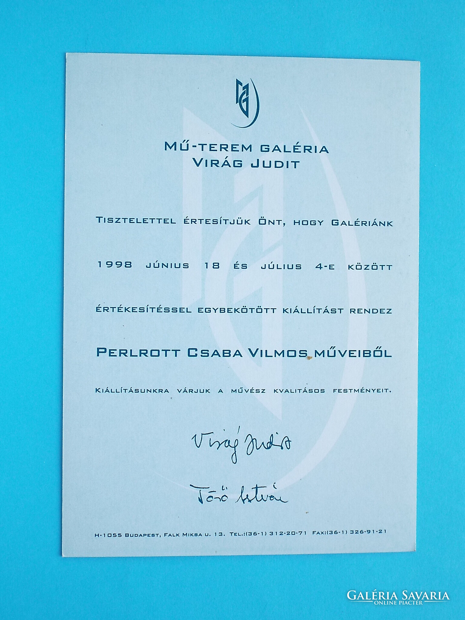 Képeslap (60) - Perlrott-Csaba Vilmos - Verőfényes udvar Nagybányán (Meghívó Mű-Terem Galéria 1998)